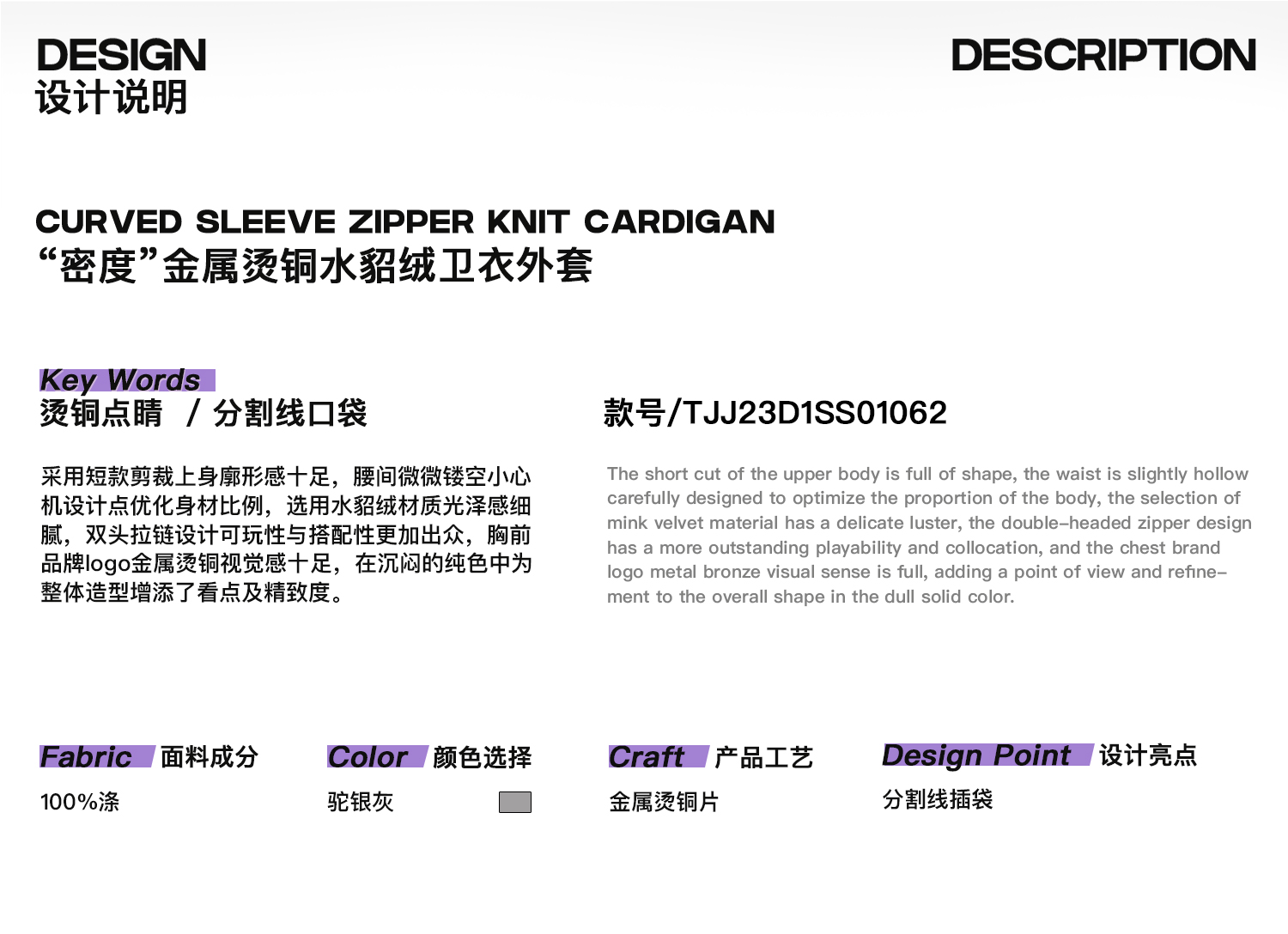 启世录TIWILLTANG“溶解密度”金属烫铜水貂绒卫衣外套