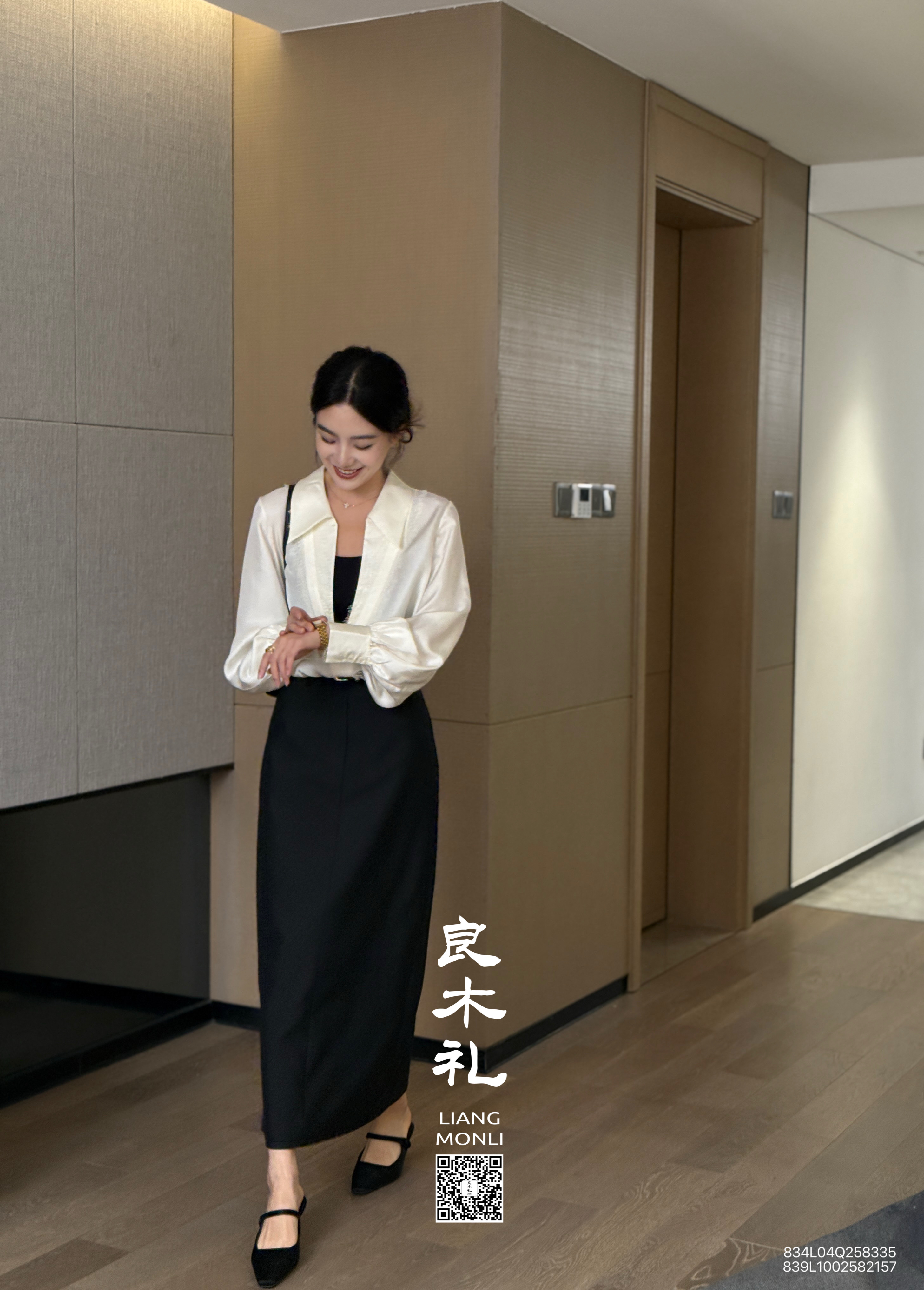 【特价不退不换】良木礼深V真丝衬衫(Q258335)