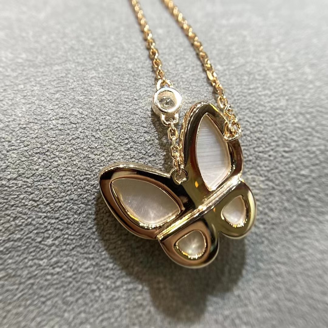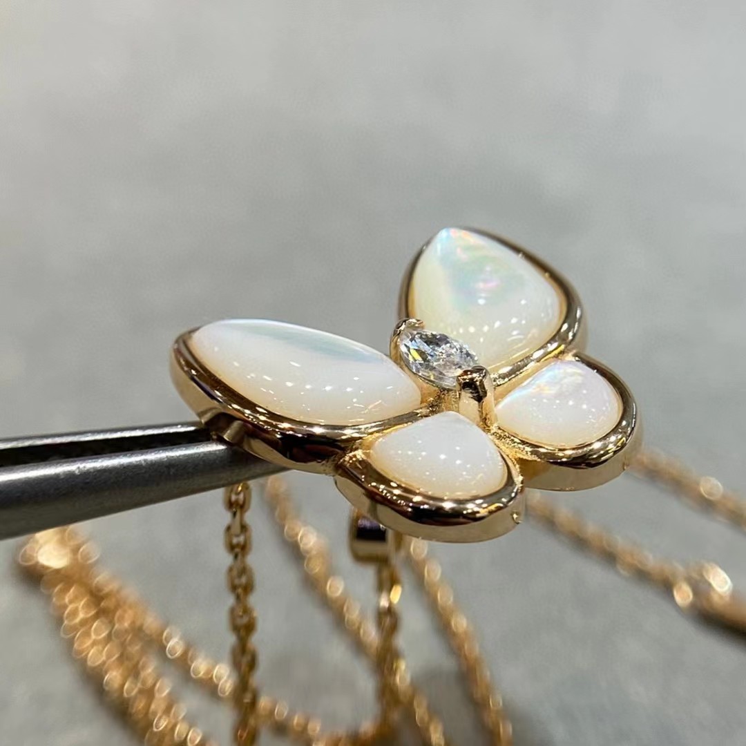 vca Tow Butterfly天然白贝母蝴蝶项链 认准我们出品细节👇🏻 一定要买,超显白❗️无敌完美的工艺,这个工艺,可以说,你拿去PK市面任意版本,做工都没有我们的好,放大看我们的每一条条纹,全部CNC过机。看一下我们出品的,用钻石刀的精雕机,出来的每一个切面,都是光滑如镜面,一丝刀痕跟麻点都没有。全部是非常光亮的,因此在不同角度看可以完完全全呈现出不同的花纹效果,绝对的工艺品,绝对的视觉盛宴。