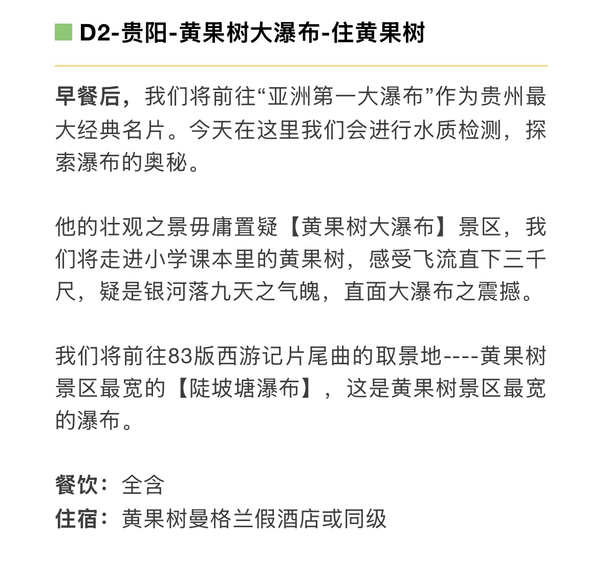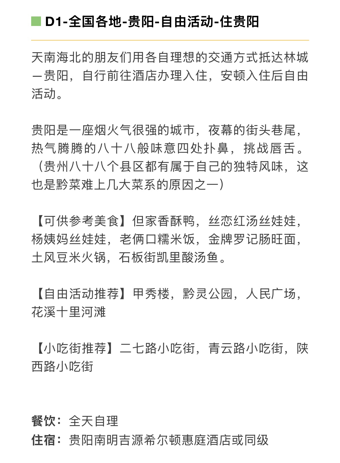 【住宿】贵阳南明吉源希尔顿惠庭酒店或同级1晚、黄果树曼格兰酒店或同级1晚,蘑菇屋野奢酒店或同级2晚;黄果树福朋喜来登酒店或同级1晚;