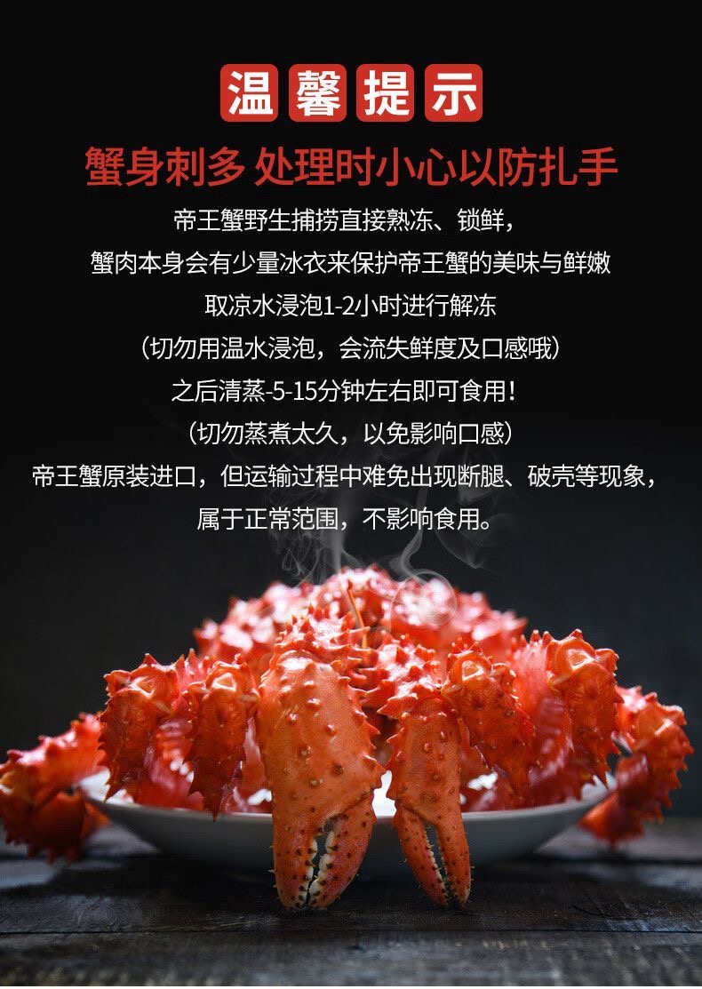 【顺丰冷链】智利进口即食帝王蟹 熟冻加热 海鲜水产大个螃蟹 送礼熟整只皇帝蟹 - 海福特