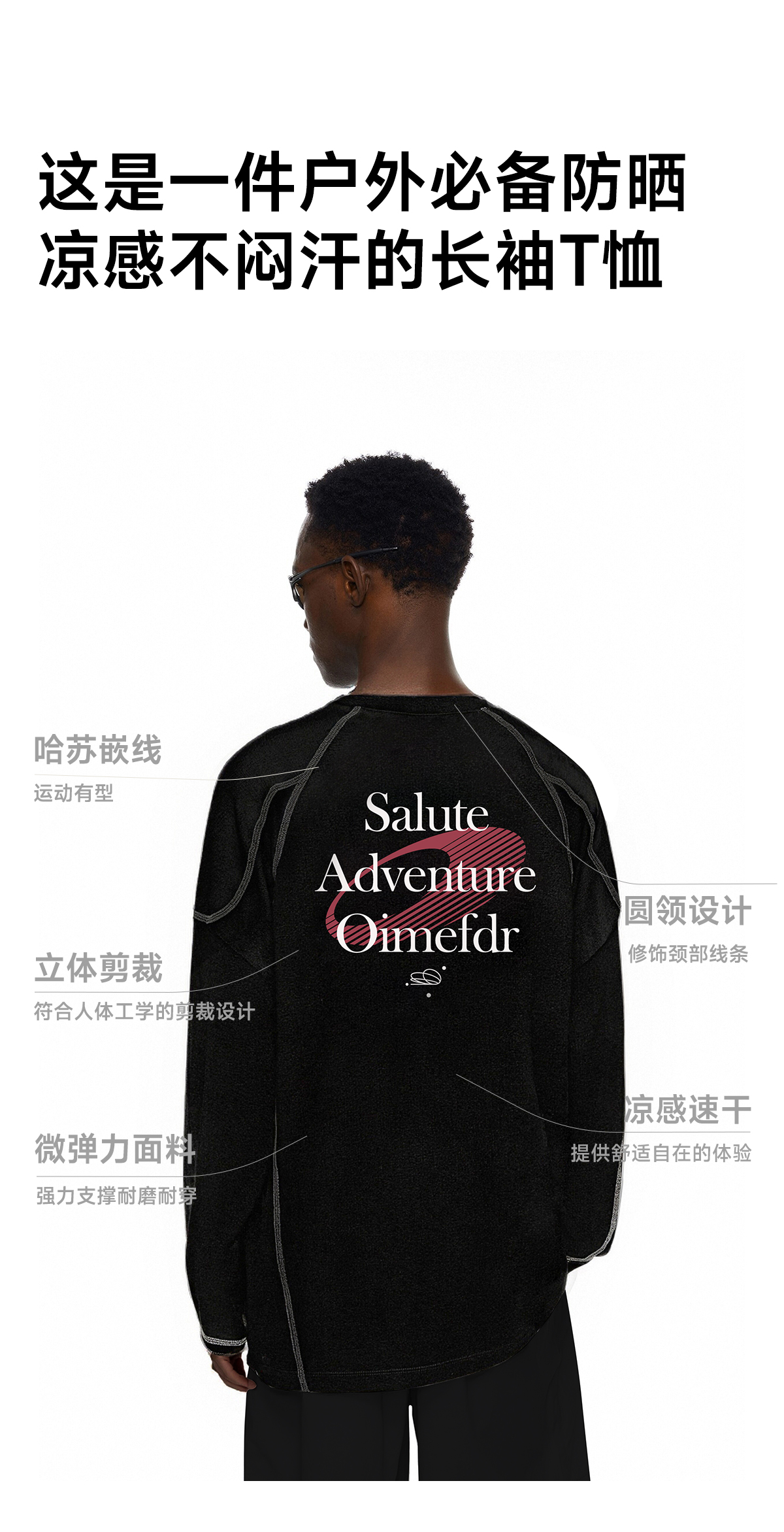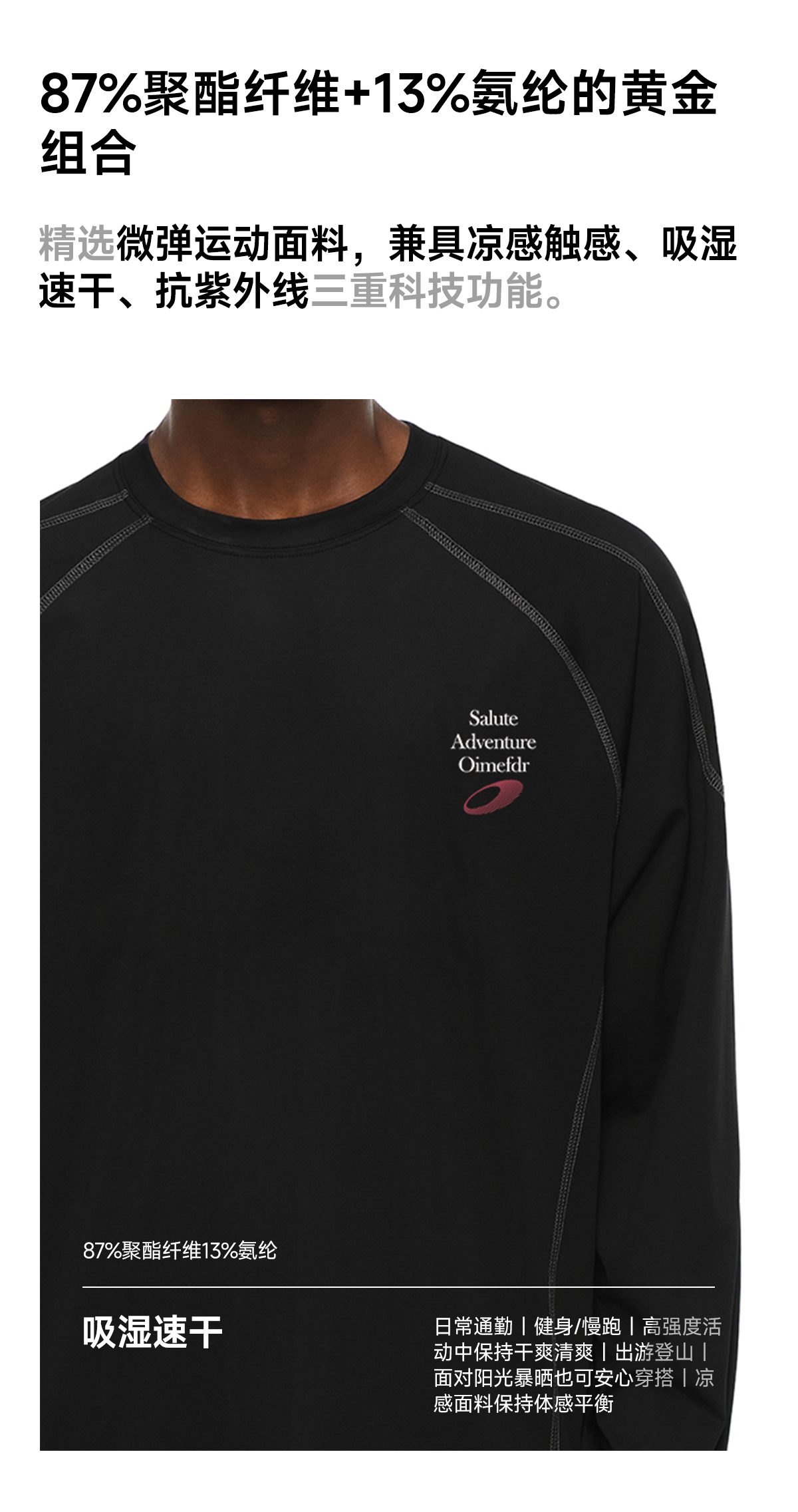 FDR官方店 运动休闲吸湿抗菌长袖T恤男女秋季宽松圆领情侣装上衣