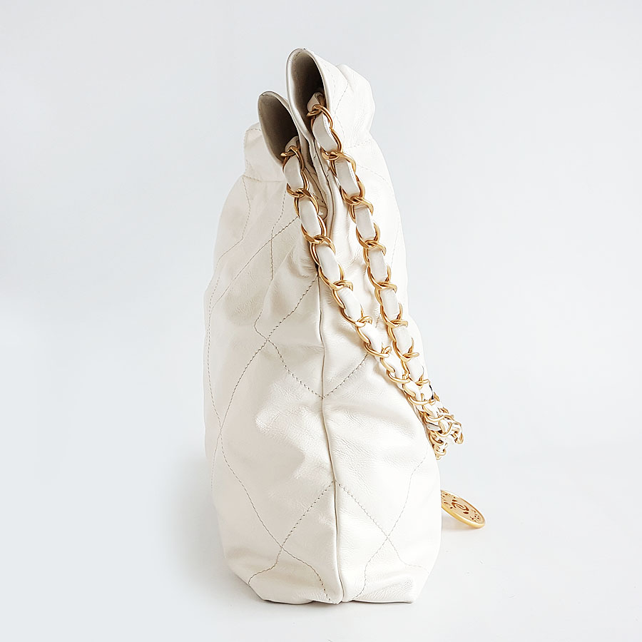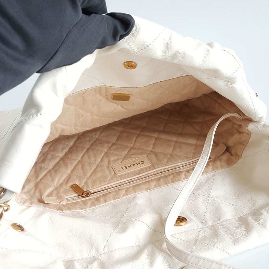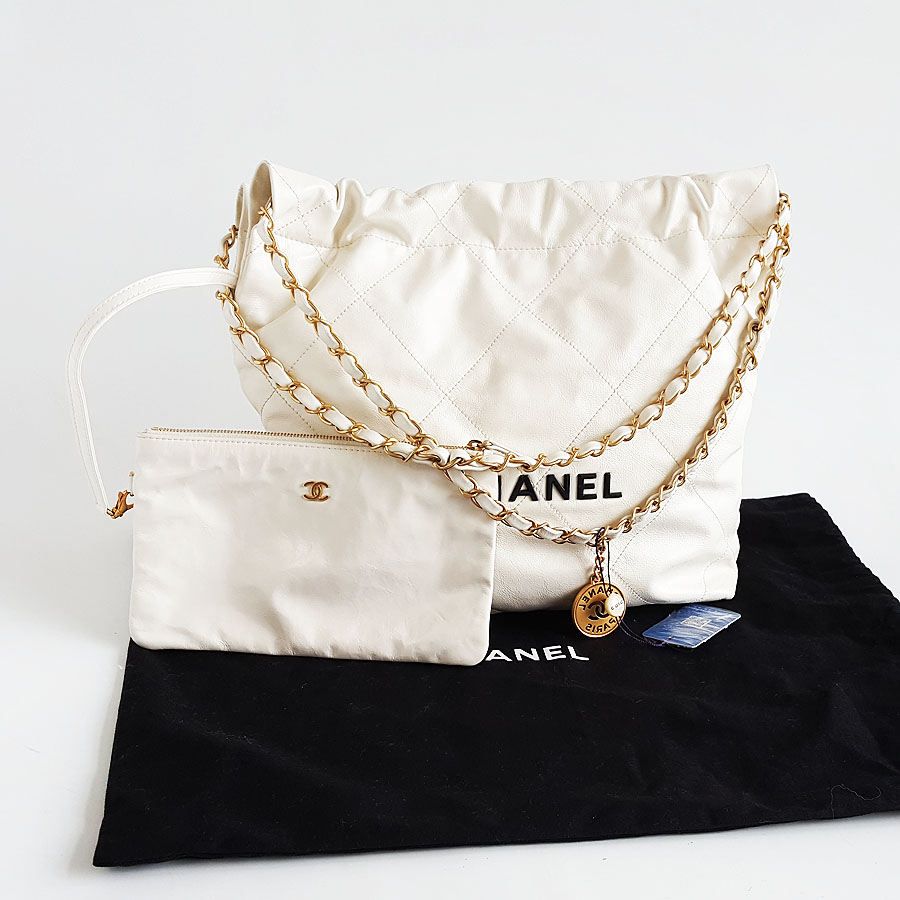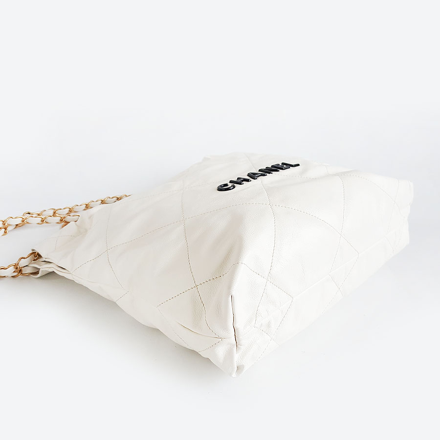 【95新】CHANEL香奈儿22Bag系列AS3260 B08038 10601小号白色黑字22bag垃圾袋单肩包女士140426NJT24