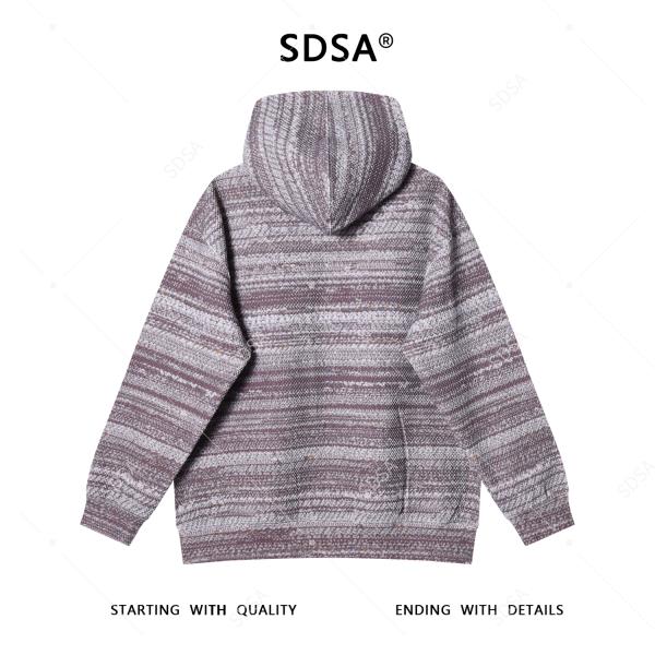 SDSA男士秋冬新款痞帅男装针织撞色条纹连帽卫衣百搭宽松套头上衣