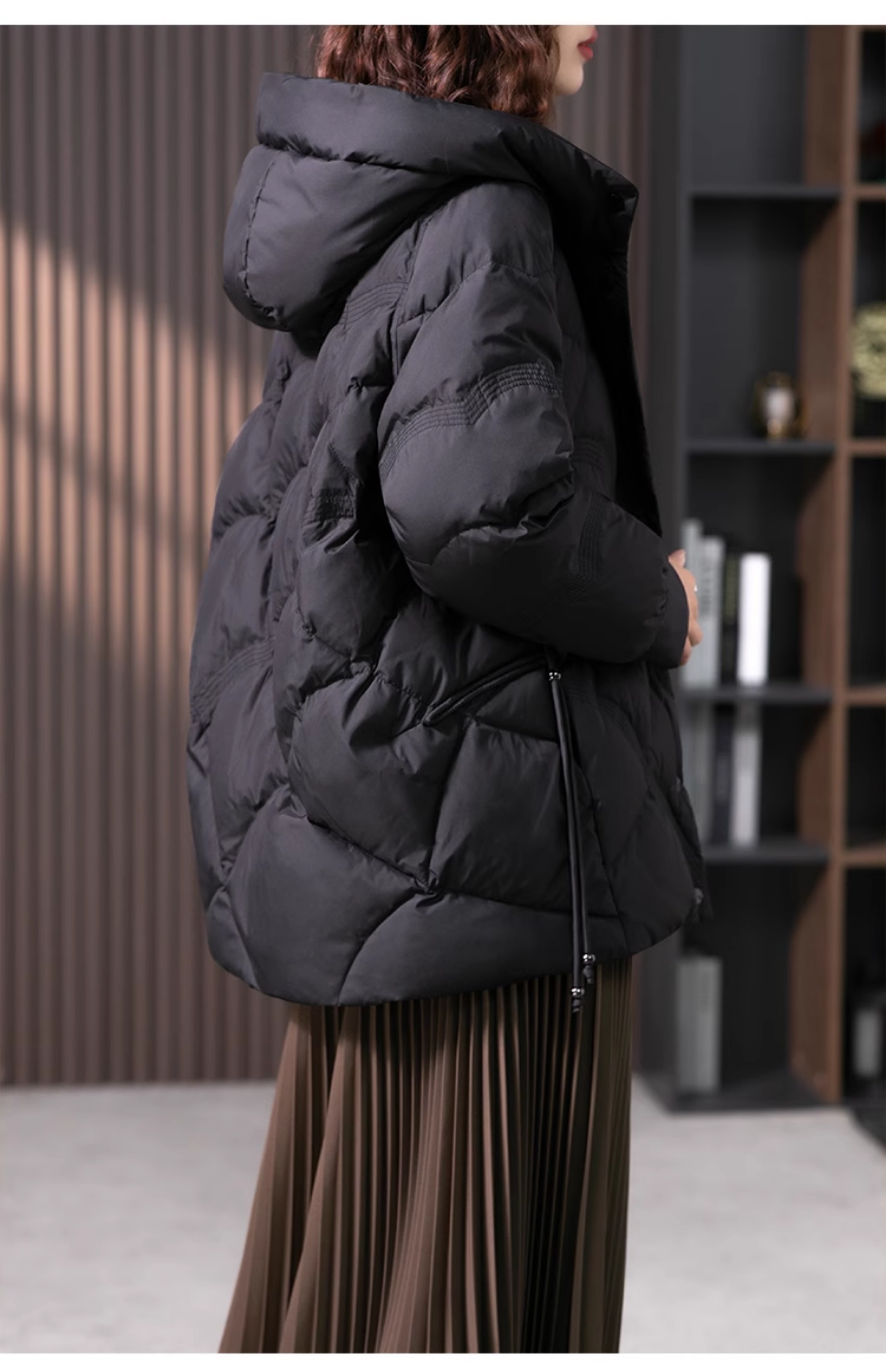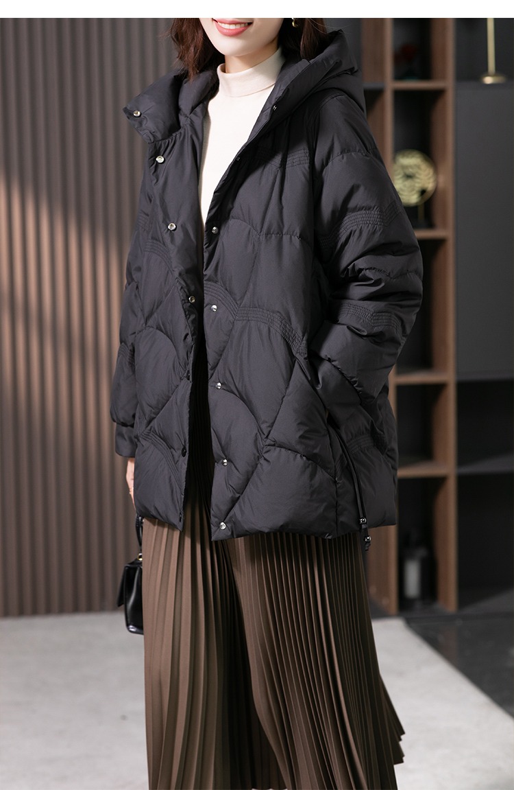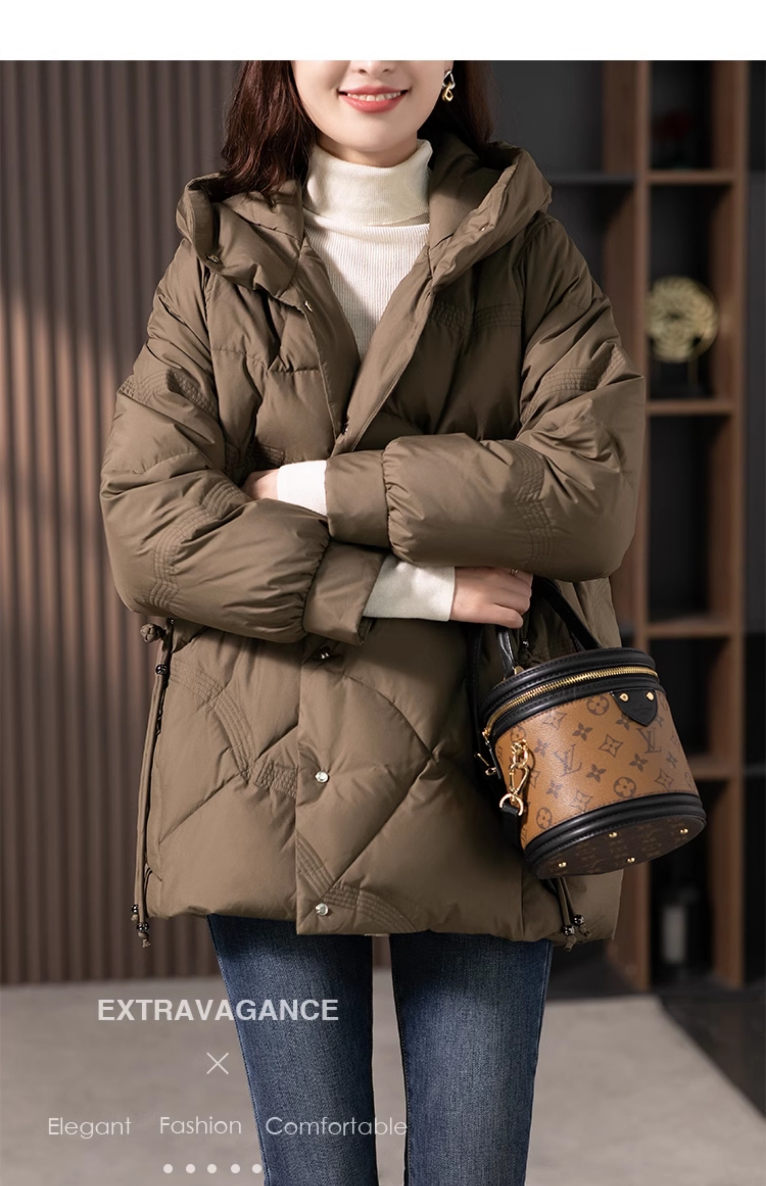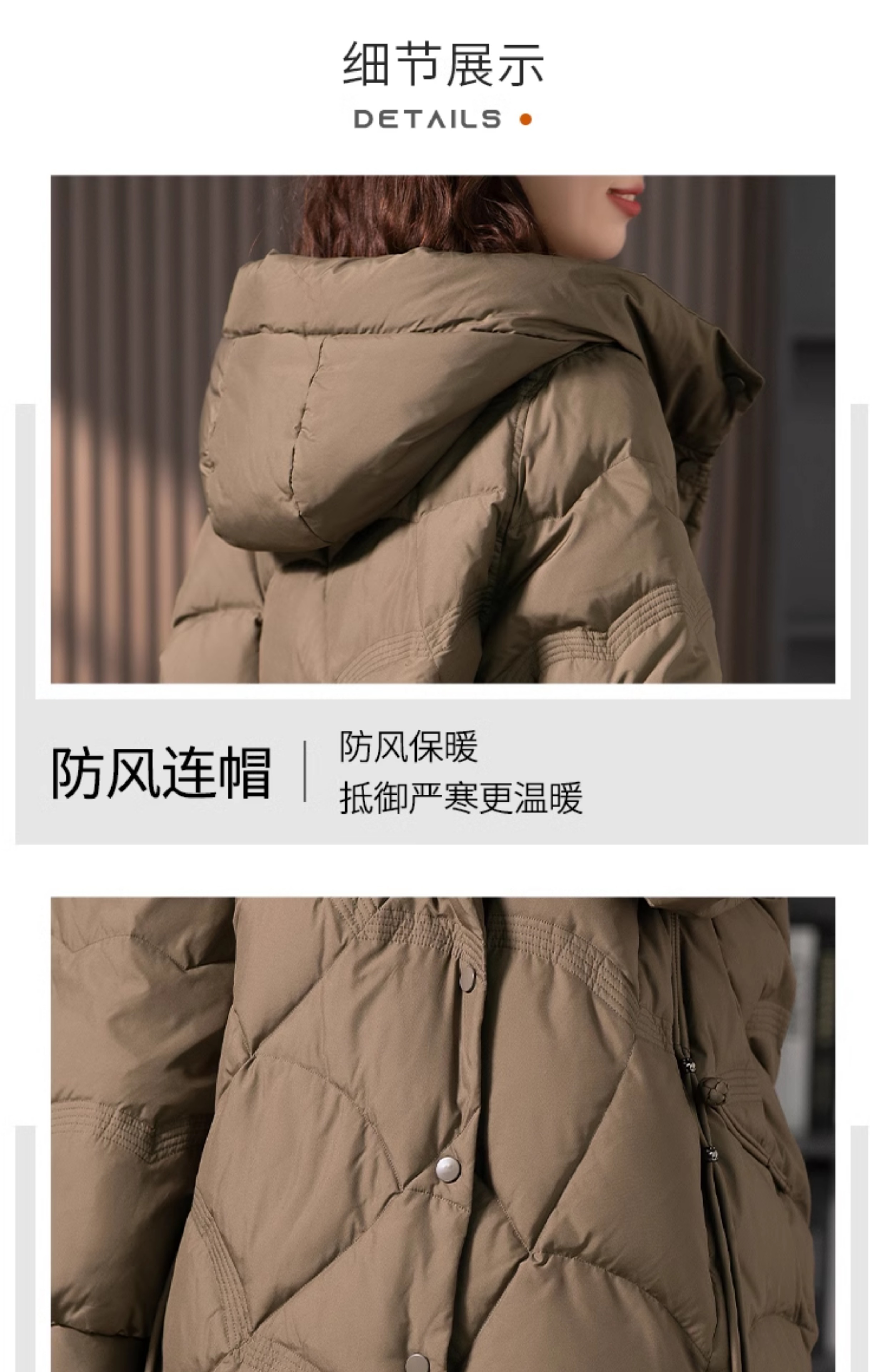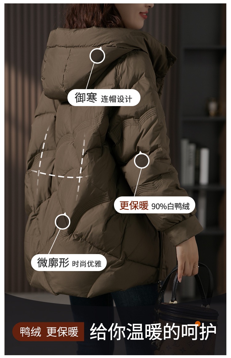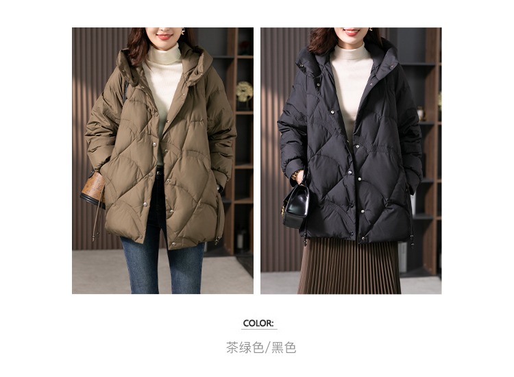 时尚90白鸭绒连帽羽绒服女短款2023冬季新款菱格小个子外套