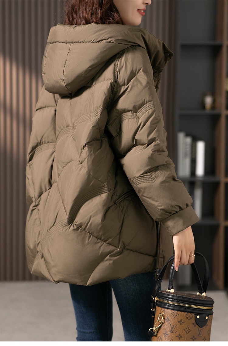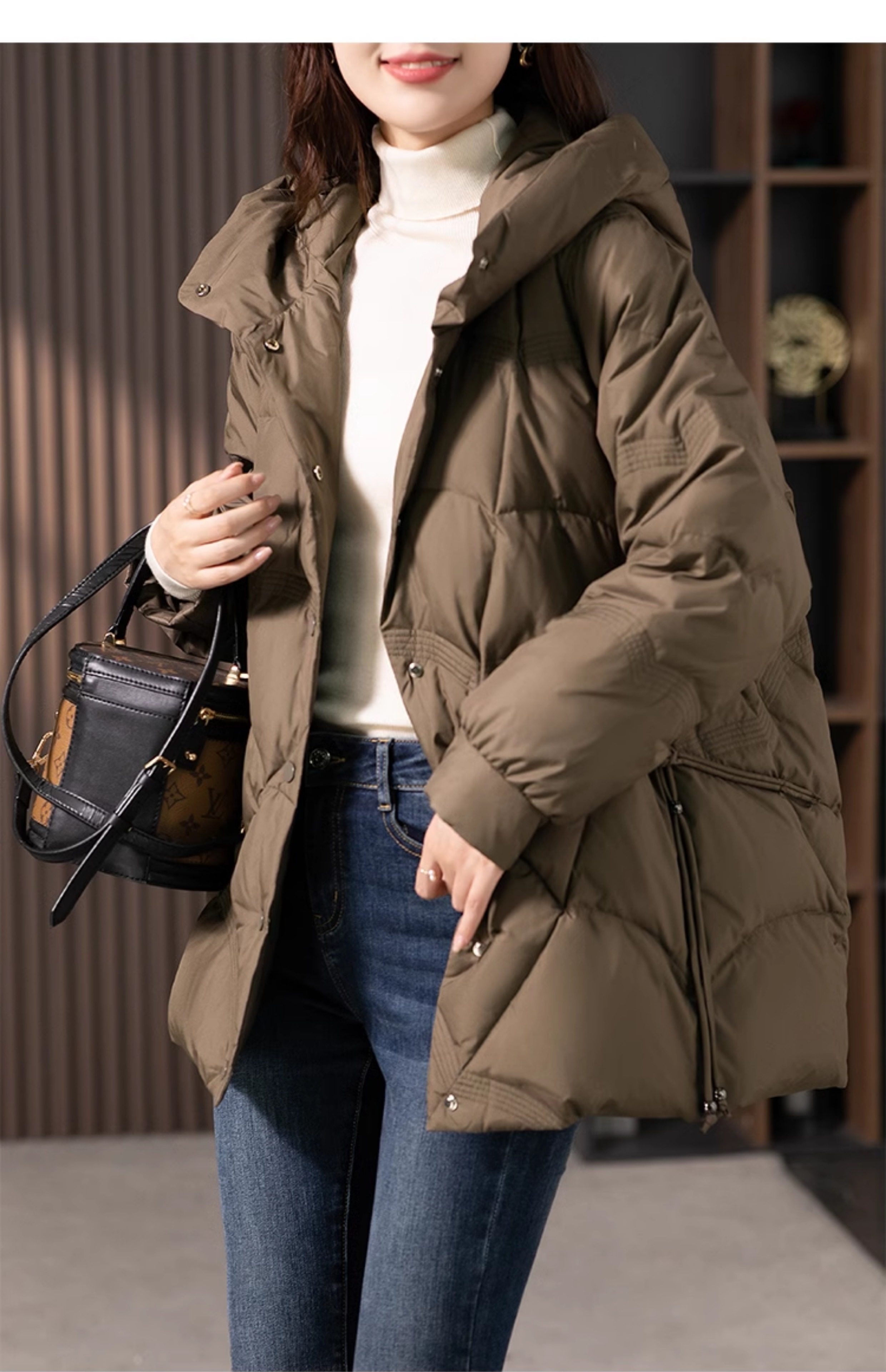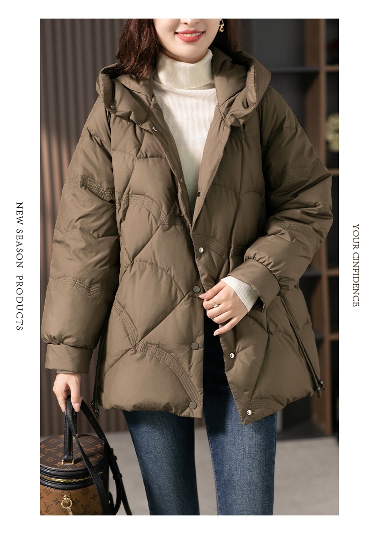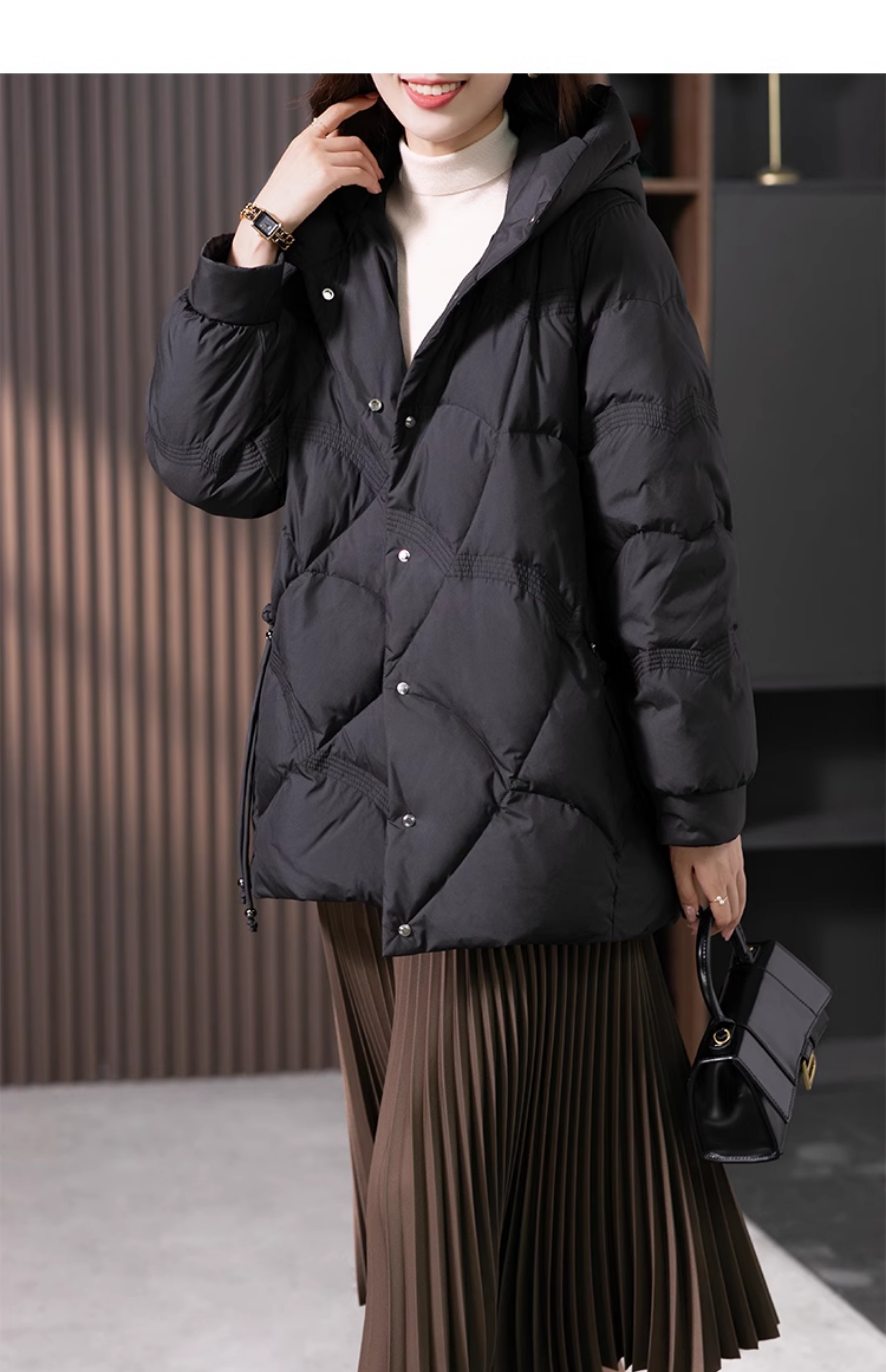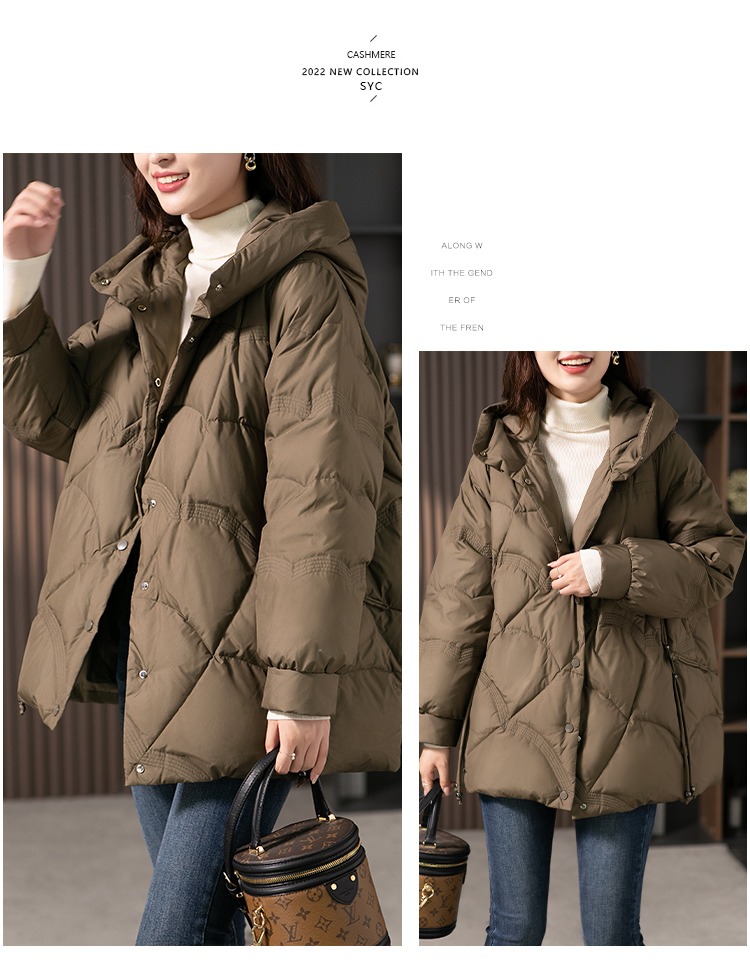 时尚90白鸭绒连帽羽绒服女短款2023冬季新款菱格小个子外套