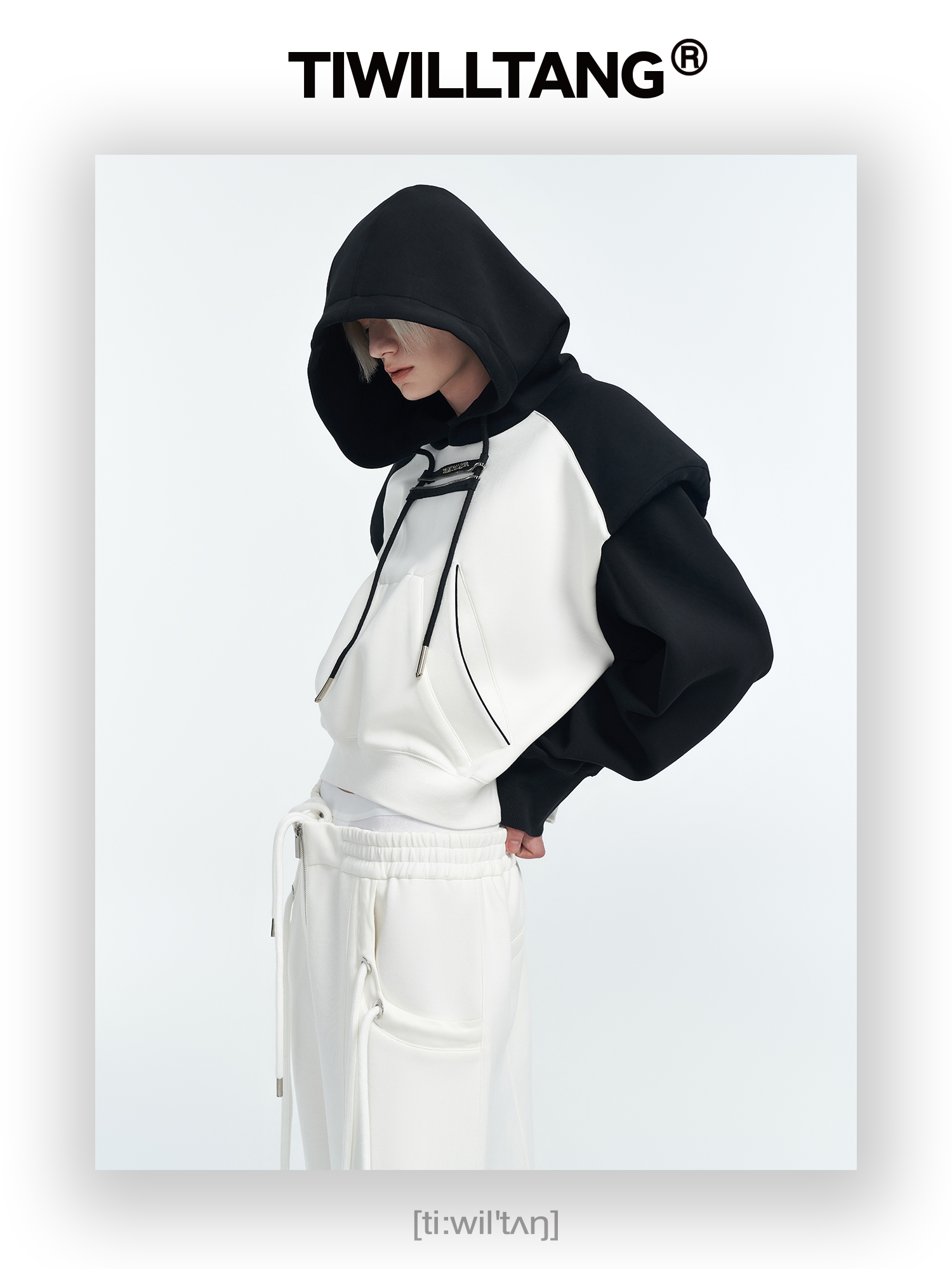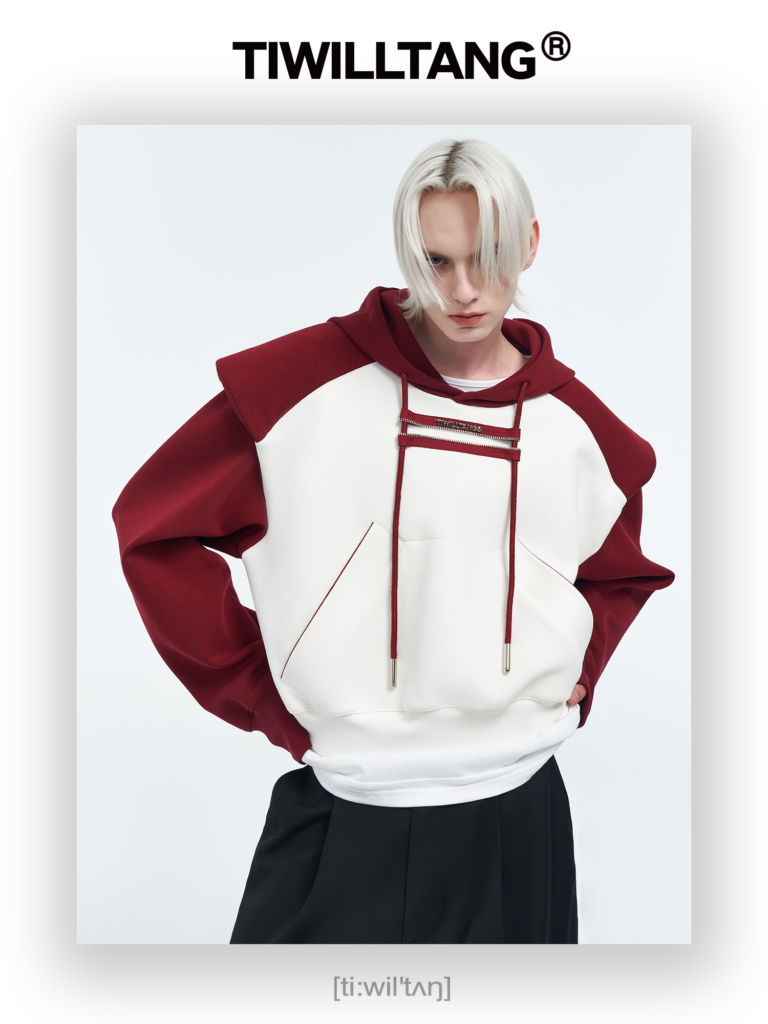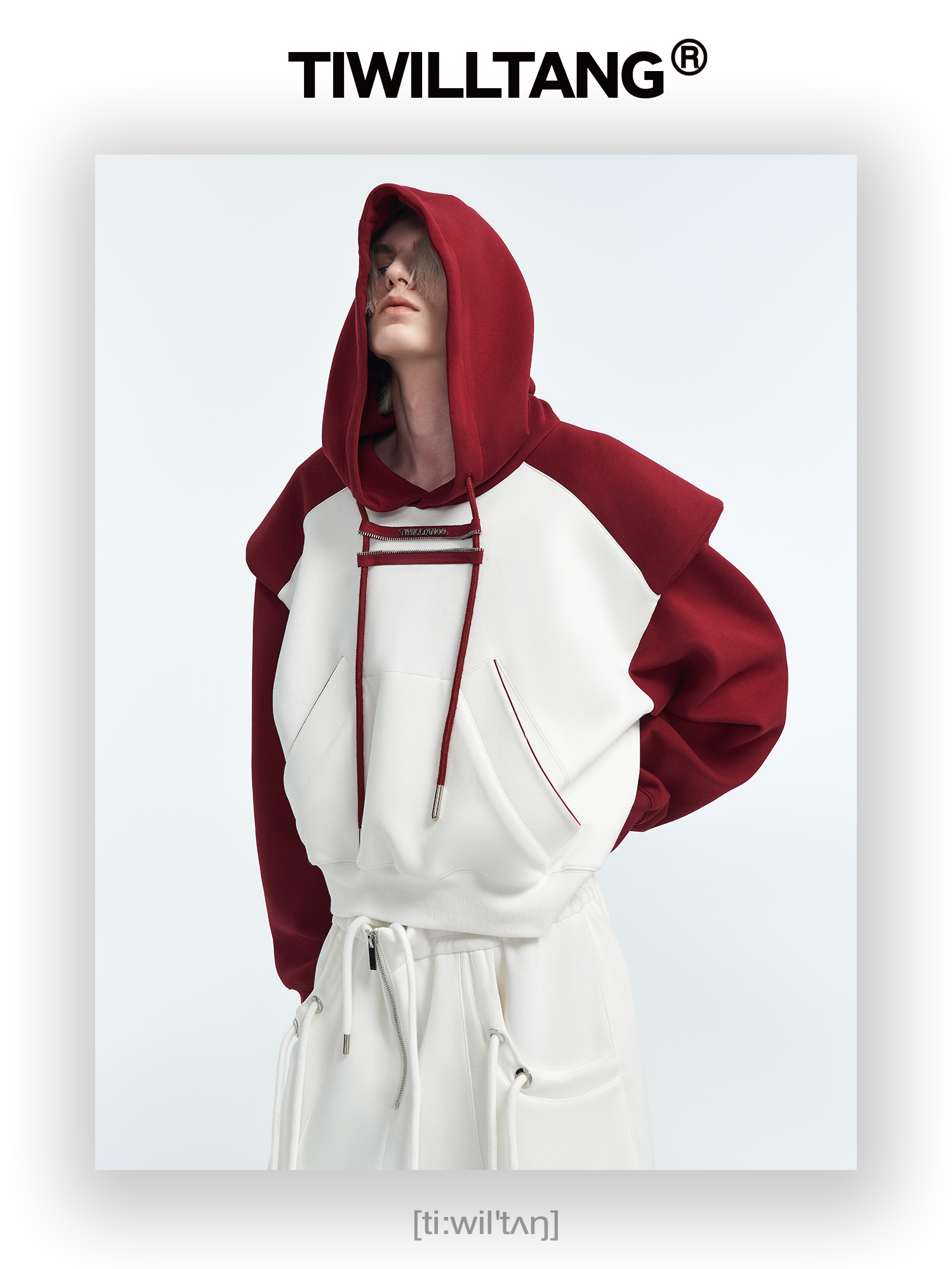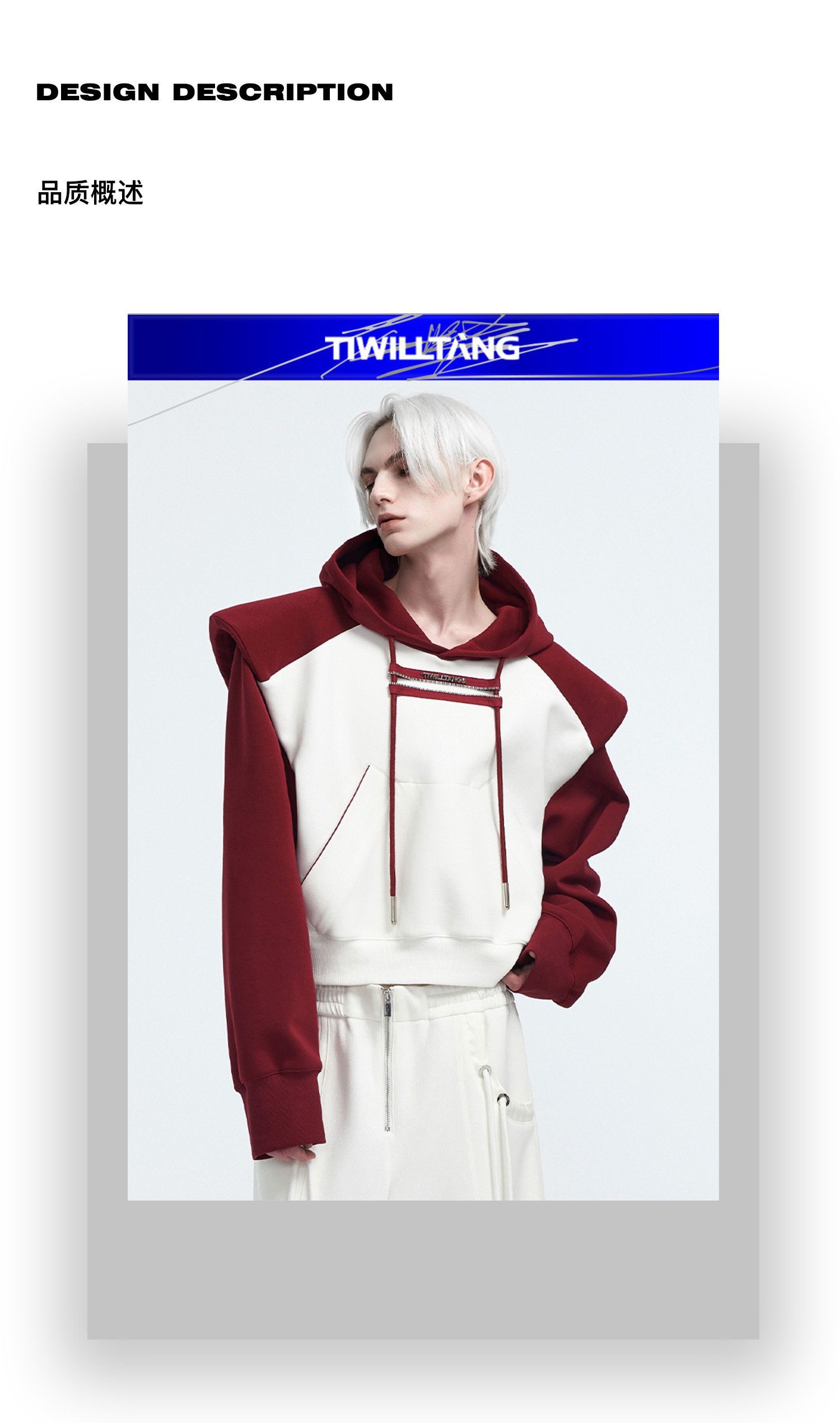 TIWILLTANG启世录“桎回”短款宽肩休闲撞色帽衫七夕情侣连帽卫衣