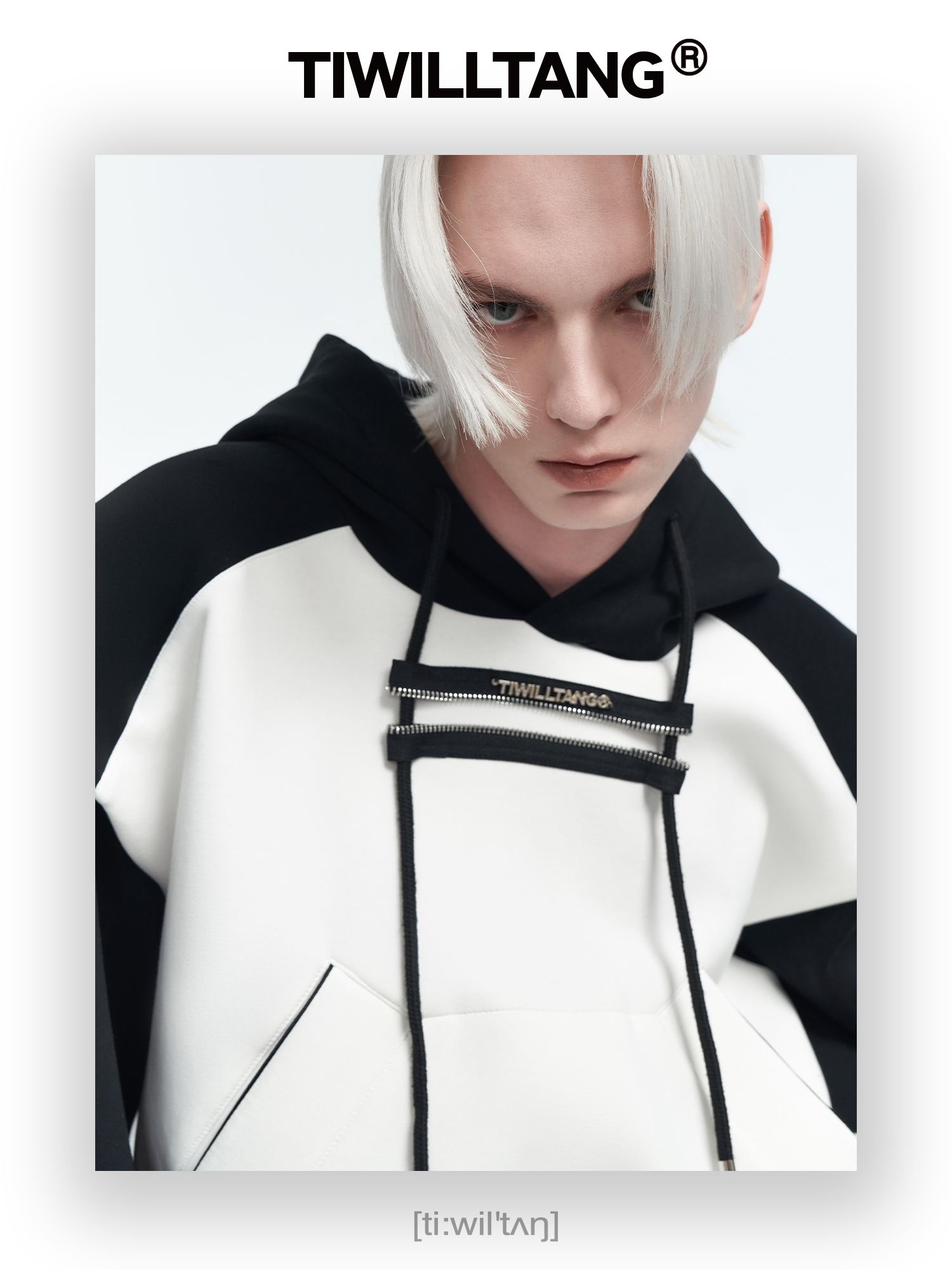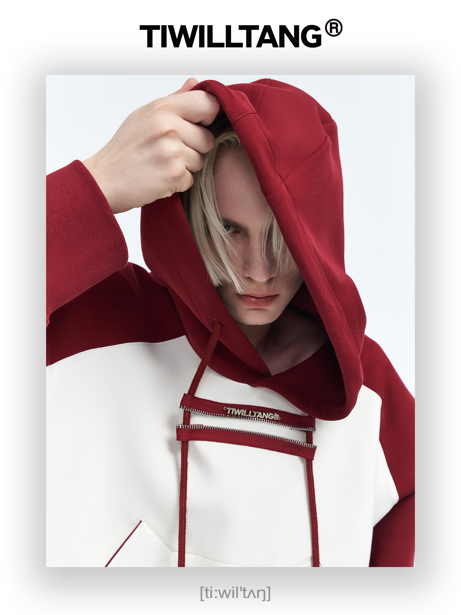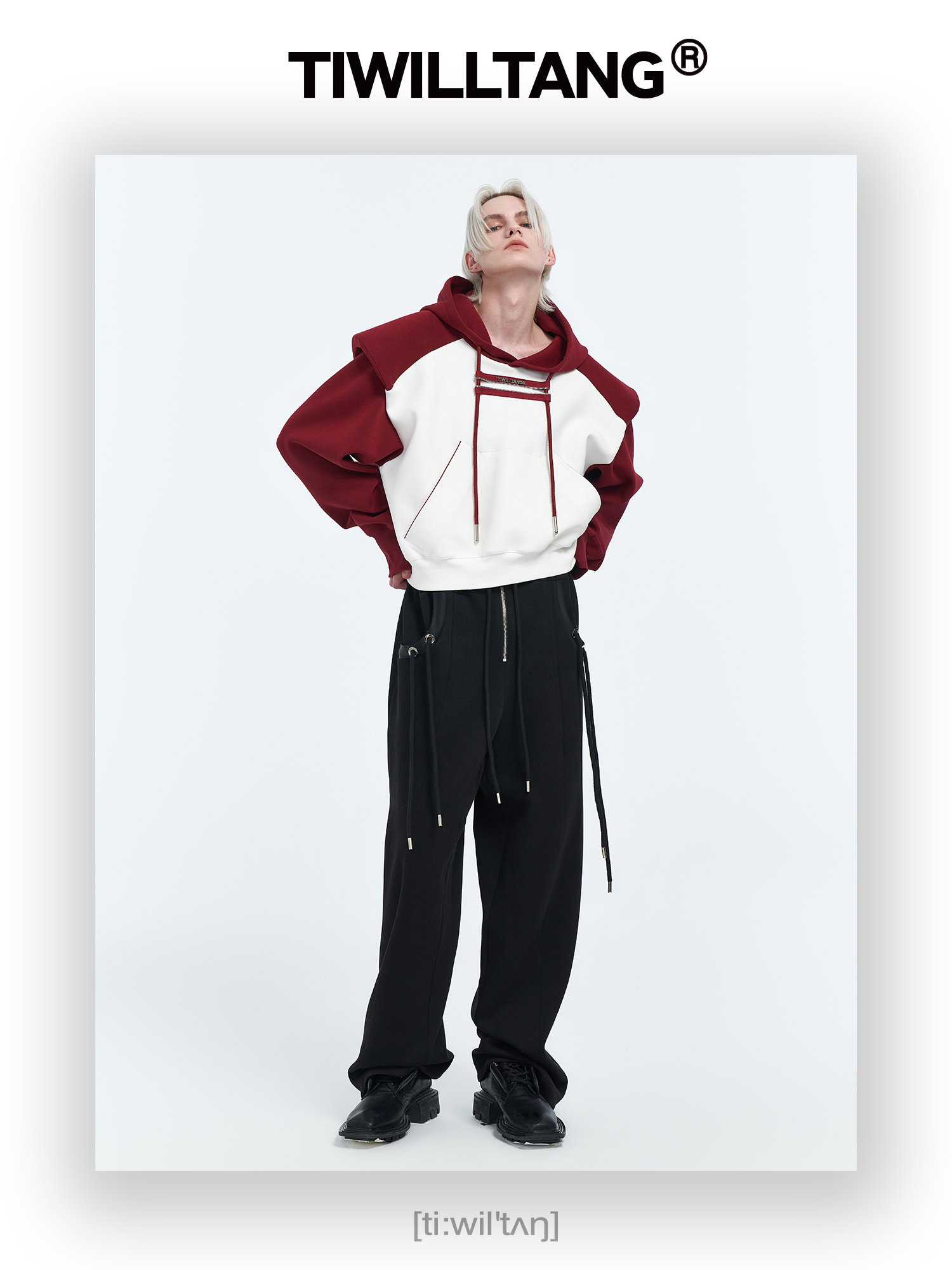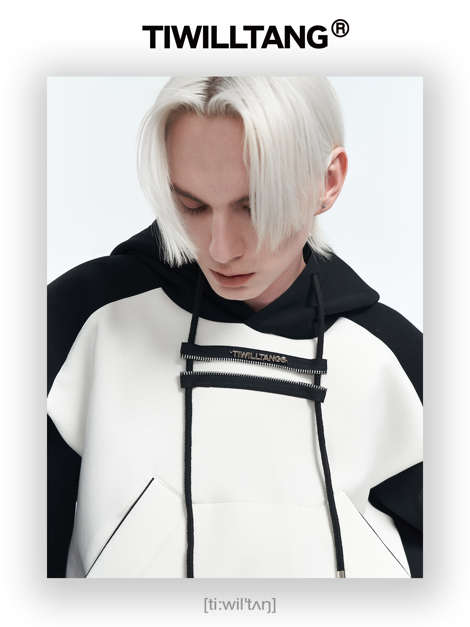 TIWILLTANG启世录“桎回”短款宽肩休闲撞色帽衫七夕情侣连帽卫衣