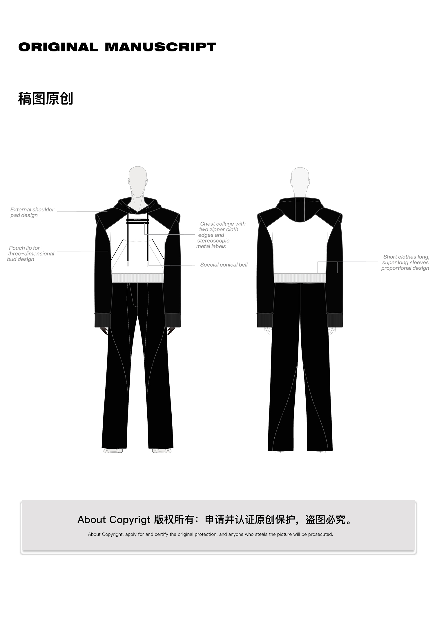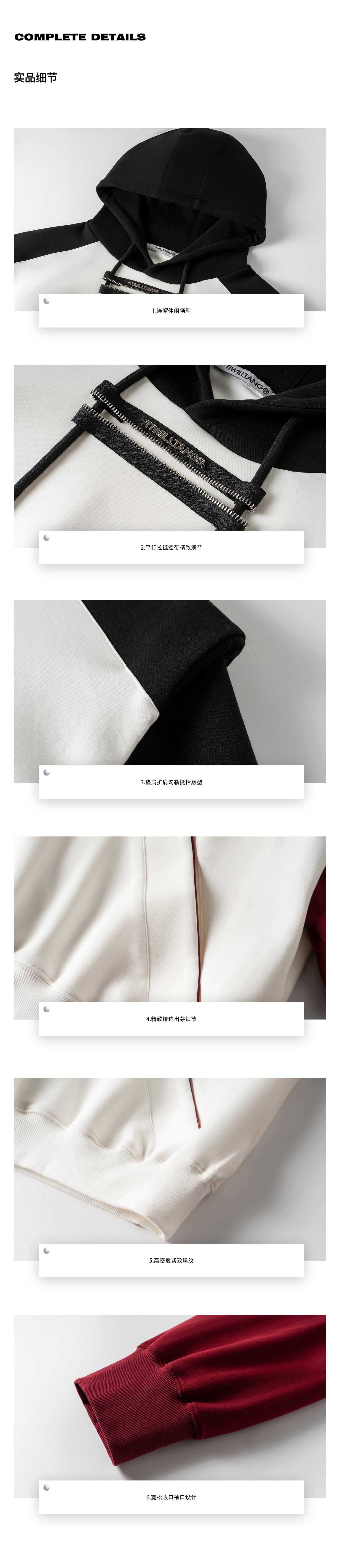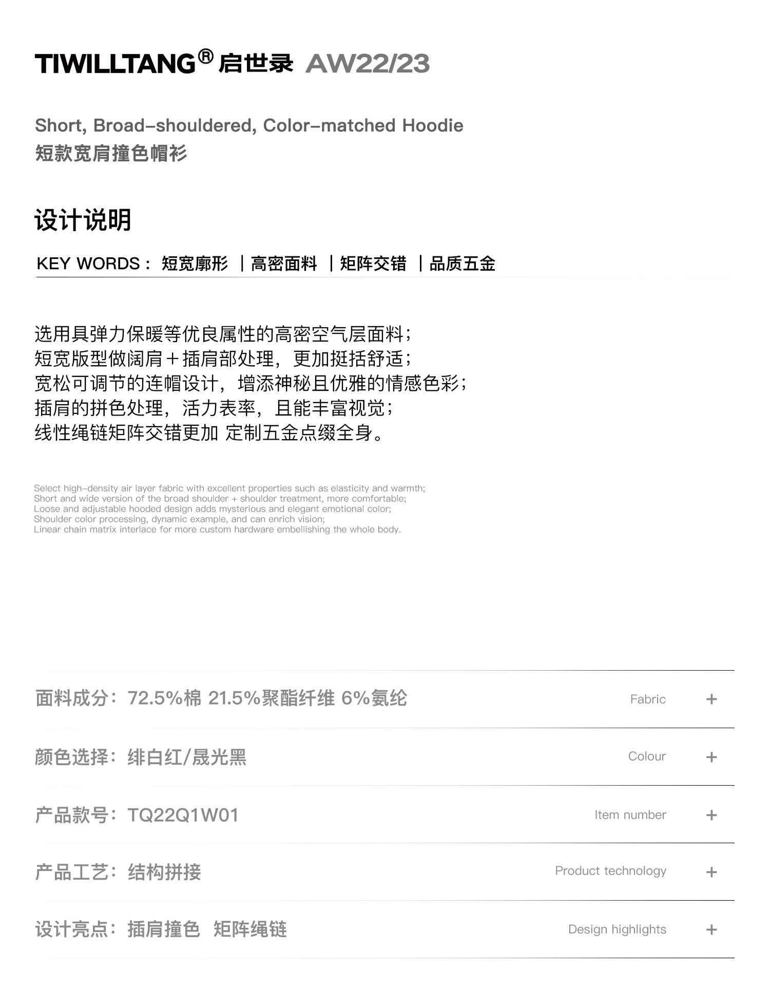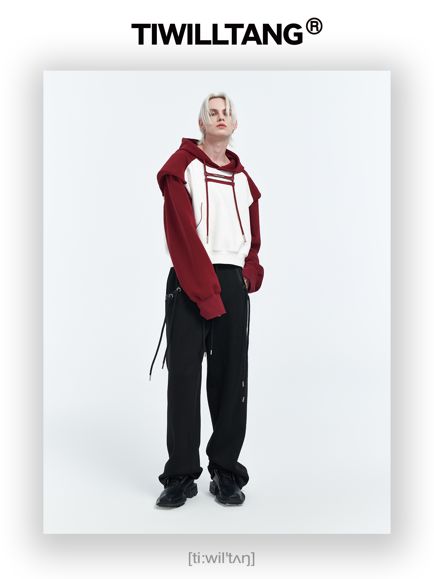 TIWILLTANG启世录“桎回”短款宽肩休闲撞色帽衫七夕情侣连帽卫衣