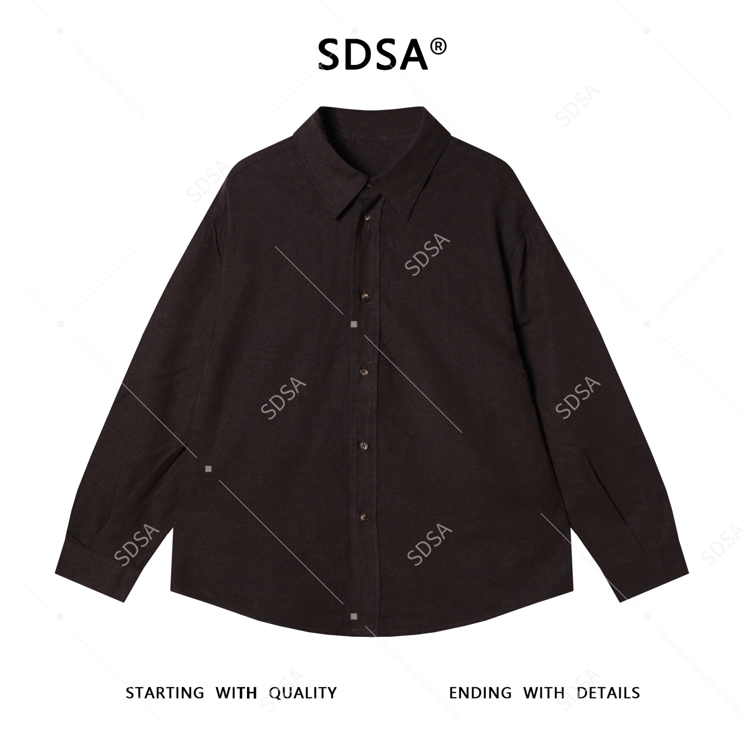 C002SDSA男士秋冬新款痞帅男装极简风纯色长袖翻领衬衫宽松百搭衬衣