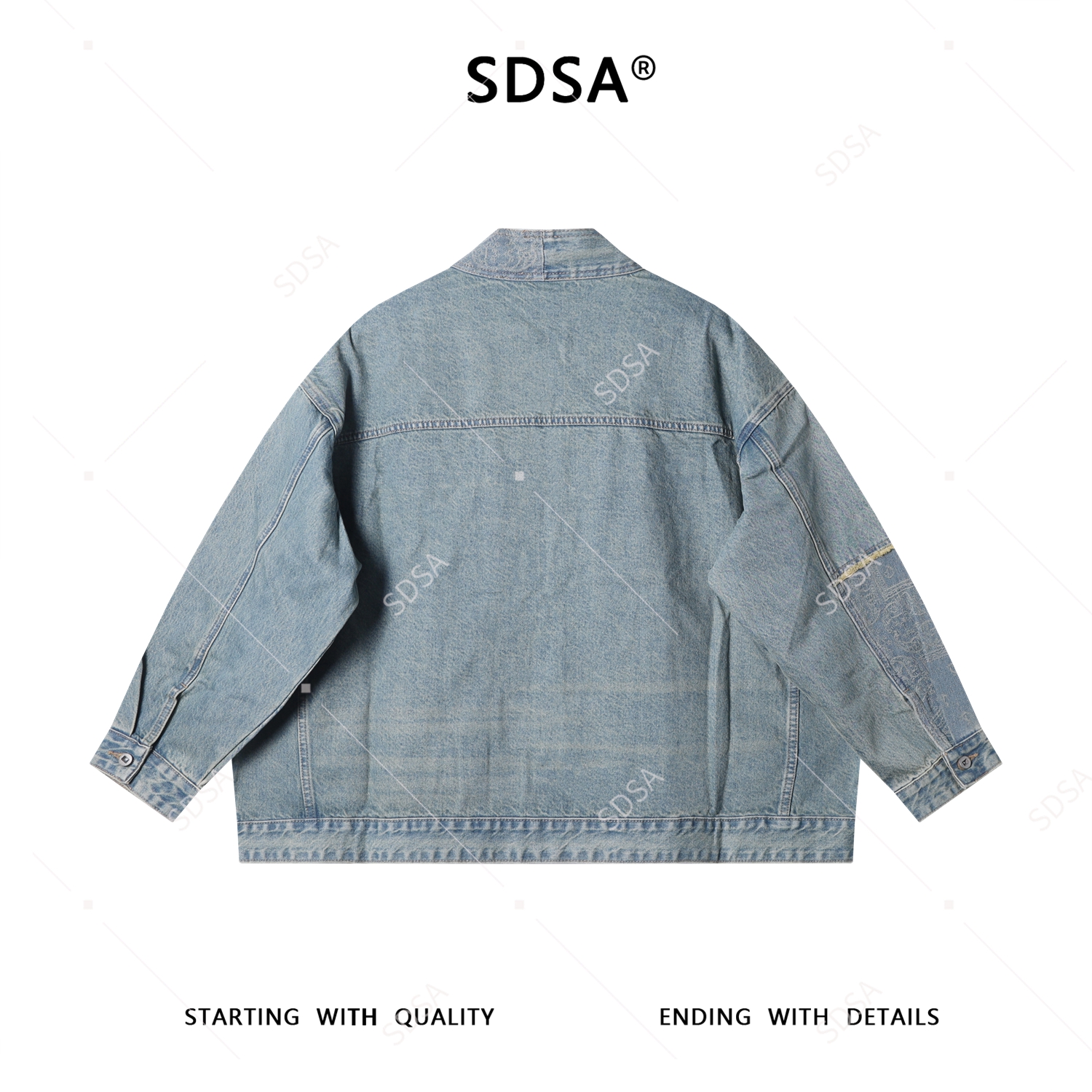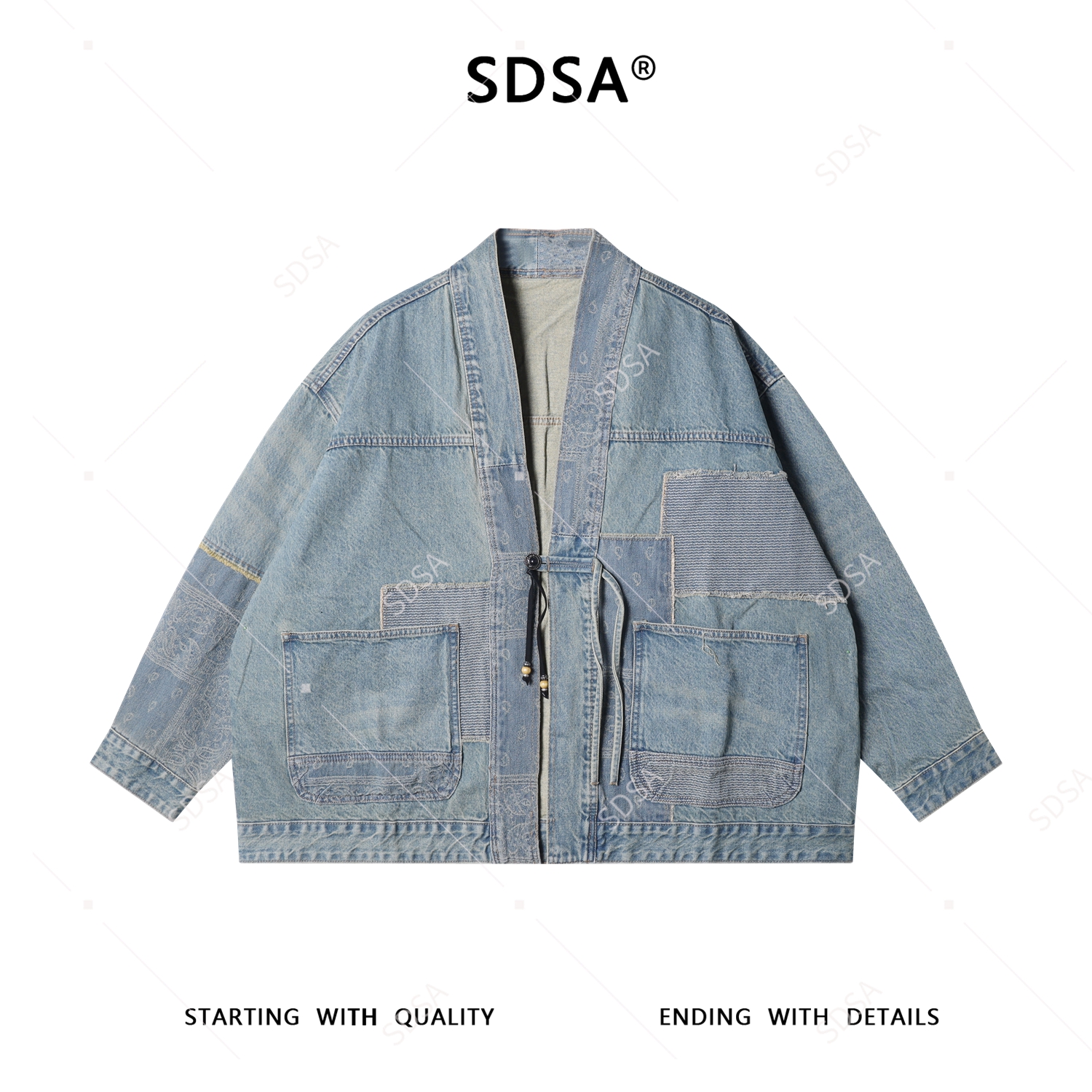 SDSA男士秋冬新款痞帅男装韩版简约裁布拼接系带牛仔夹克外套百搭