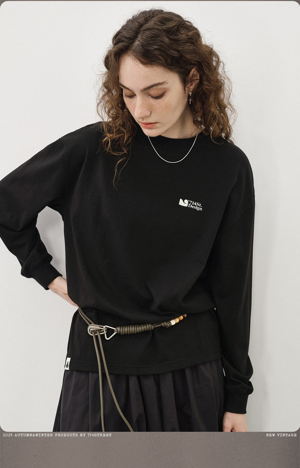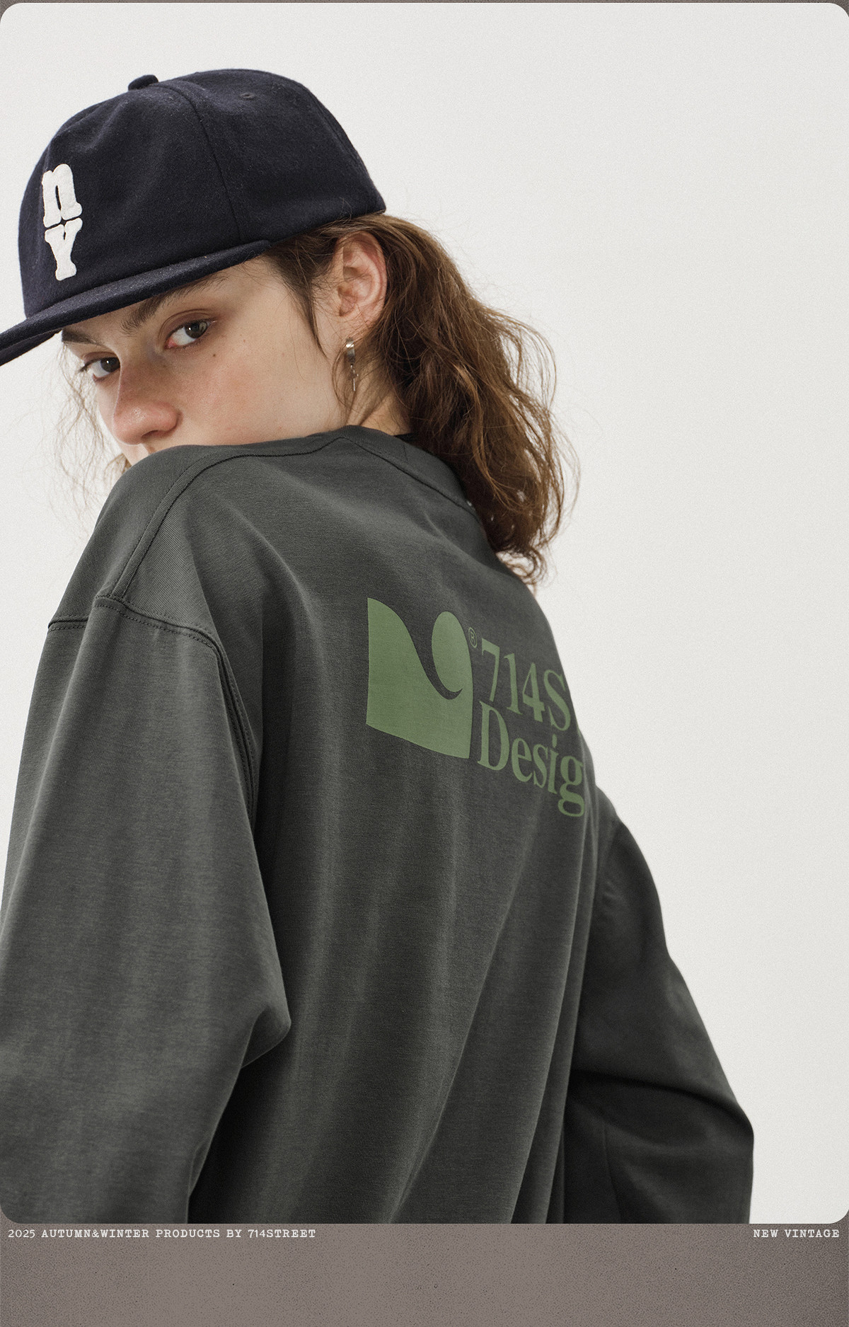 714street日系重磅字母印花长袖 秋季新款国潮纯棉宽松情侣T恤男