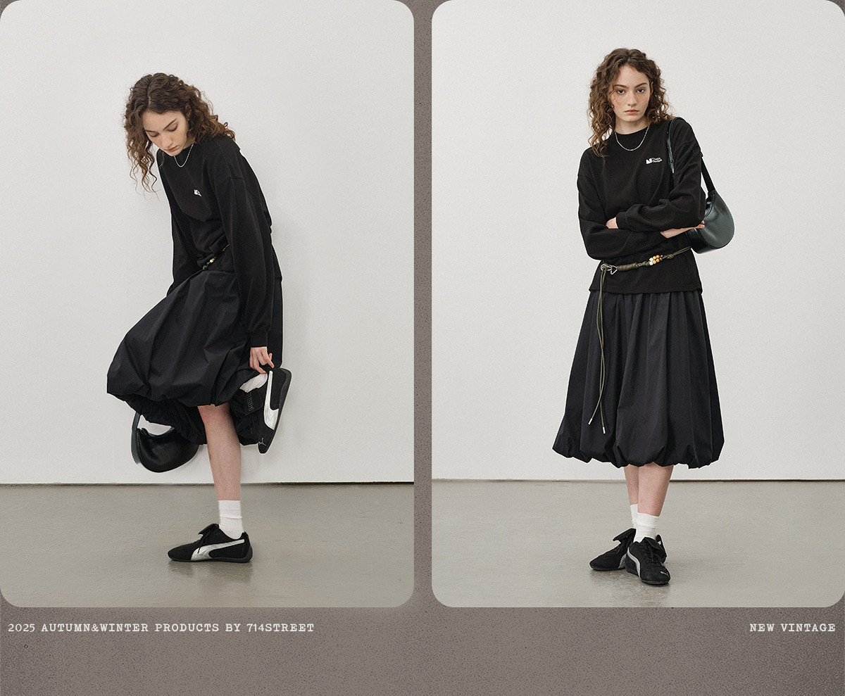 714street凉感防晒设计感花苞半身裙女夏季新款百搭休闲A字工装裙