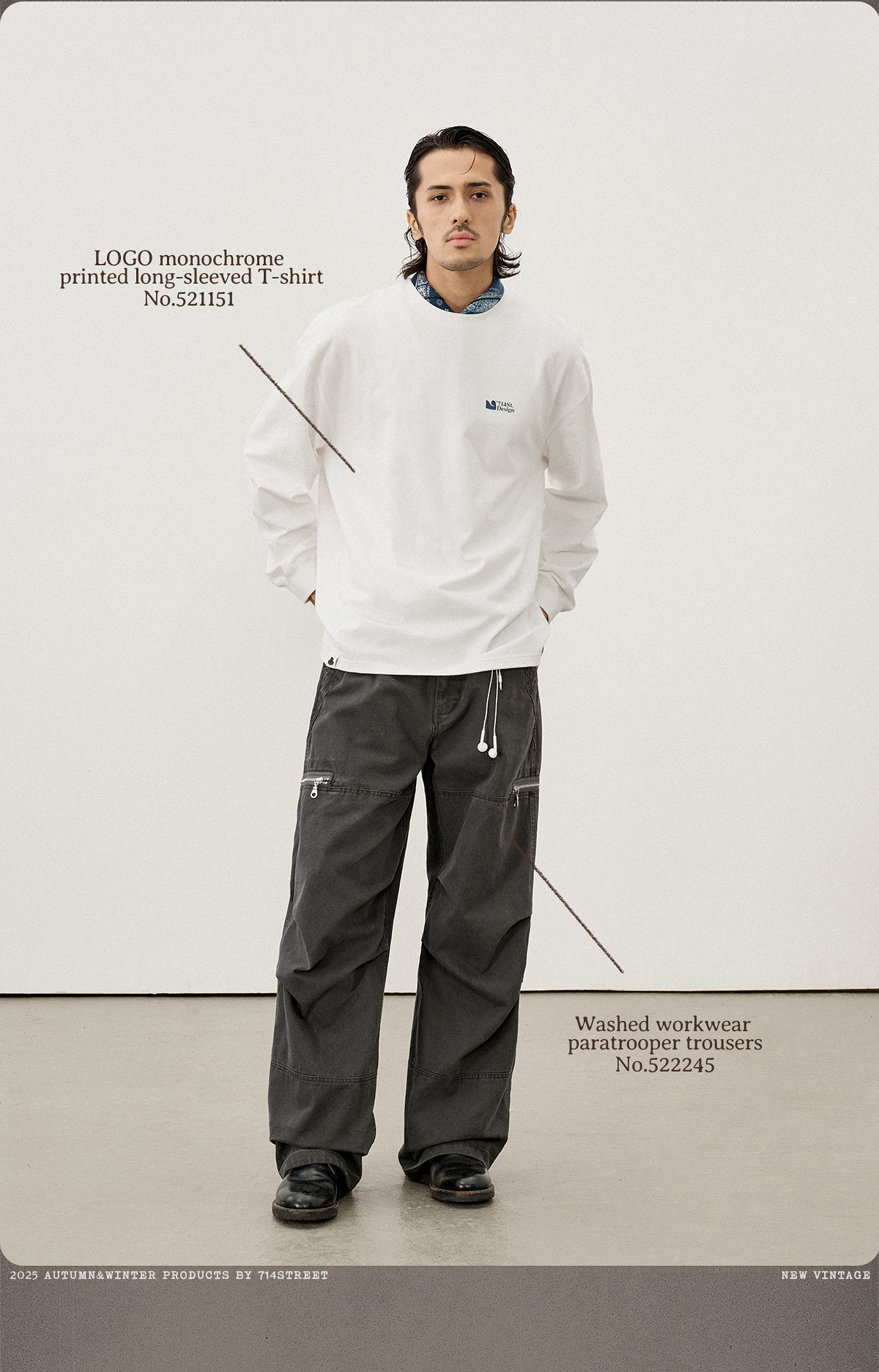 714street水洗打褶锥形男士休闲裤2025秋季新款cleanfit直筒长裤