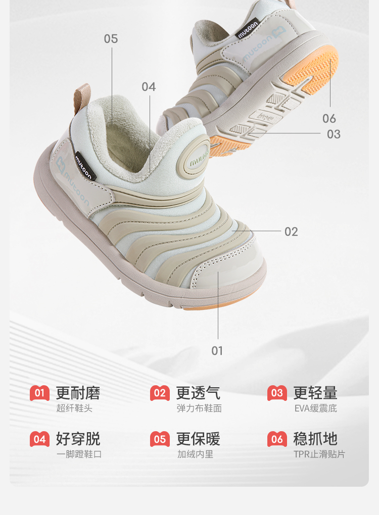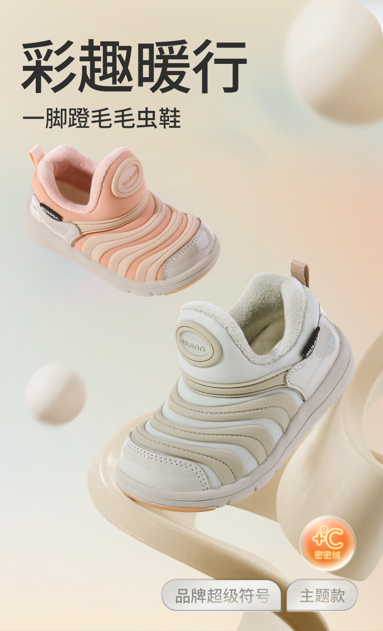 牧童毛毛虫鞋儿童运动鞋2025冬季新款男童软底加绒保暖女童二棉鞋