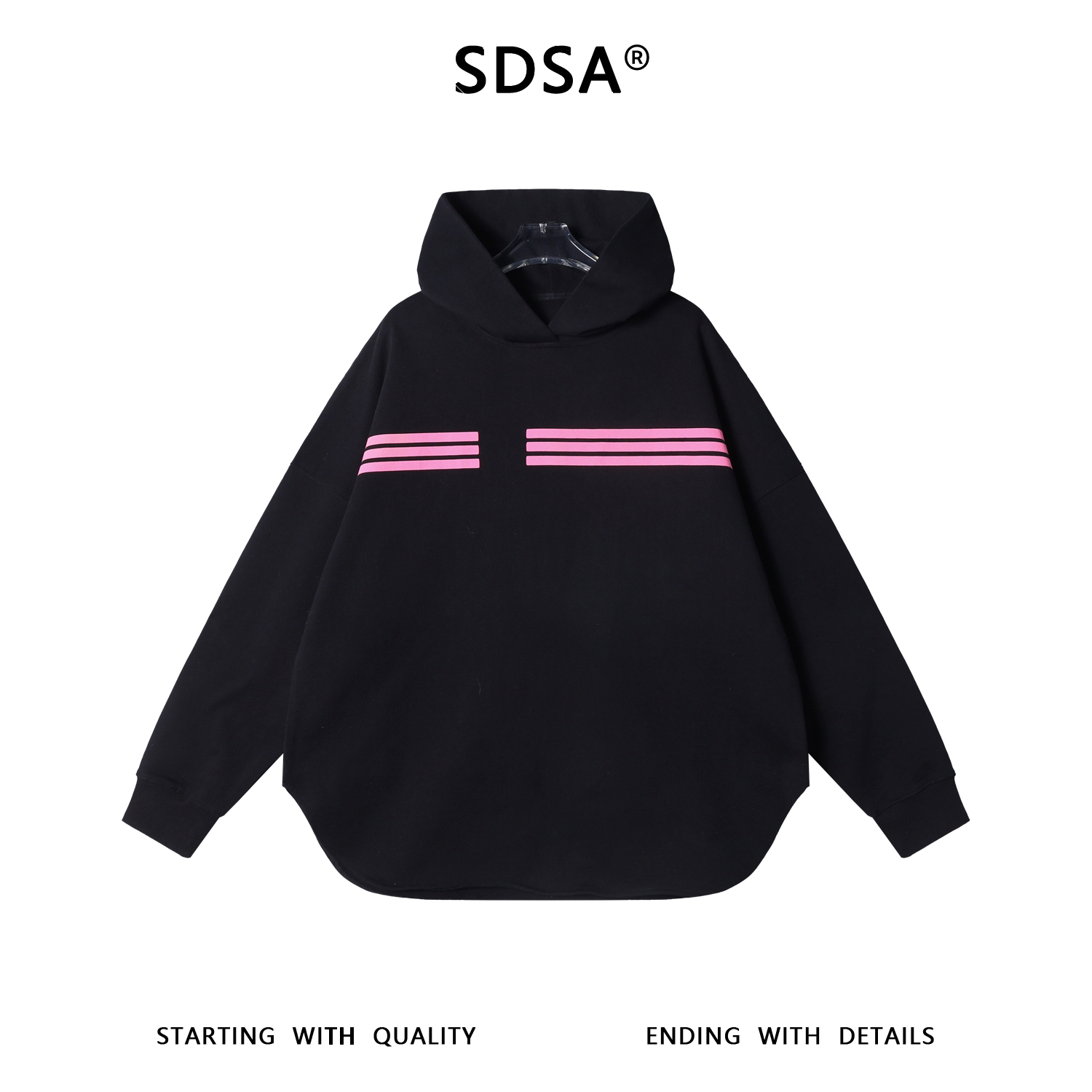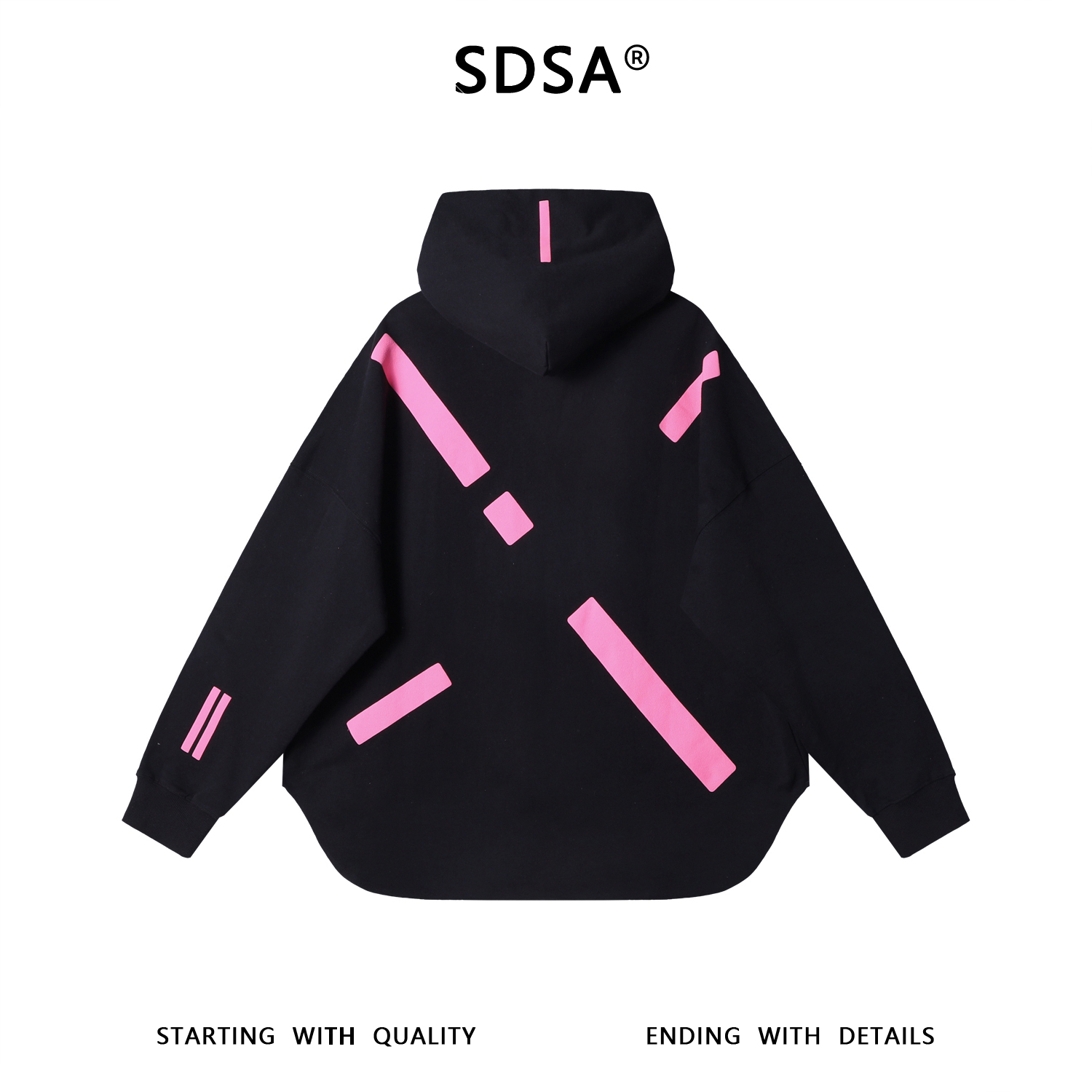 SDSA秋冬新款痞帅男装韩版撞色印花连帽卫衣下摆不规则百搭时尚
