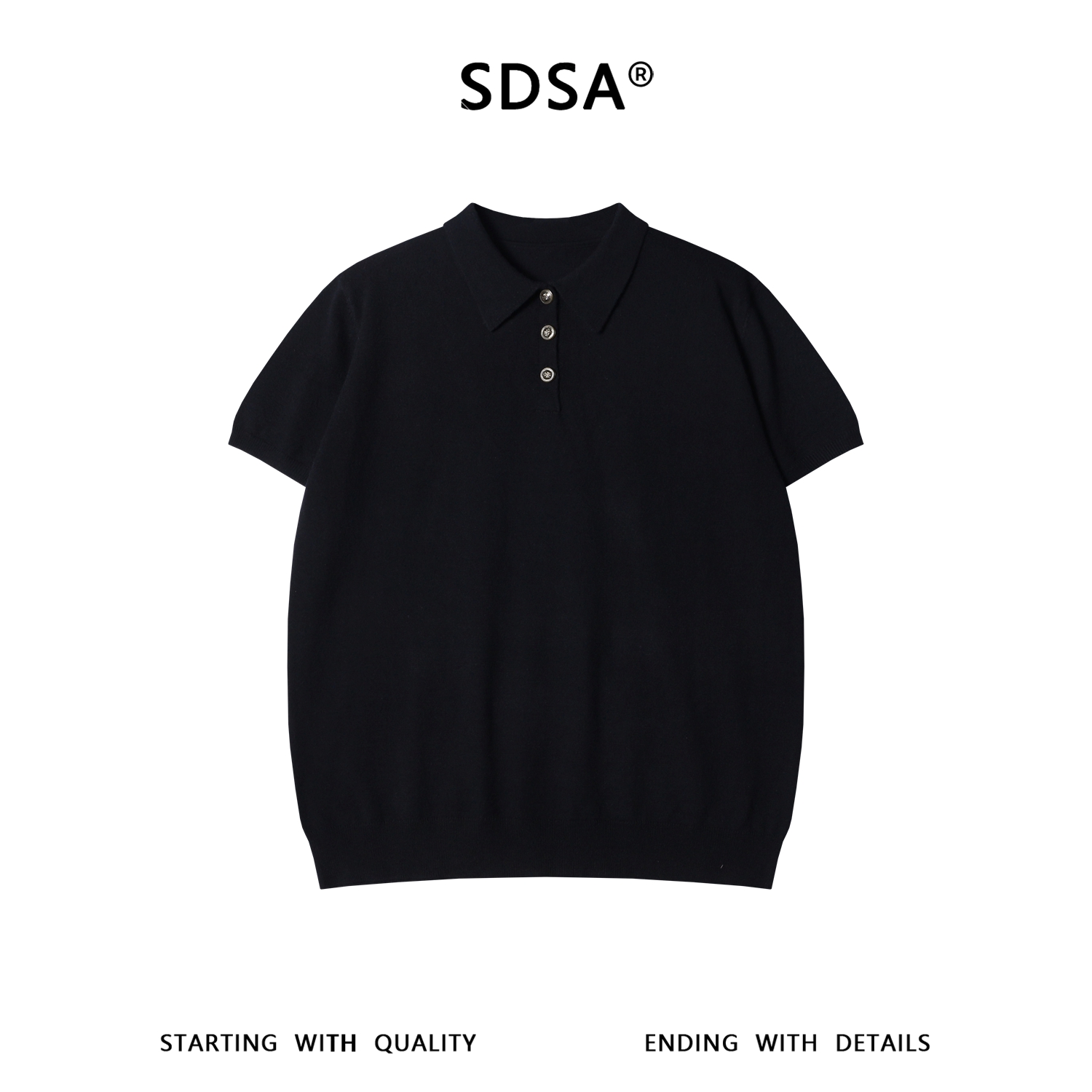 SDSA男装2026新款轻奢简约老钱风纽扣翻领短袖T恤百搭套头上衣