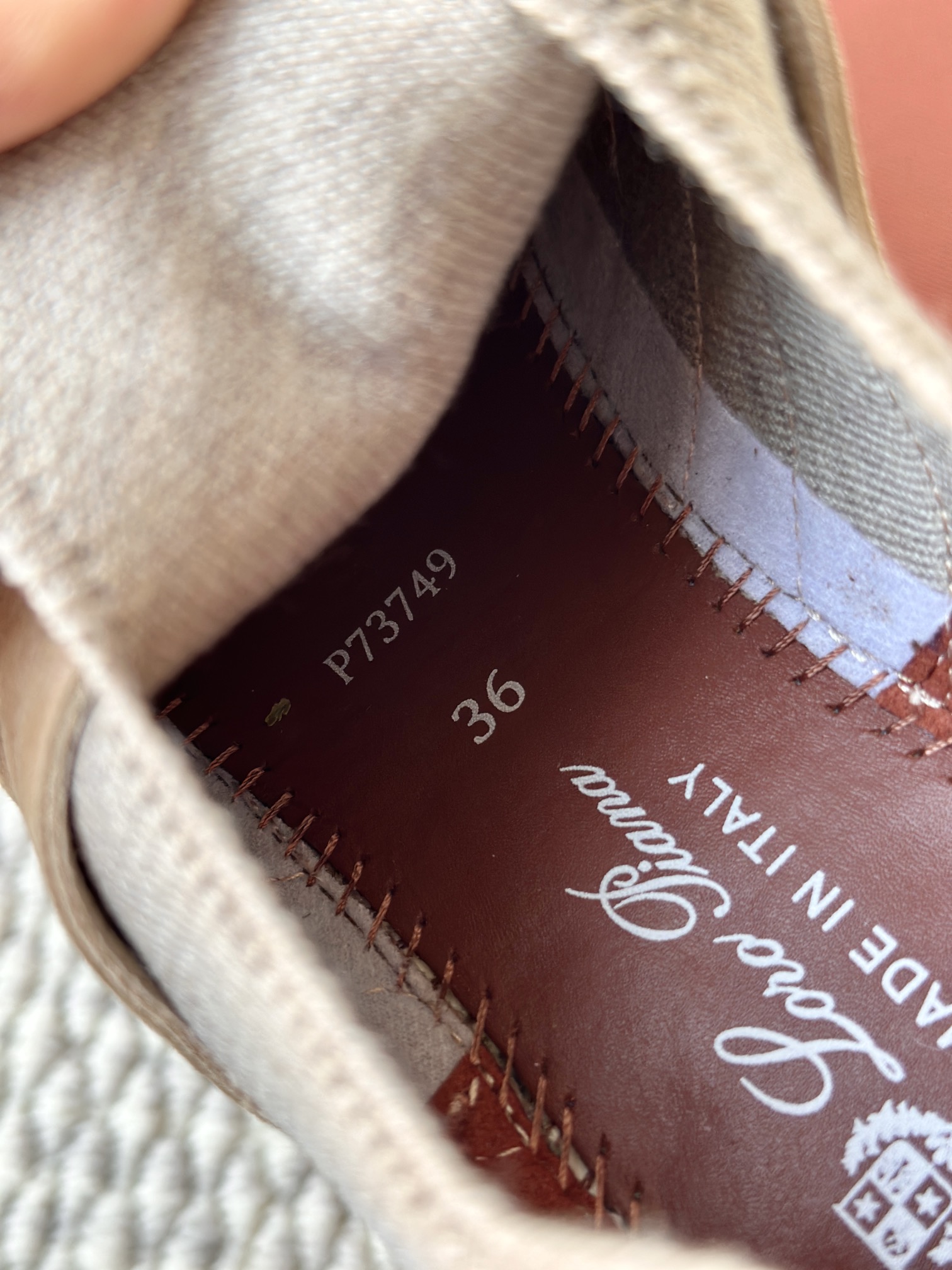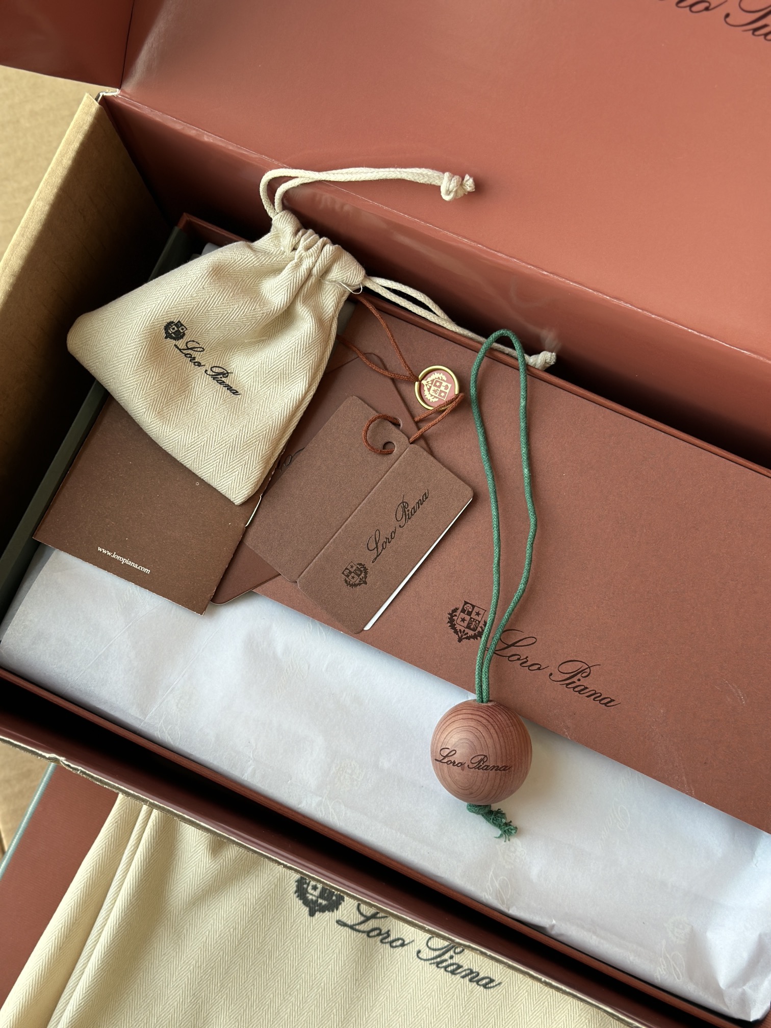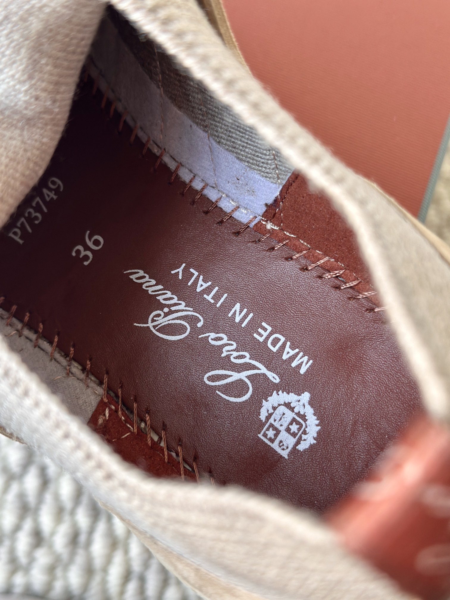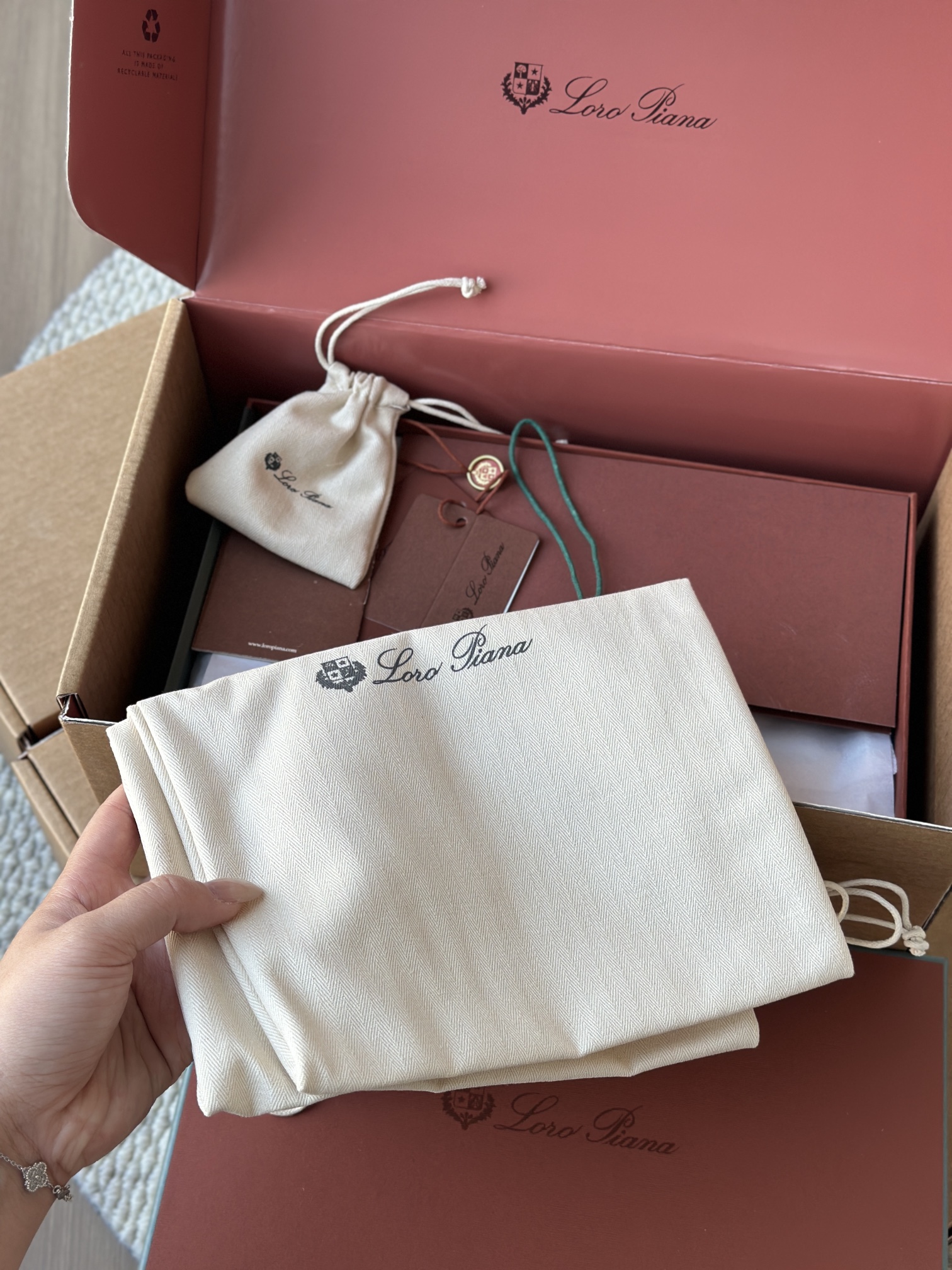 配Kummel 色鞋底,印有Loro Piana首字母缩写重复图案Kummel 色提拉环带有Loro Piana 标识