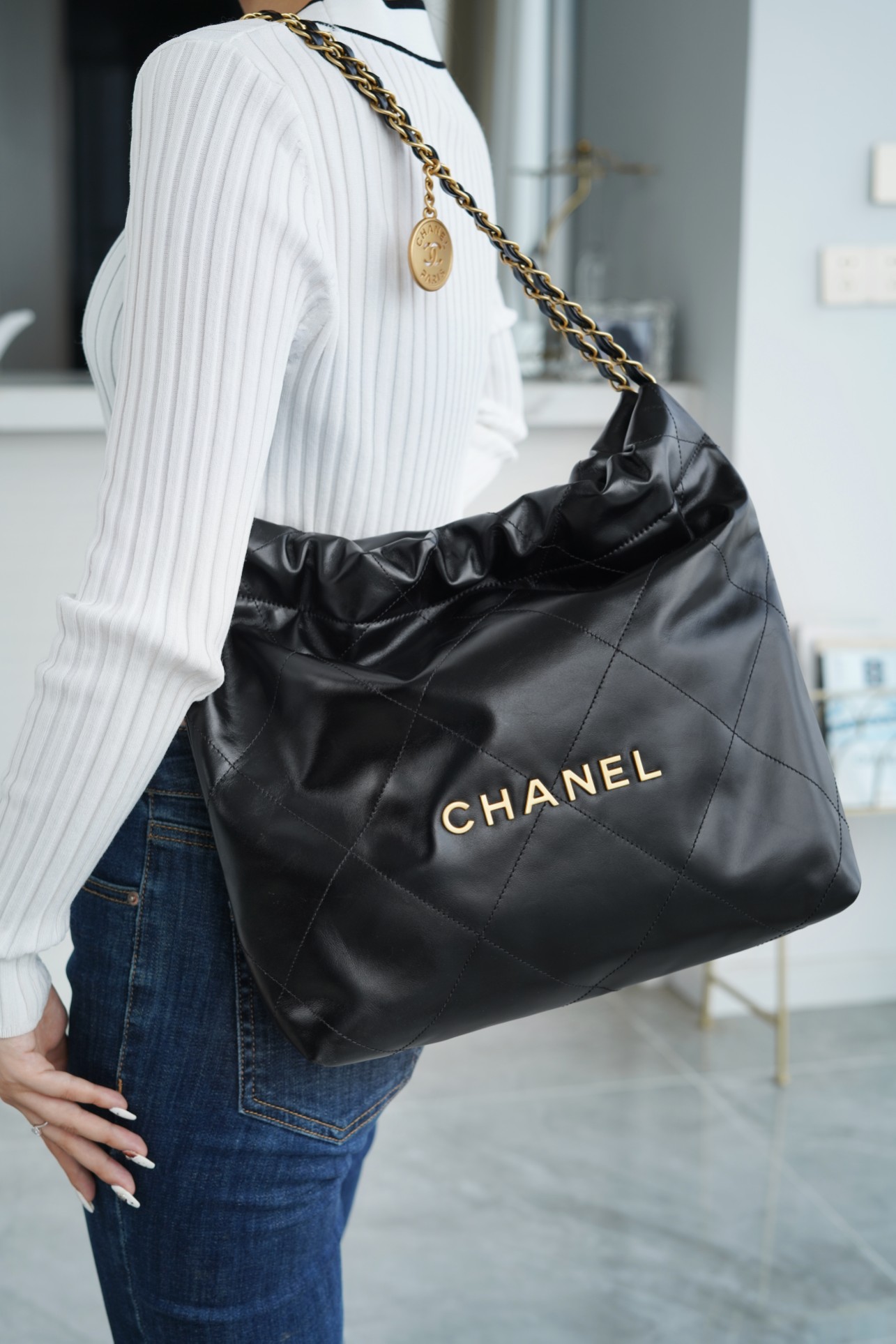 简简单单的外观却藏着不少设计师的高级设计,镂空的chanel logo的金币,小小的点缀让整体气质提高了不止一个Level,满满的复古情怀,松松垮垮的慵懒感! ??