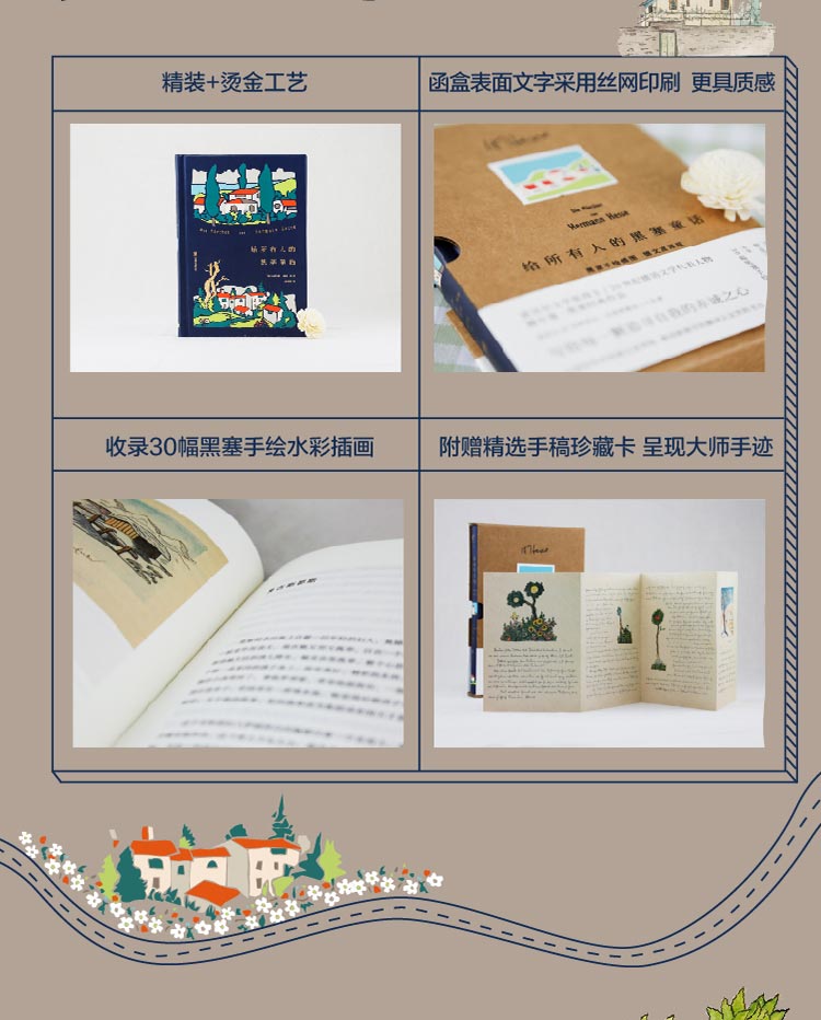★收录黑塞手绘水彩画及手稿珍藏卡,函盒精装,收藏品质 黑塞不仅是文学家,也是多产的画家。不同于文字的深沉忧郁,在他的画作中我们可以看到黑塞的另一面。随书附赠的手稿珍藏卡更可看到黑塞手迹,极具收藏价值。