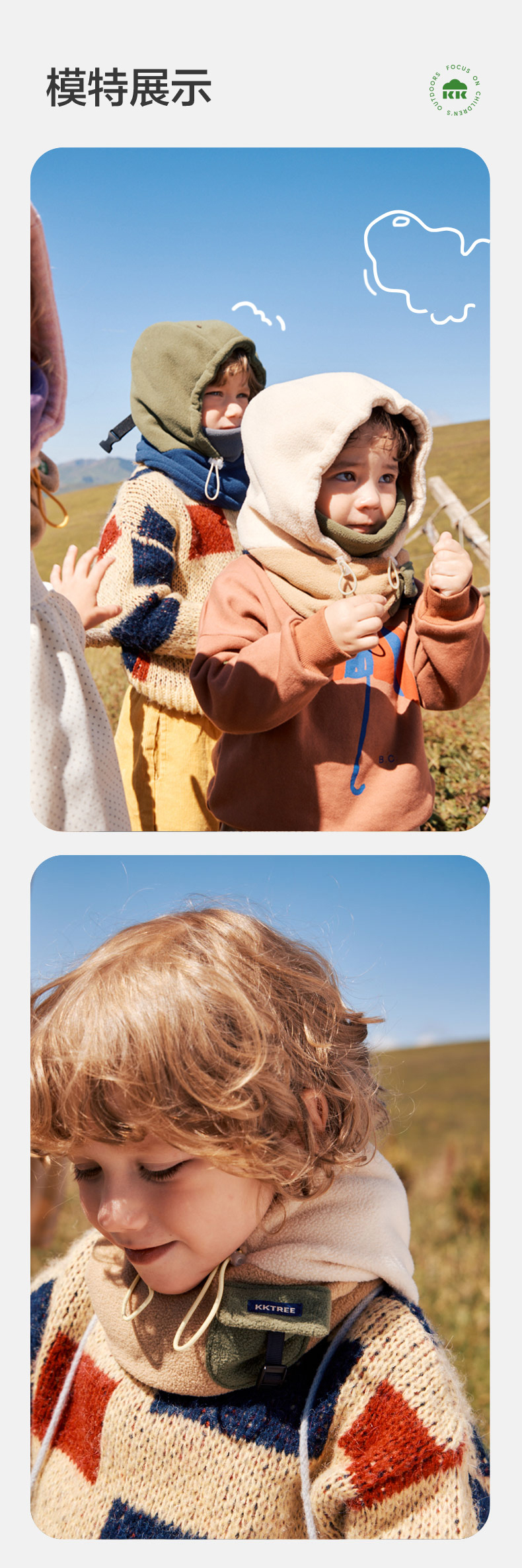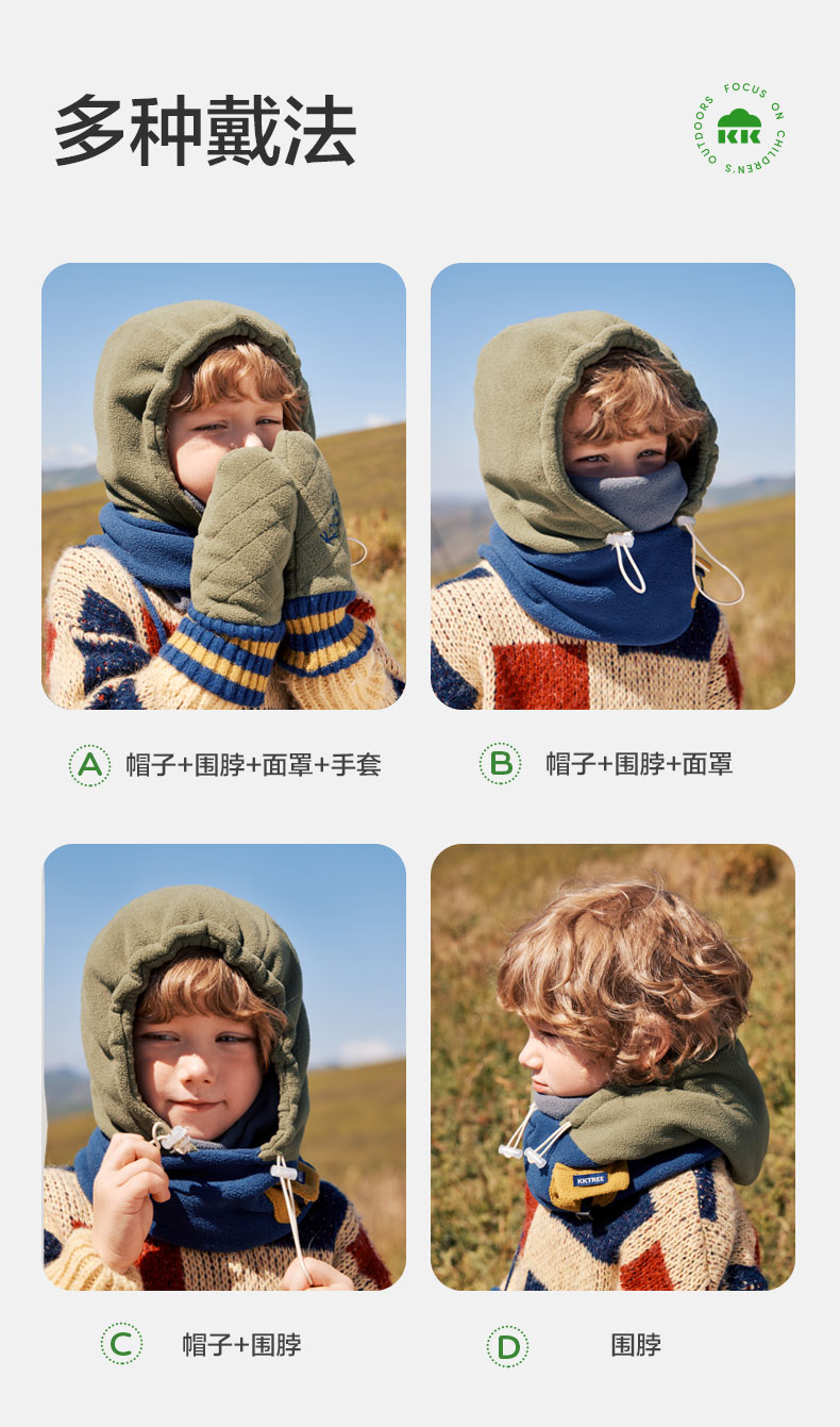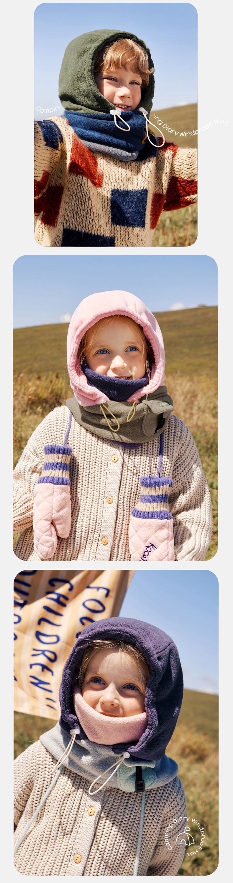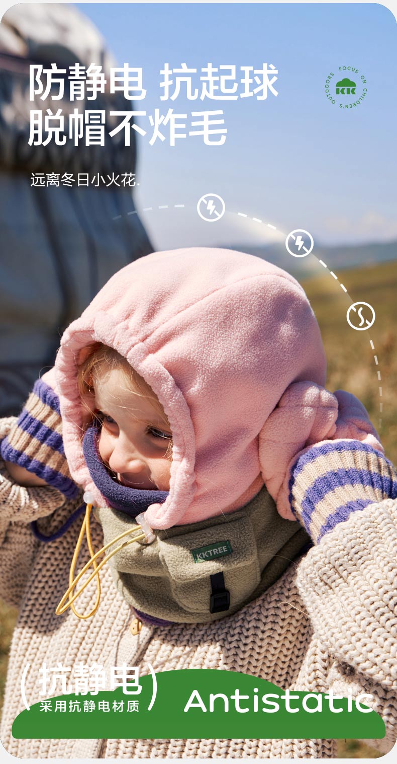 KK树萌面暖暖儿童帽子围巾一体防风面罩男女宝宝A类抗静电秋冬季野营日记一体帽
