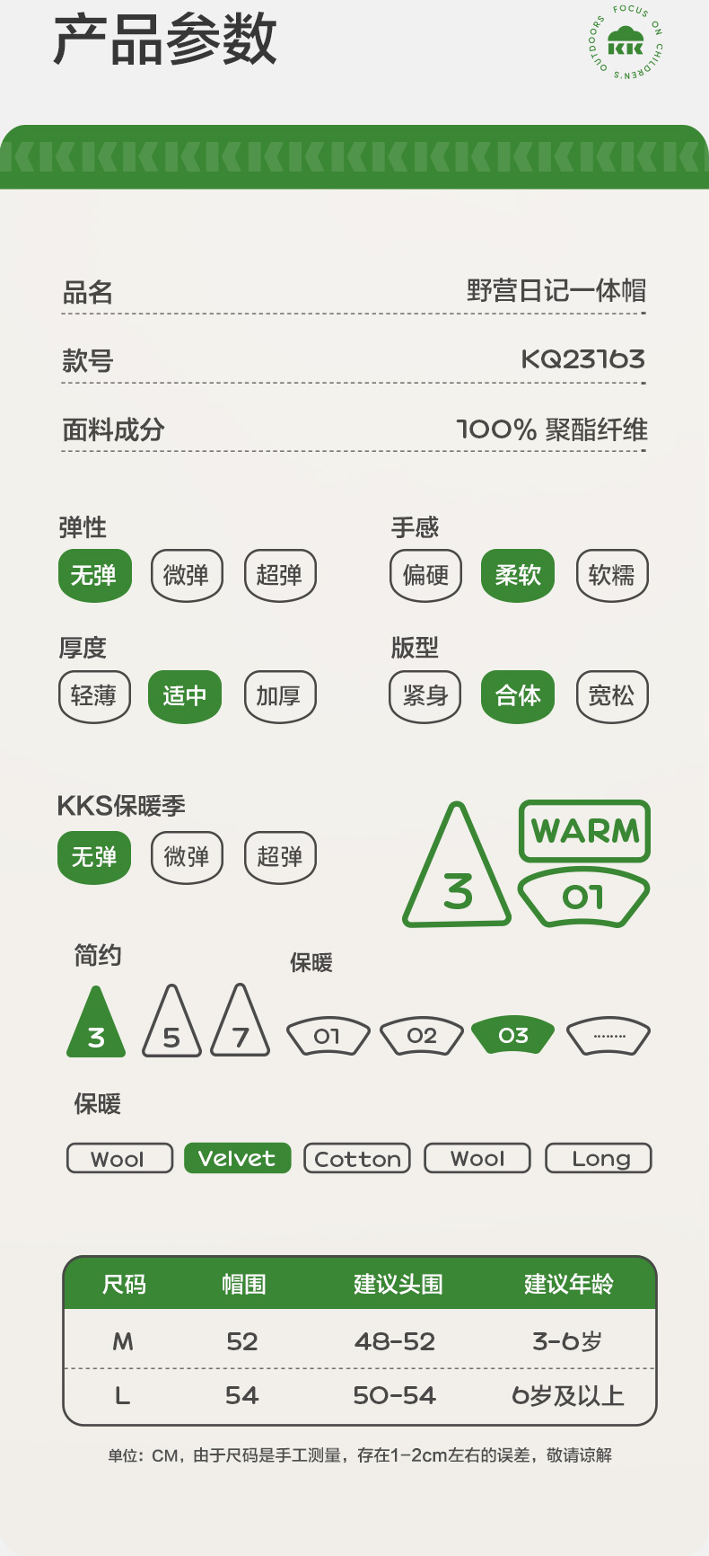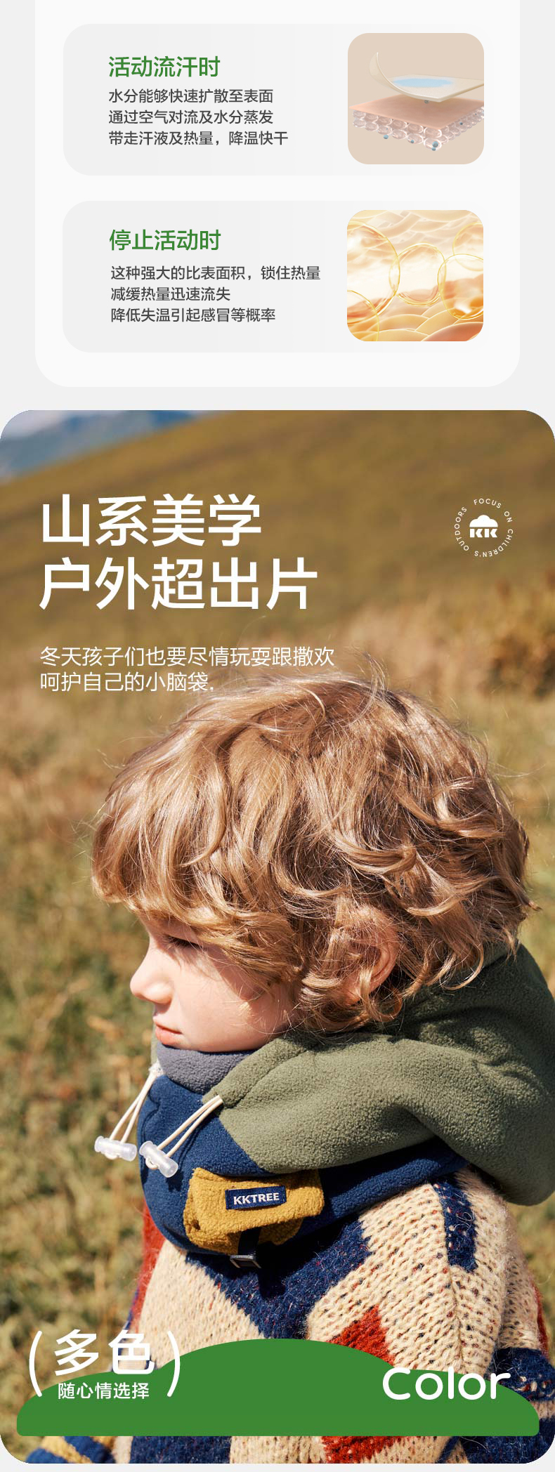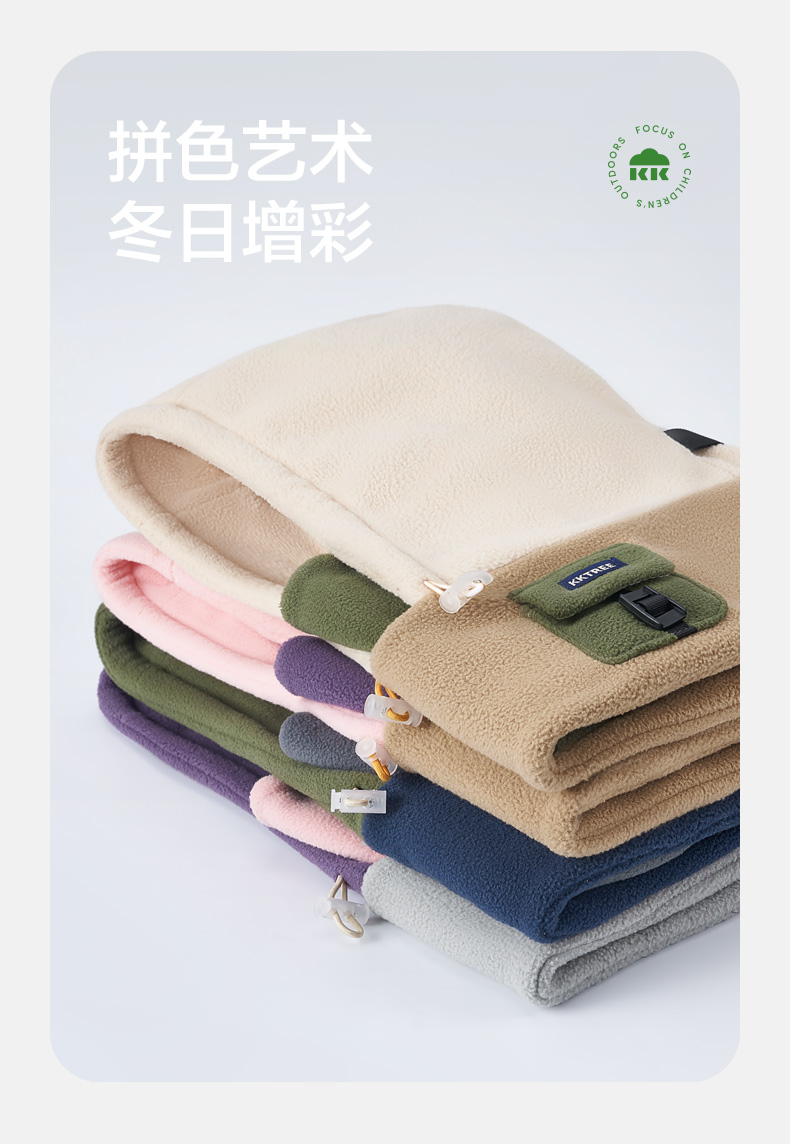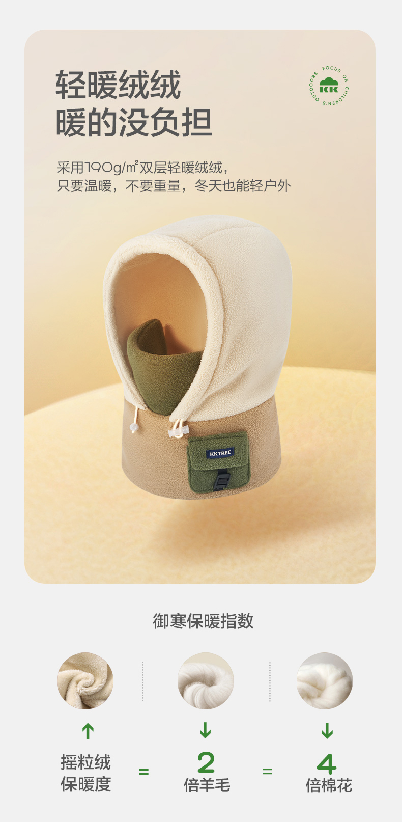KK树萌面暖暖儿童帽子围巾一体防风面罩男女宝宝A类抗静电秋冬季野营日记一体帽