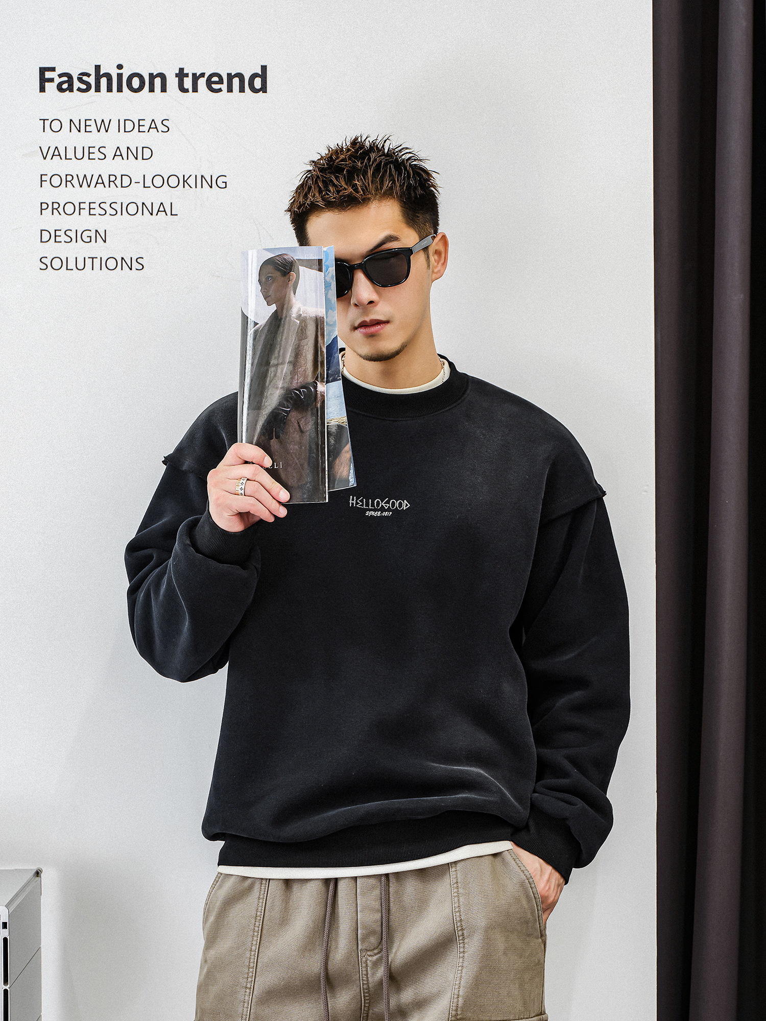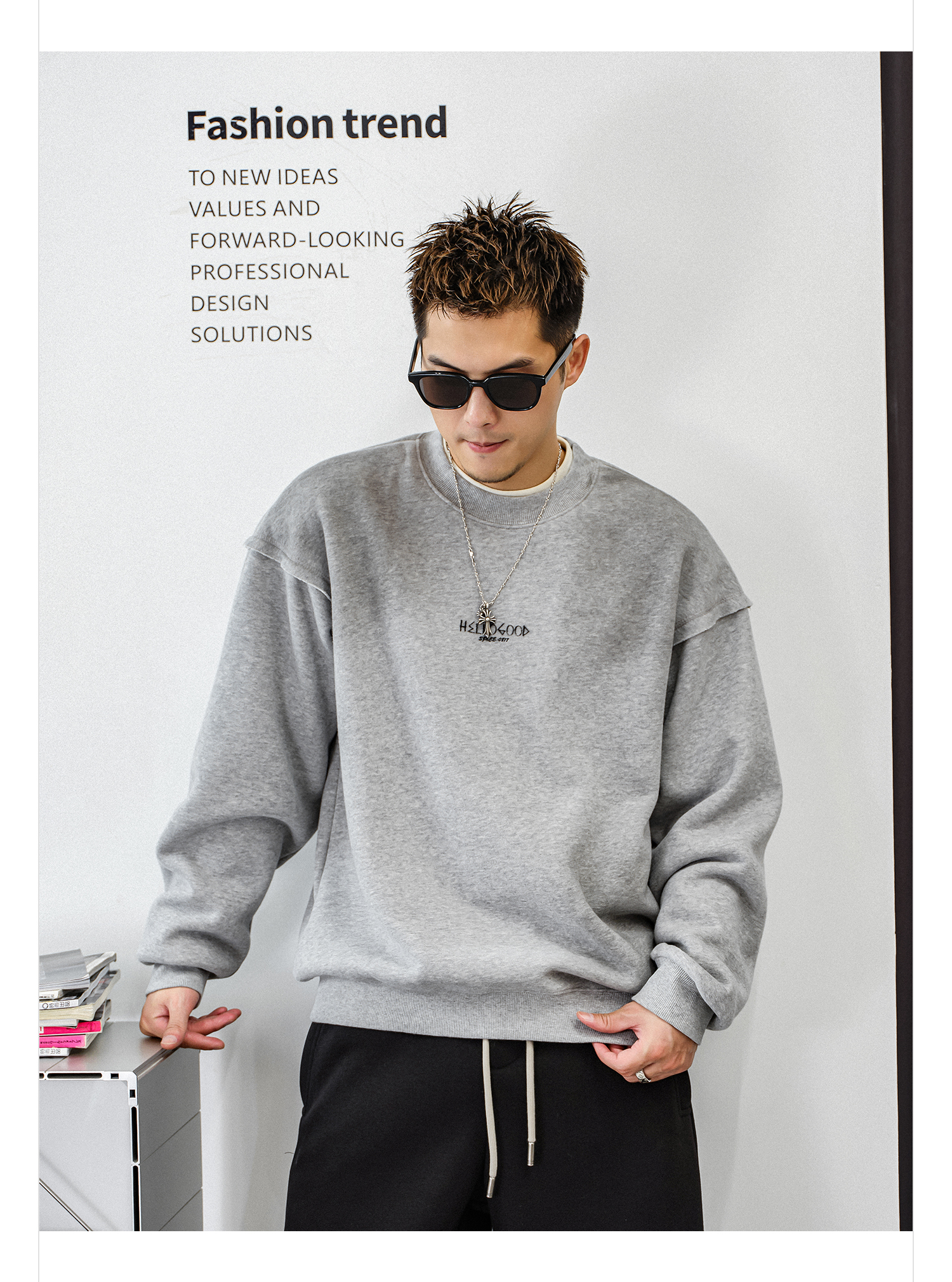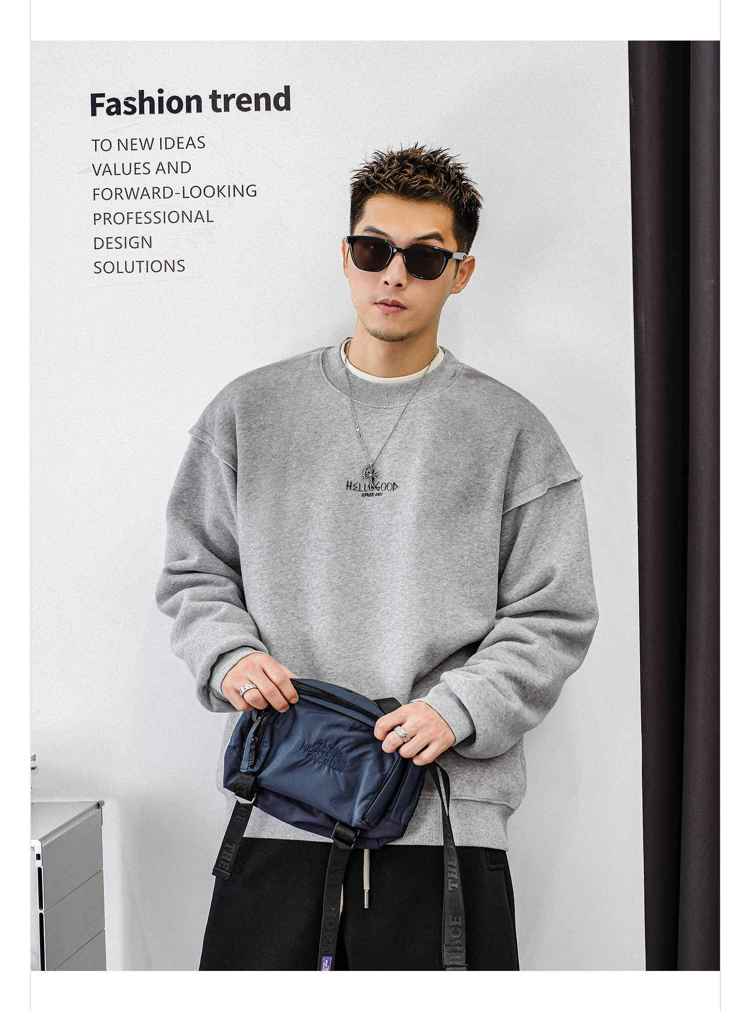 徐太浪【街头风 帅气字母】加绒卫衣男秋冬款大码百搭打底衫上衣