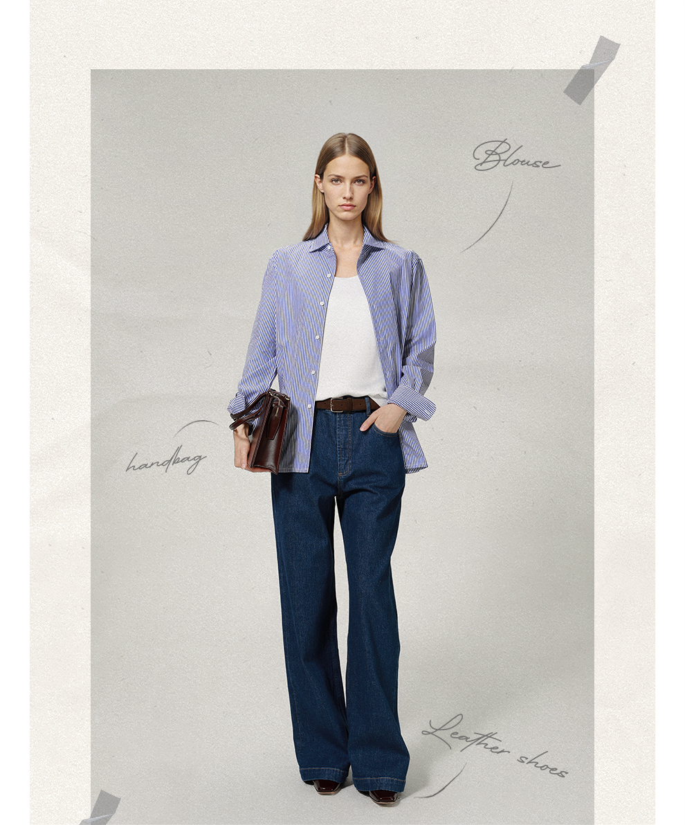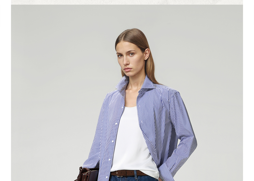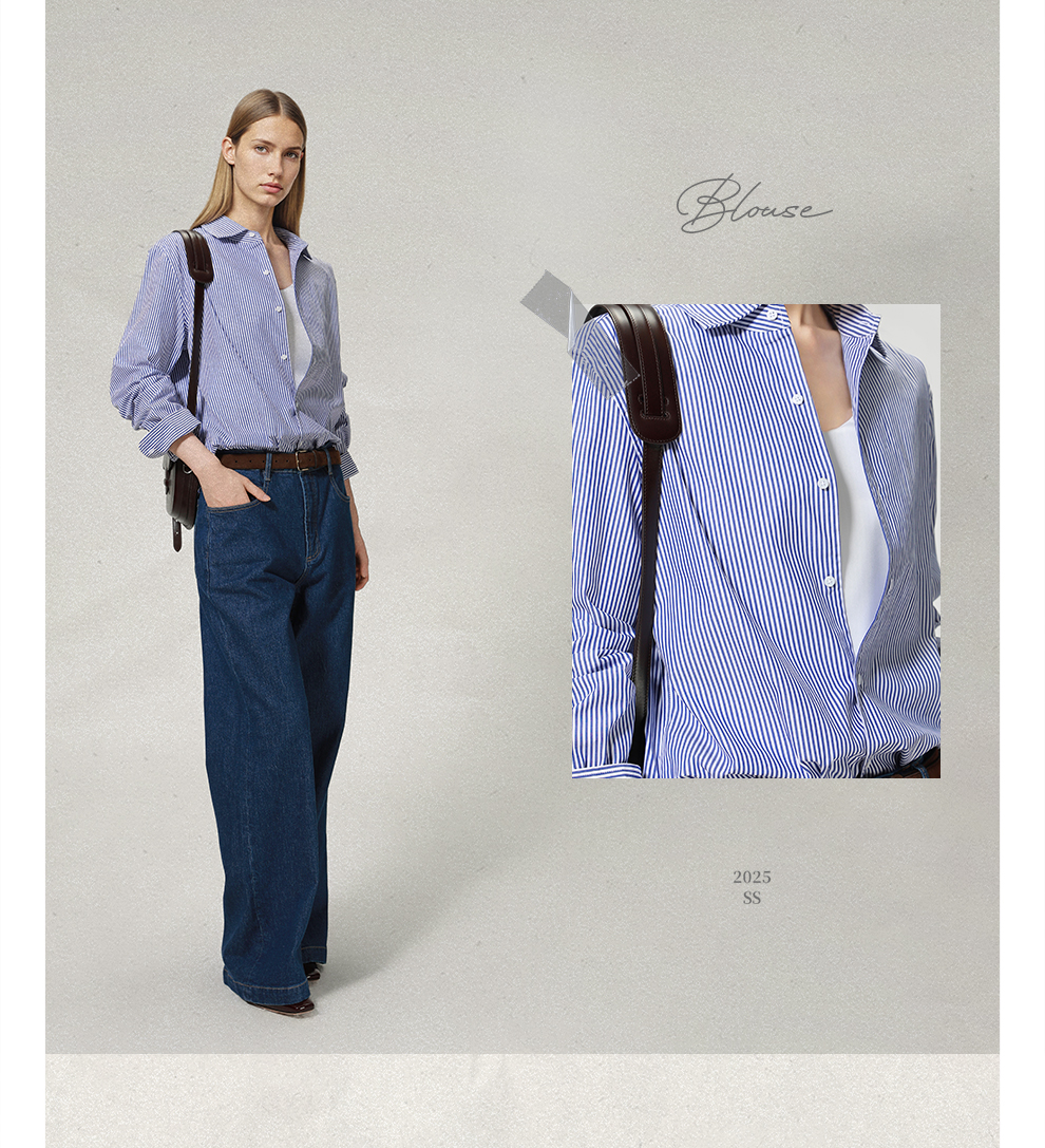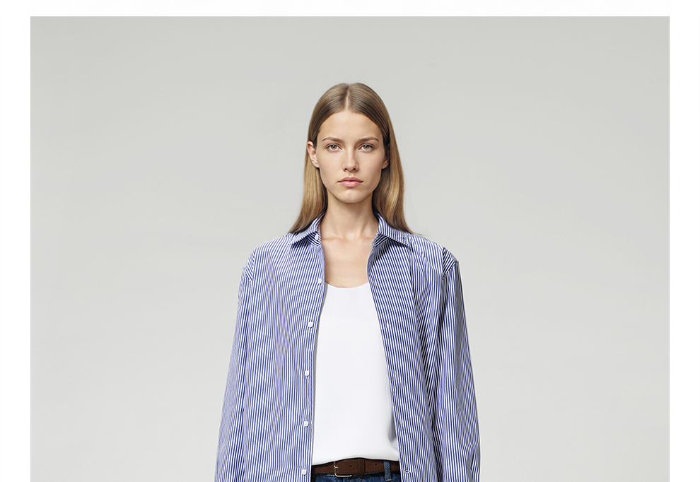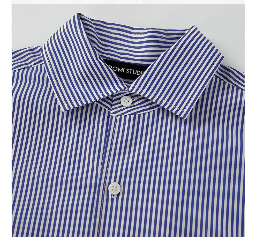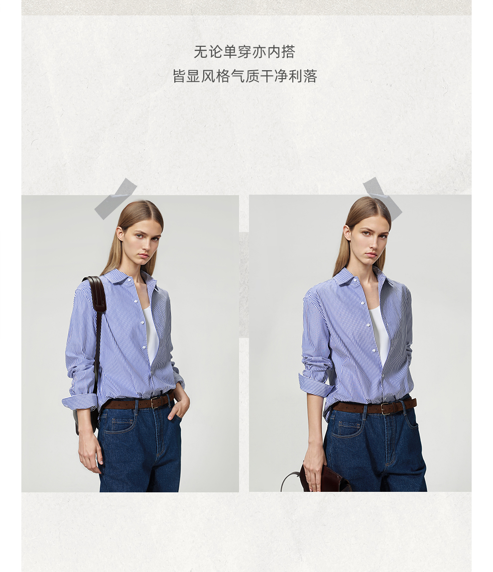 ROMI STUDIO“松弛随性”100%高支斜纹棉宽松条纹衬衫 RW24ASH0846