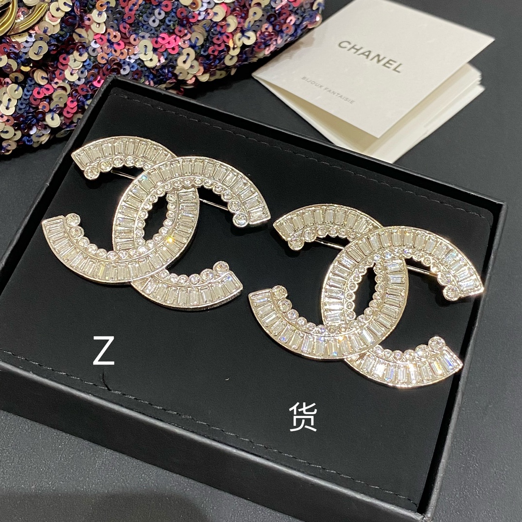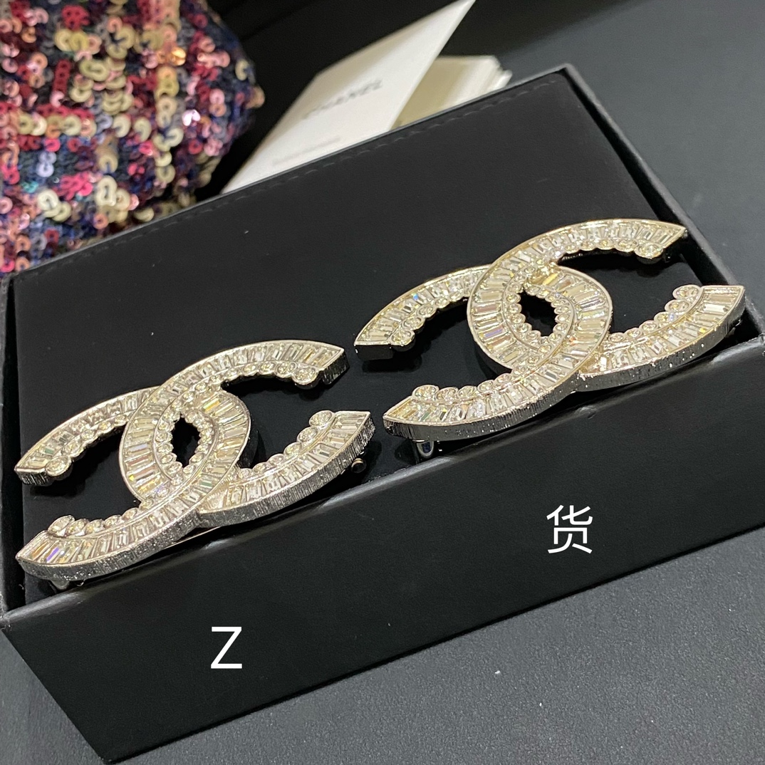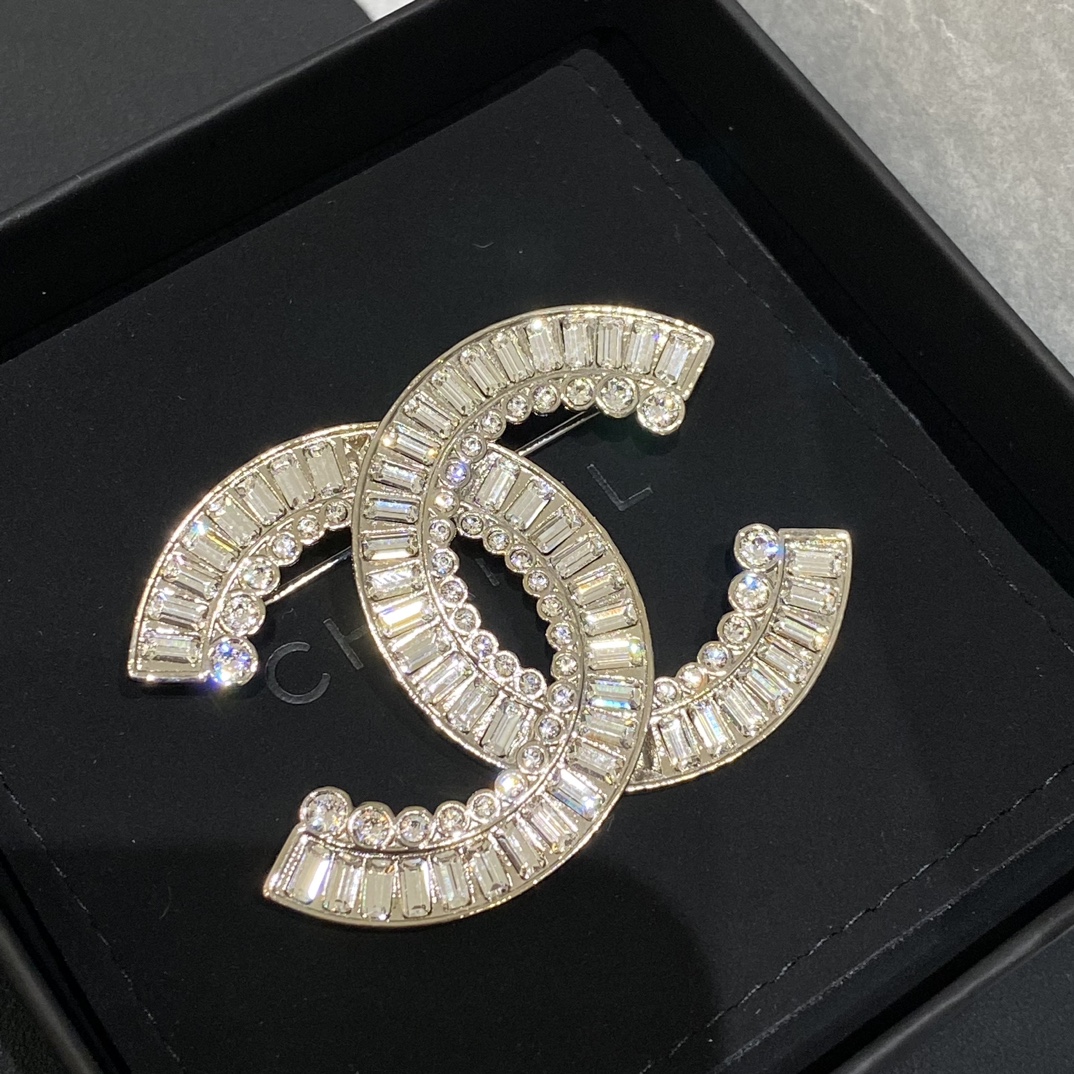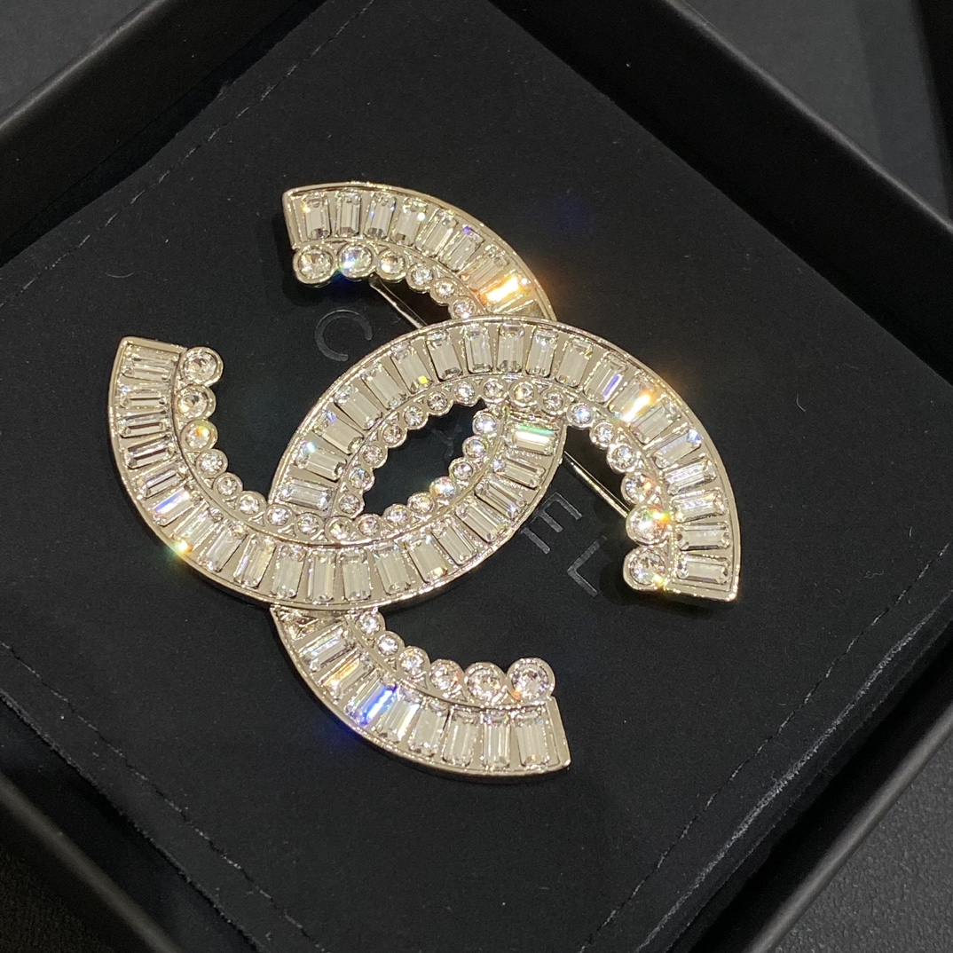 Cha*l 小香 23S长方钻圆钻银色胸针