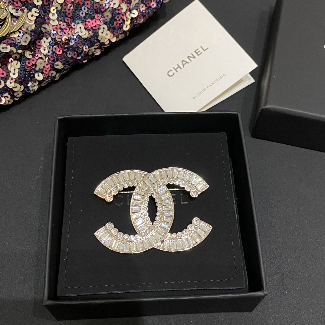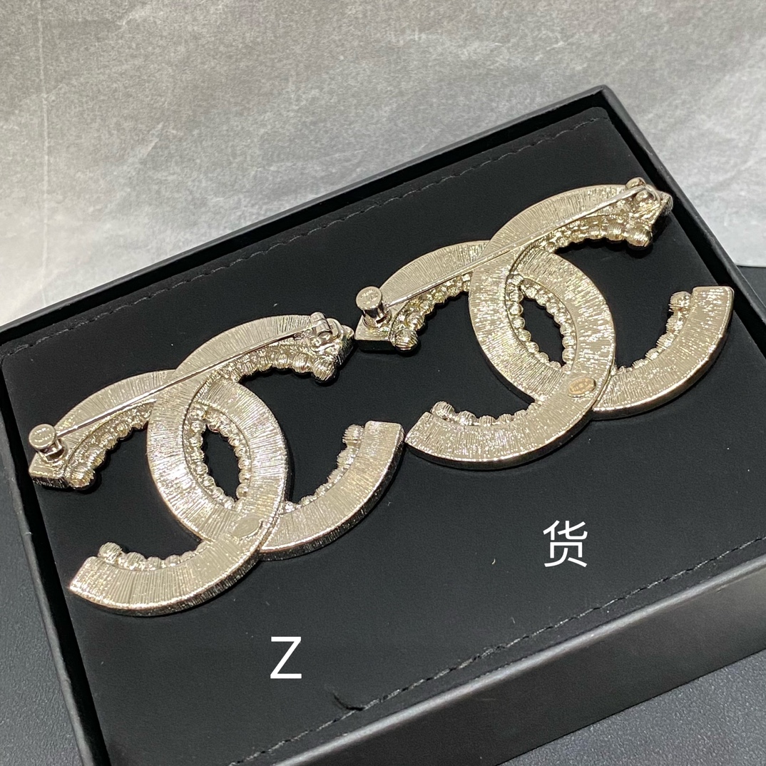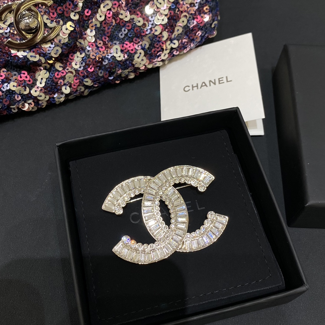 Cha*l 小香 23S长方钻圆钻银色胸针
