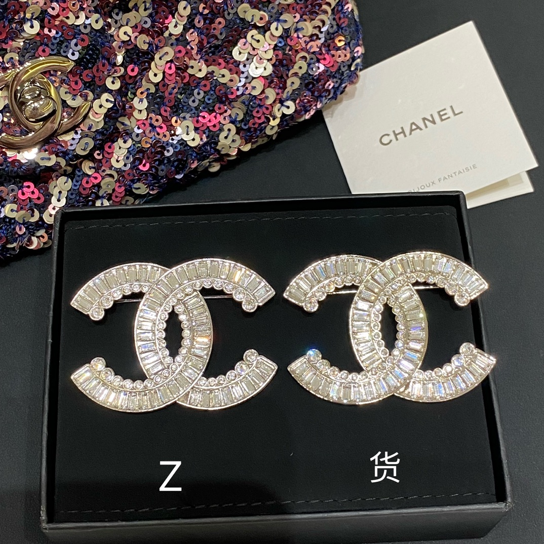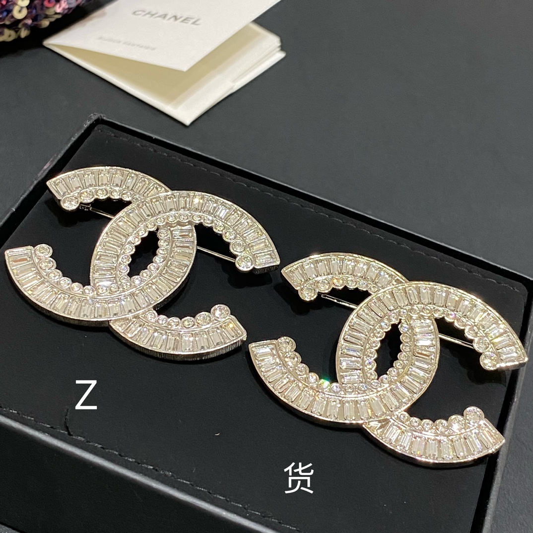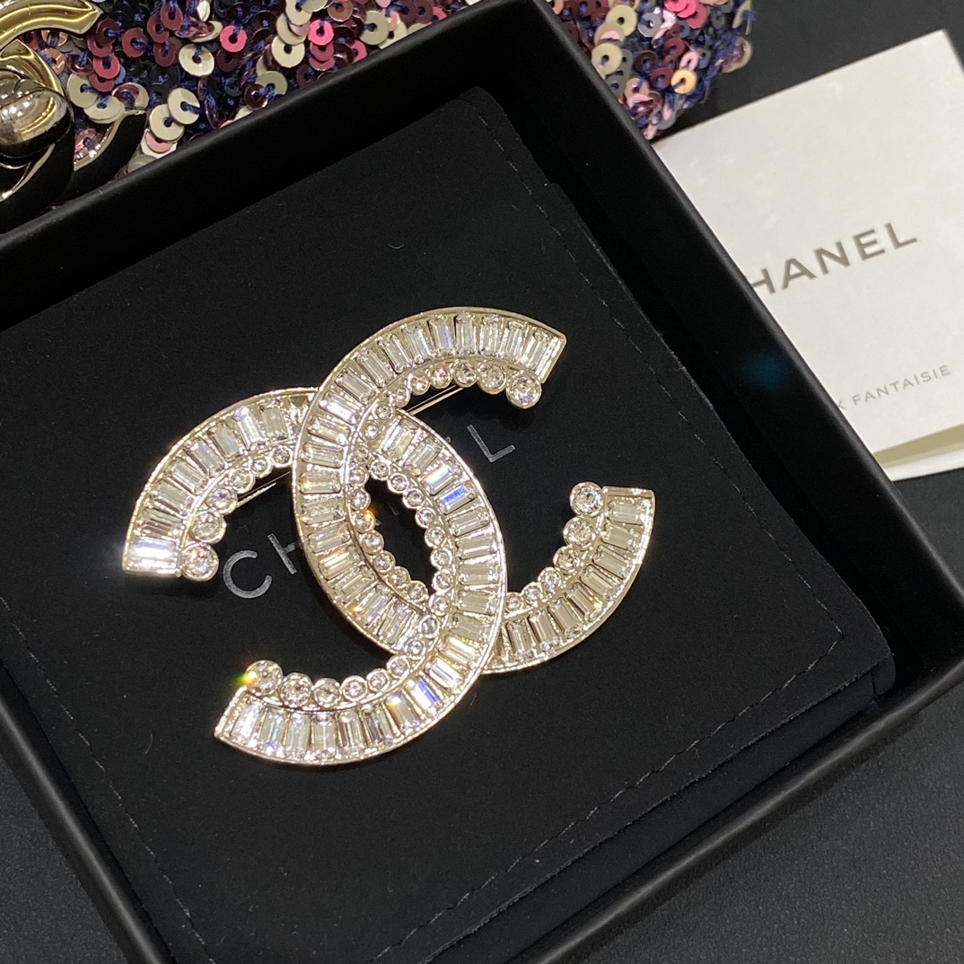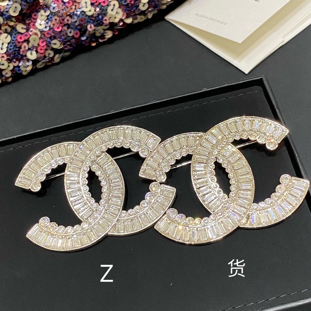 Cha*l 小香 23S长方钻圆钻银色胸针