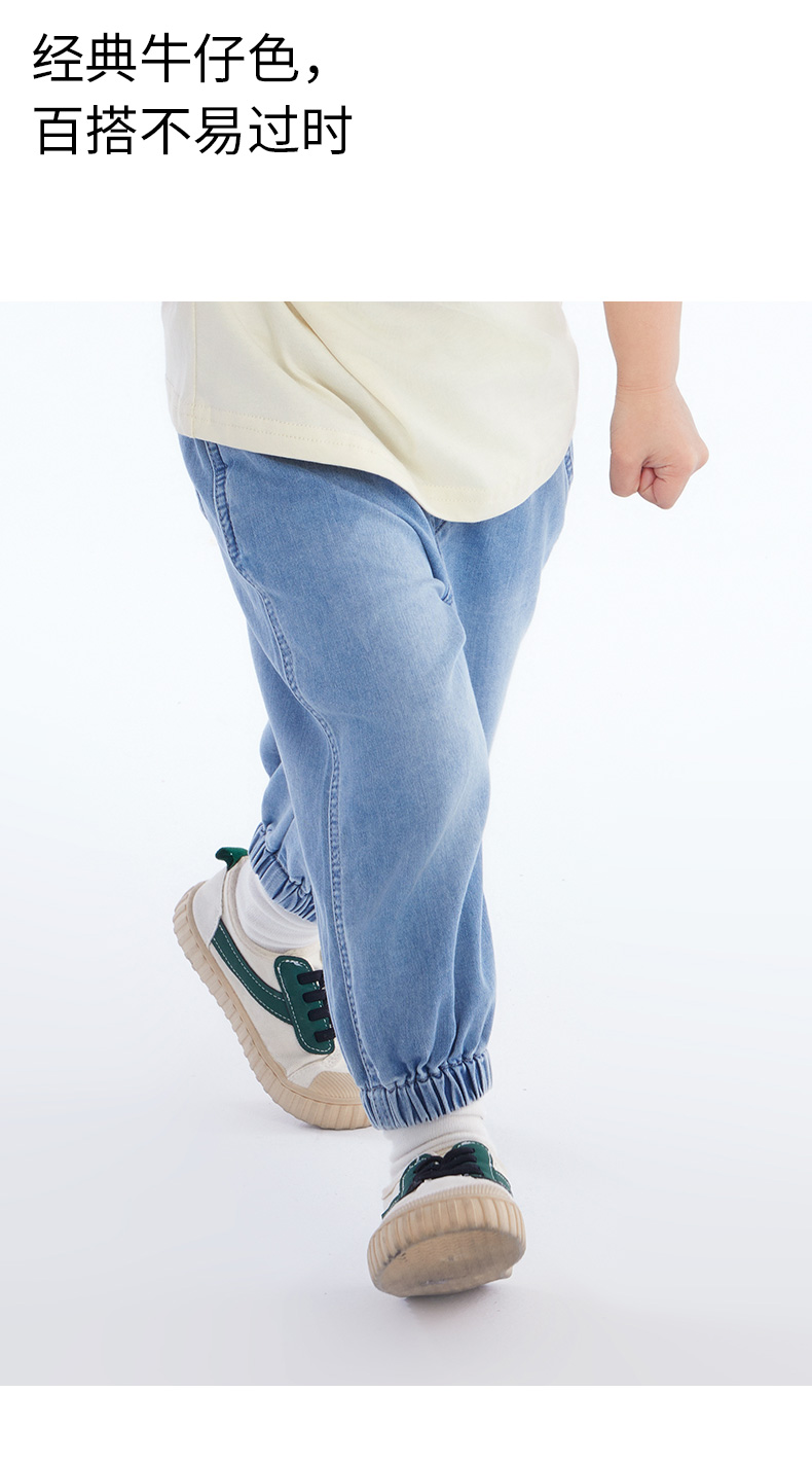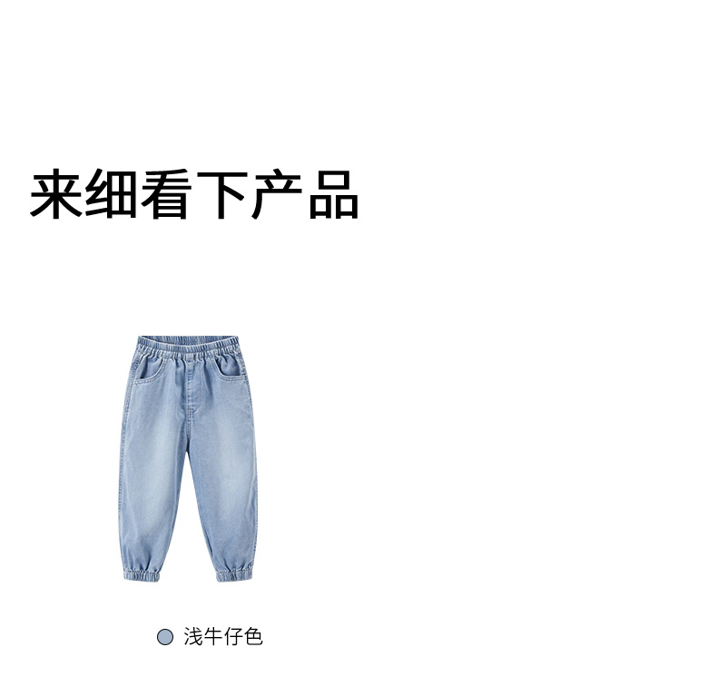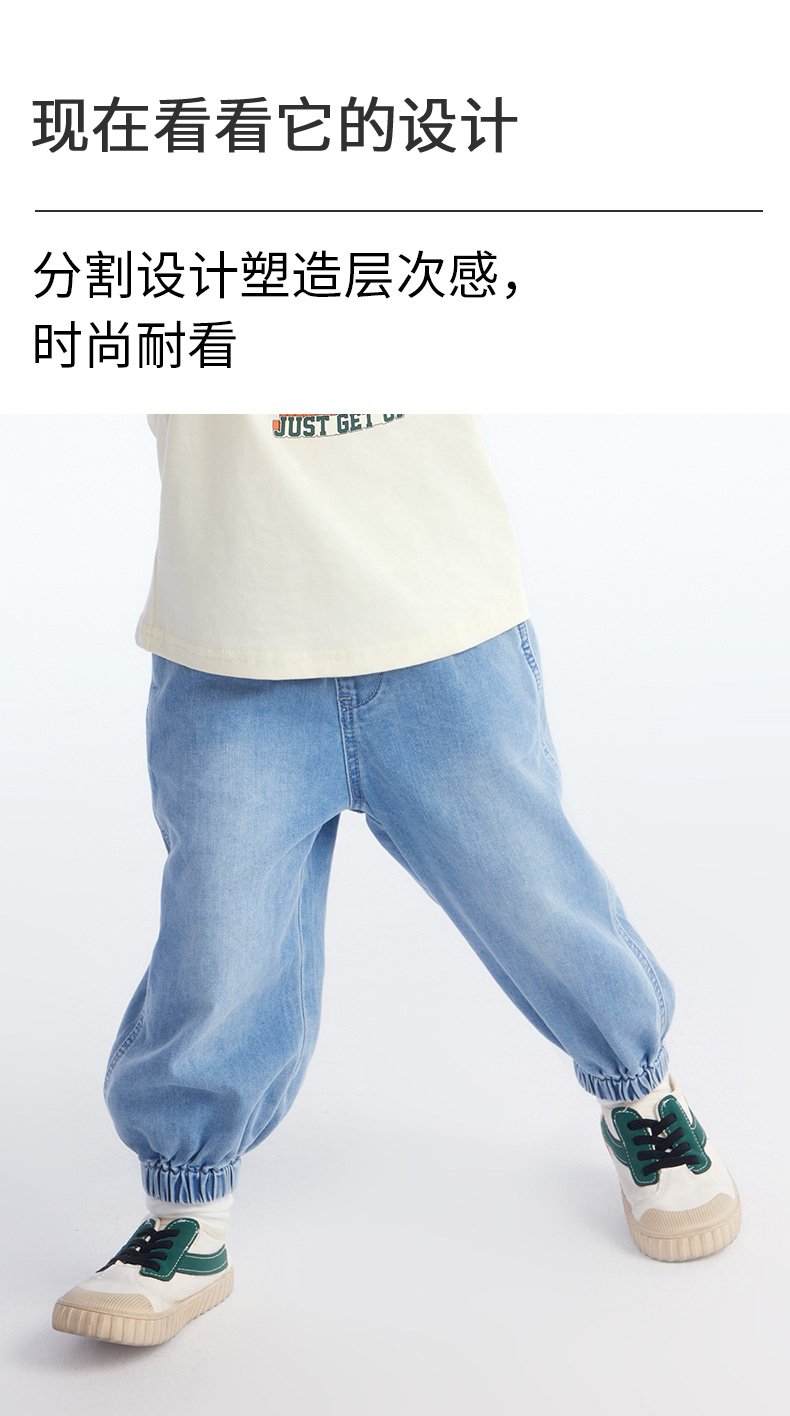 【长裤】小童柔软舒适结构分割宽松束脚牛仔裤 裤子宽松日系牛仔色 1N2334602