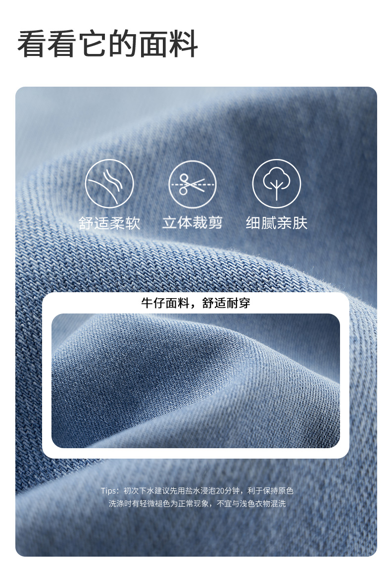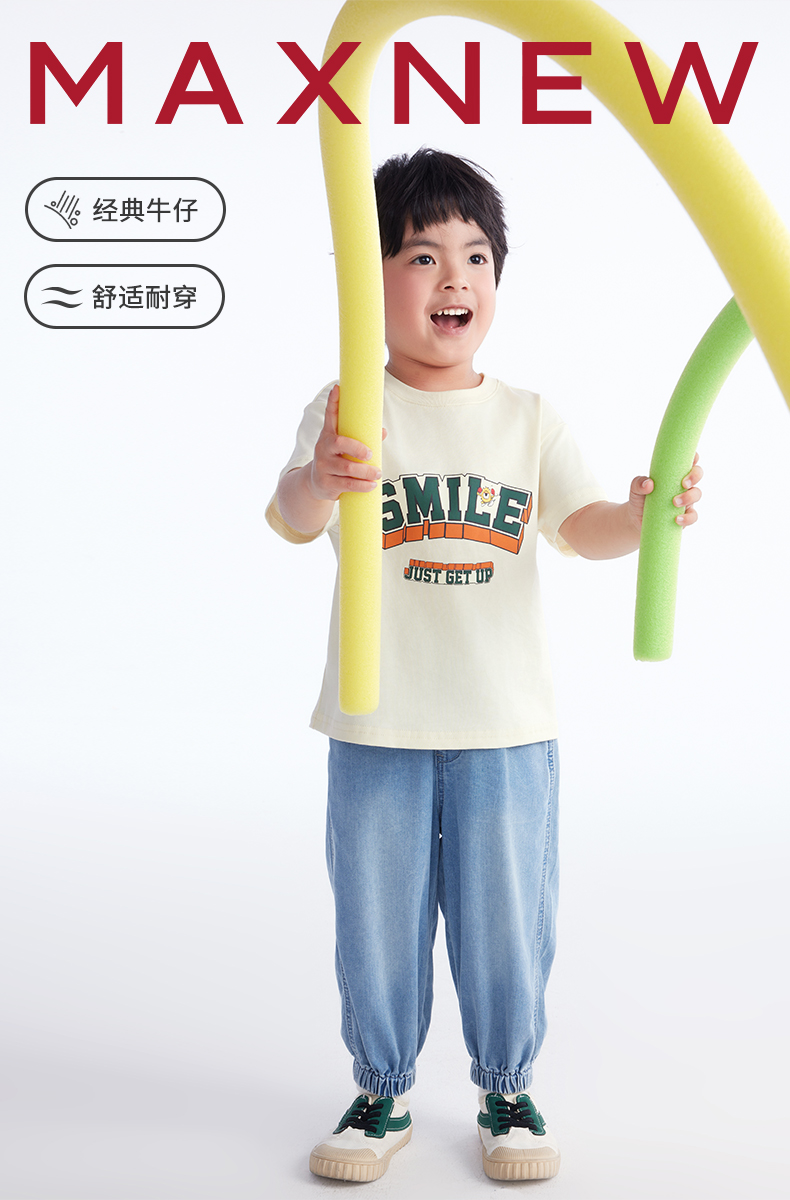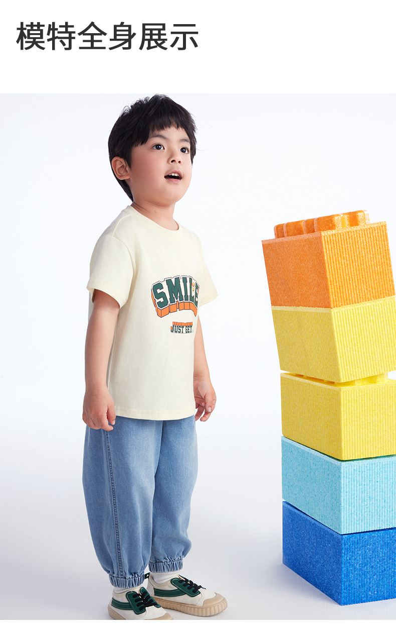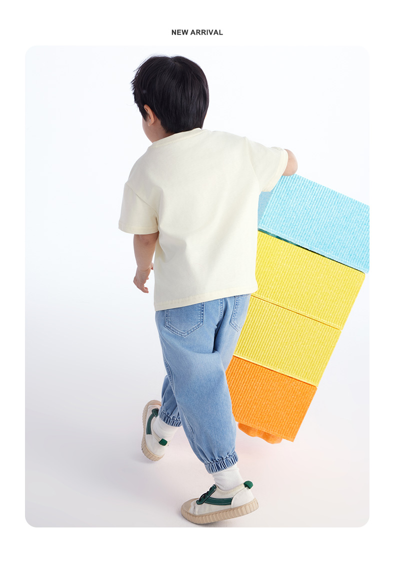 【长裤】小童柔软舒适结构分割宽松束脚牛仔裤 裤子宽松日系牛仔色 1N2334602