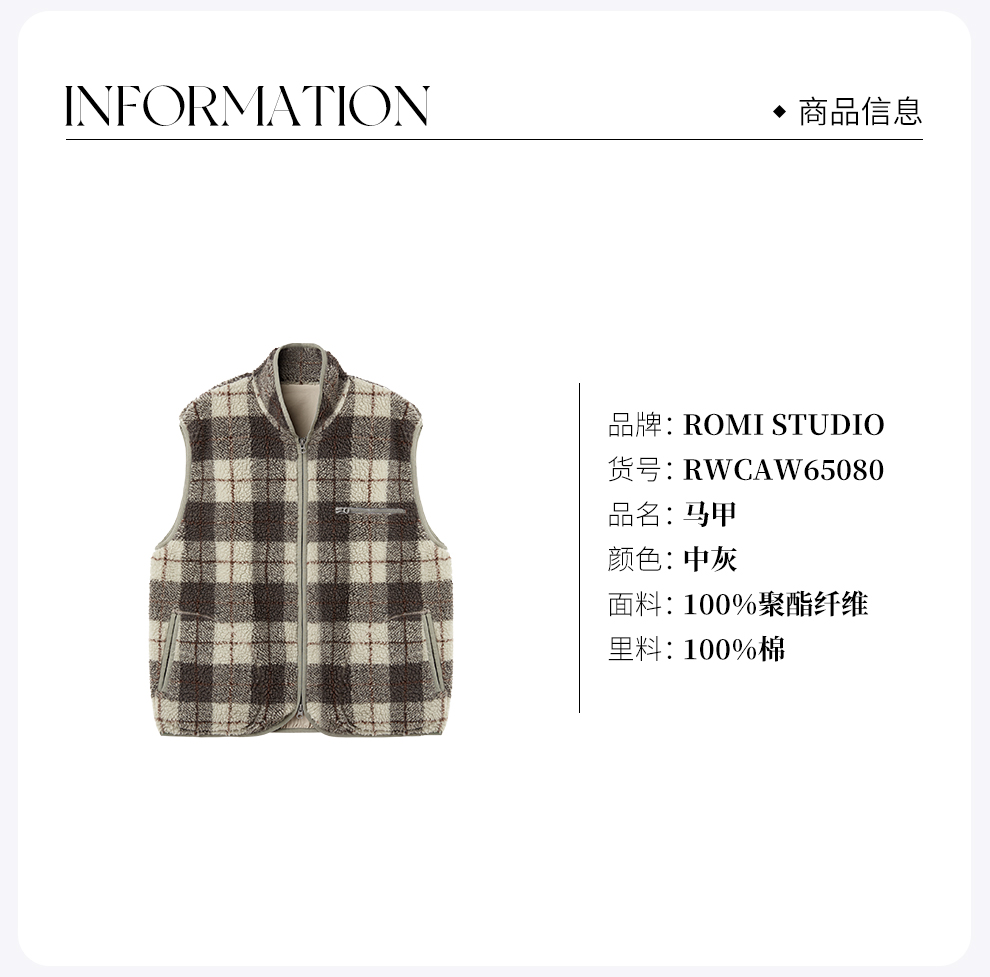 ROMI STUDIO“复古时髦”秋冬百搭格纹羊羔绒马甲背心RWCAW65080