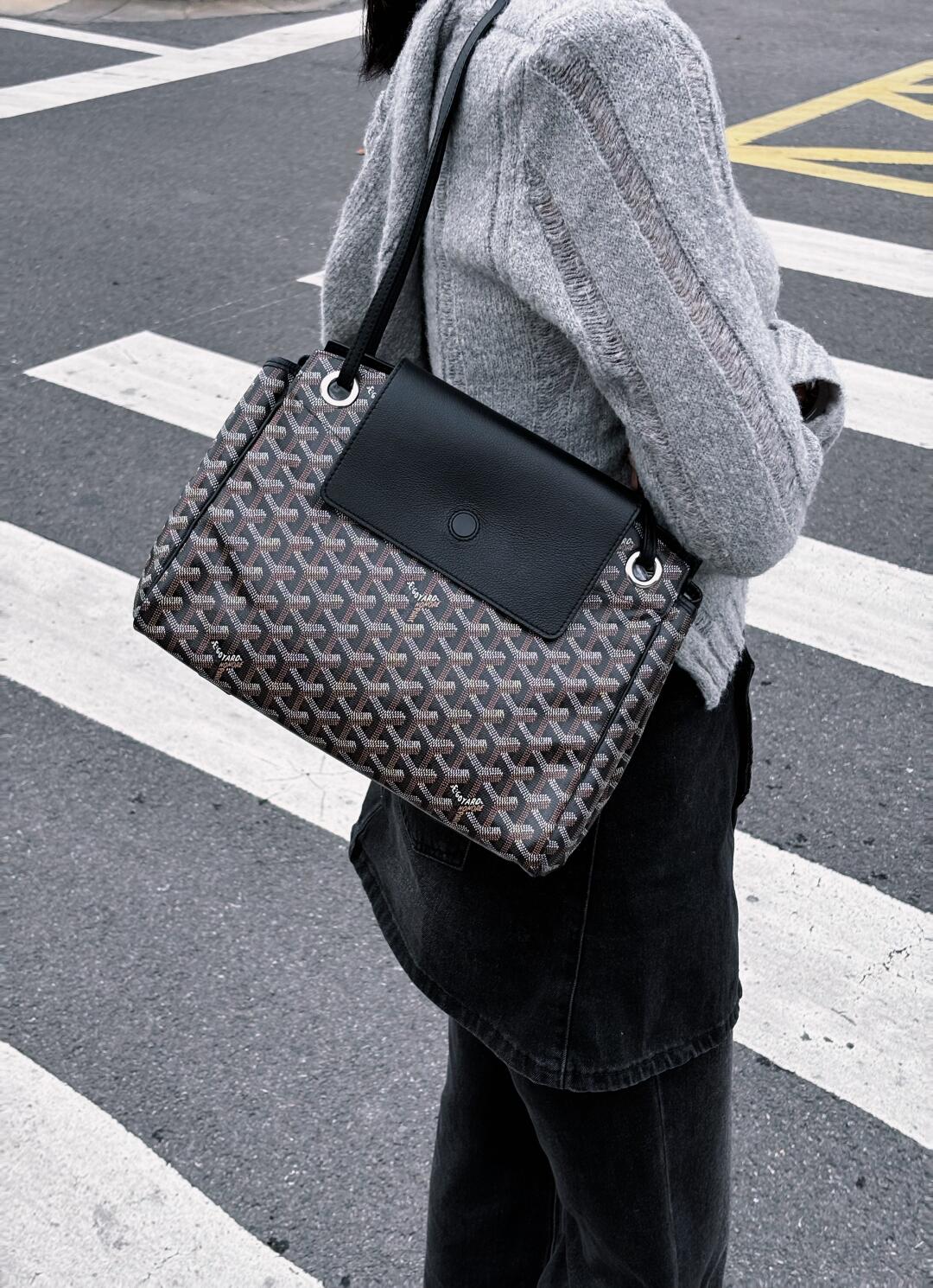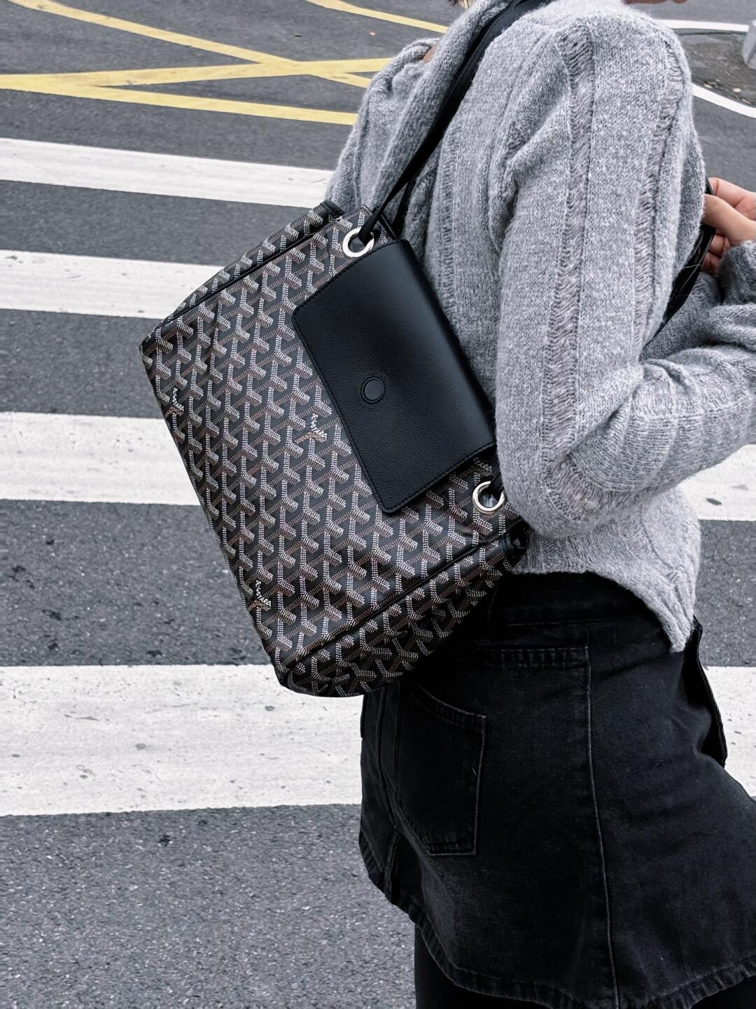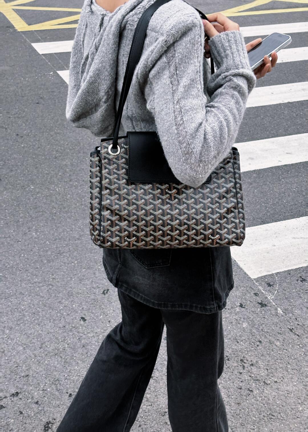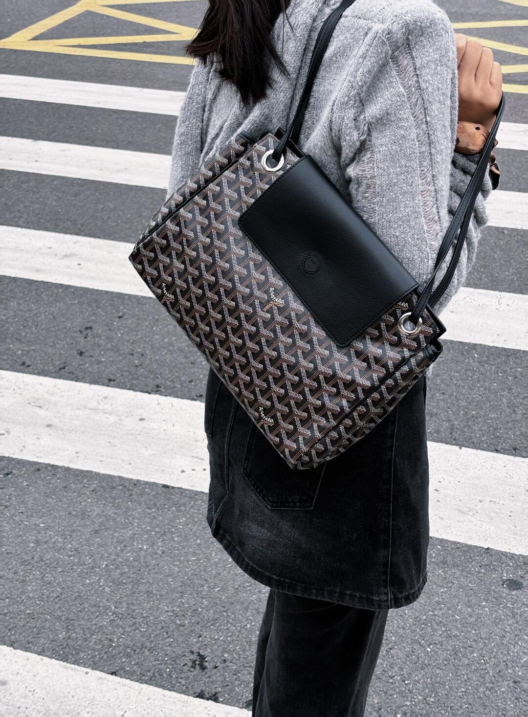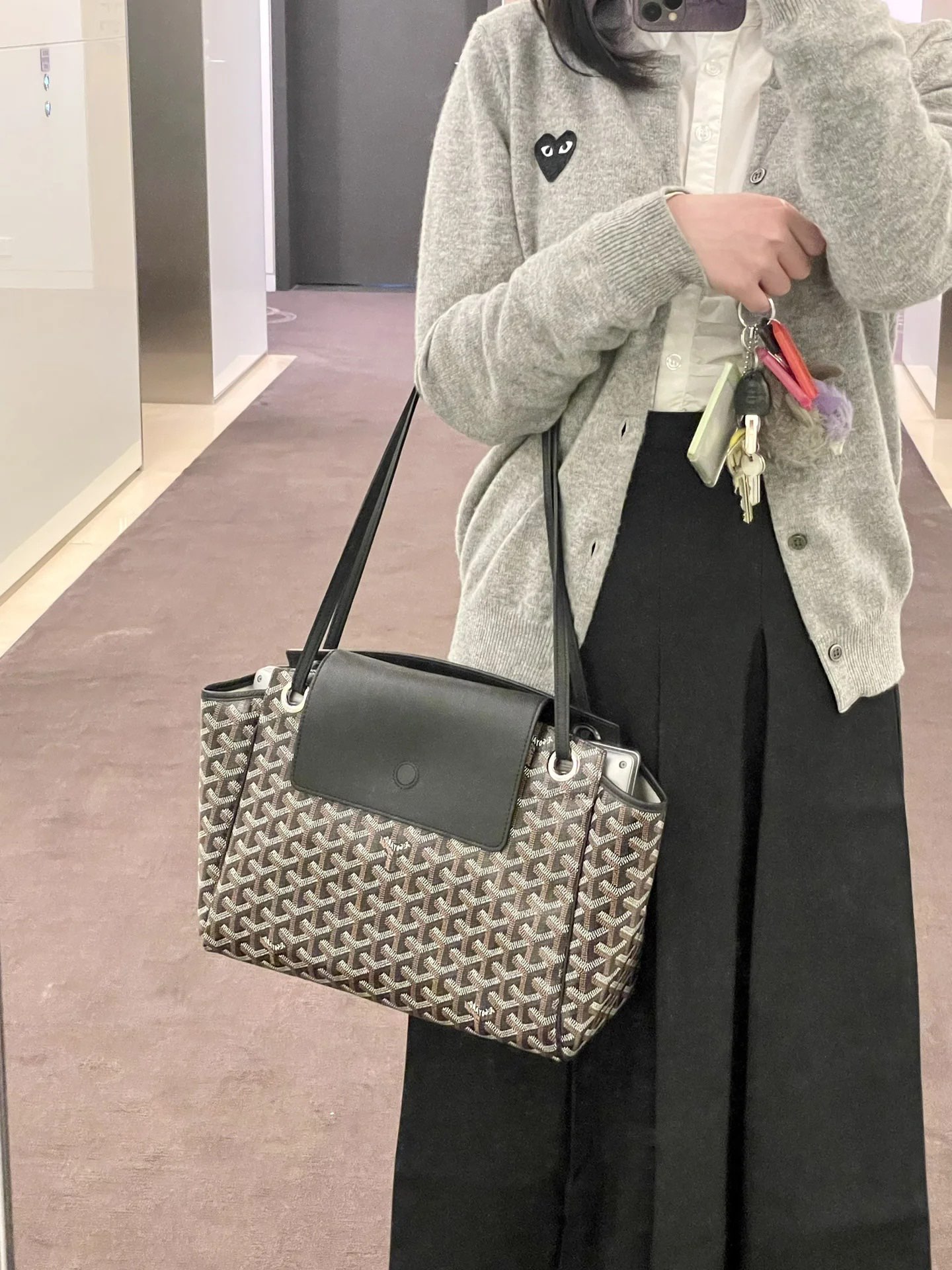 Rouette出货,目前我们手上可供选择的购物袋款型现货有三款:有至经典又轻巧柔软的saint Louis tote,有迎合国人喜好的袋口有拉链包身相对硬挺的Artois购物袋。还有这款刚刚出货的 Goyard Rouette.