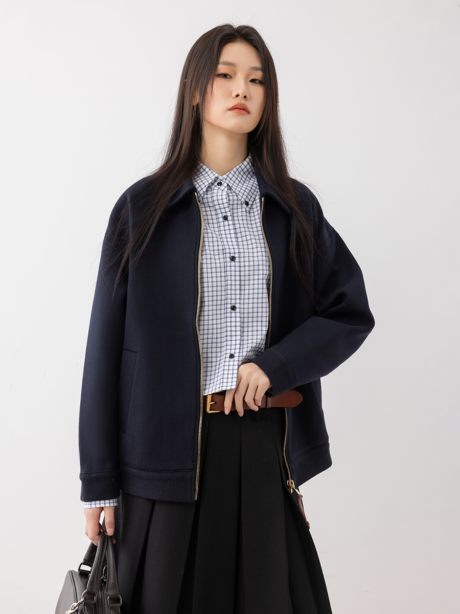 COCO ZONE 秋款字母设计感翻领外套纯色长袖上衣CC1C1834