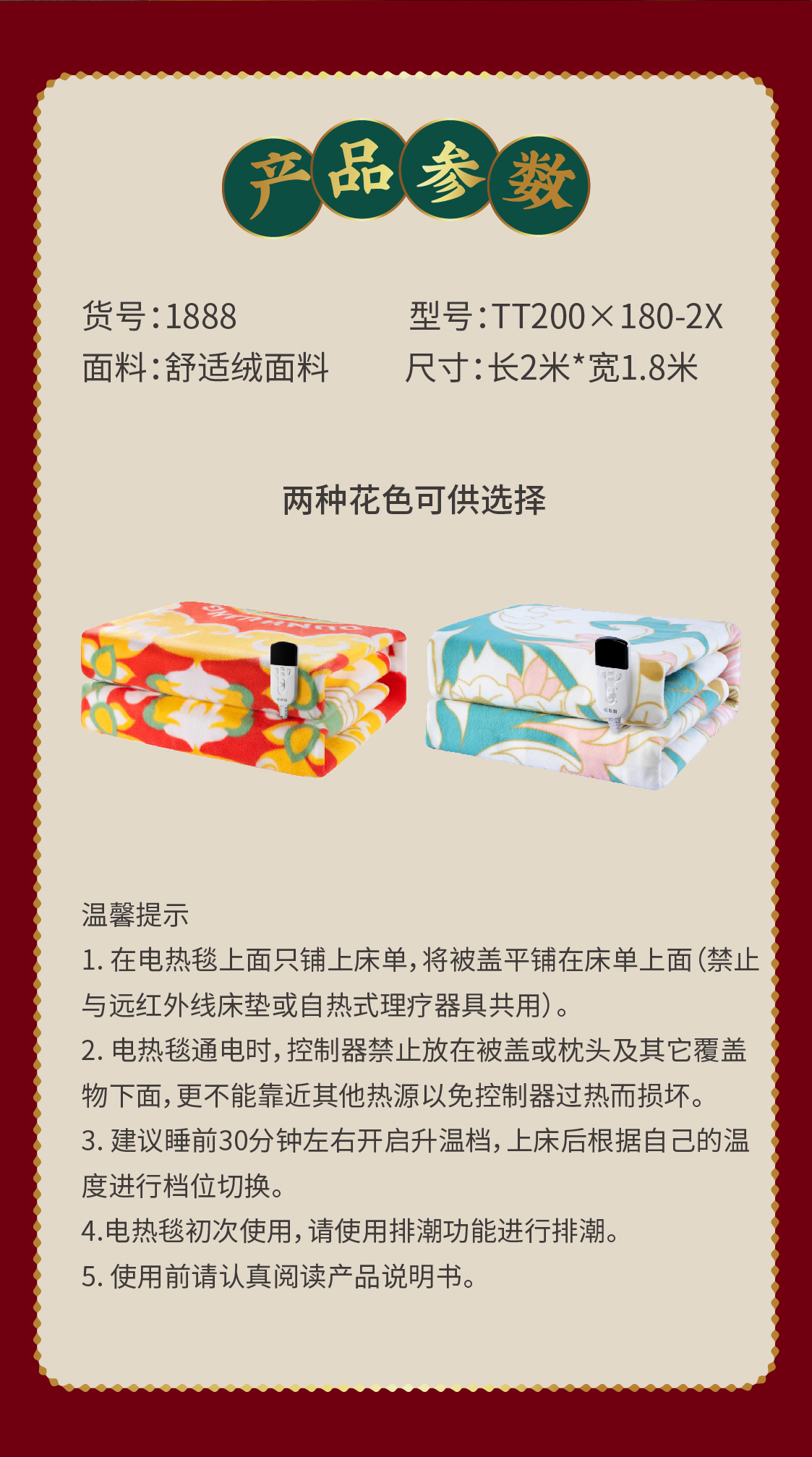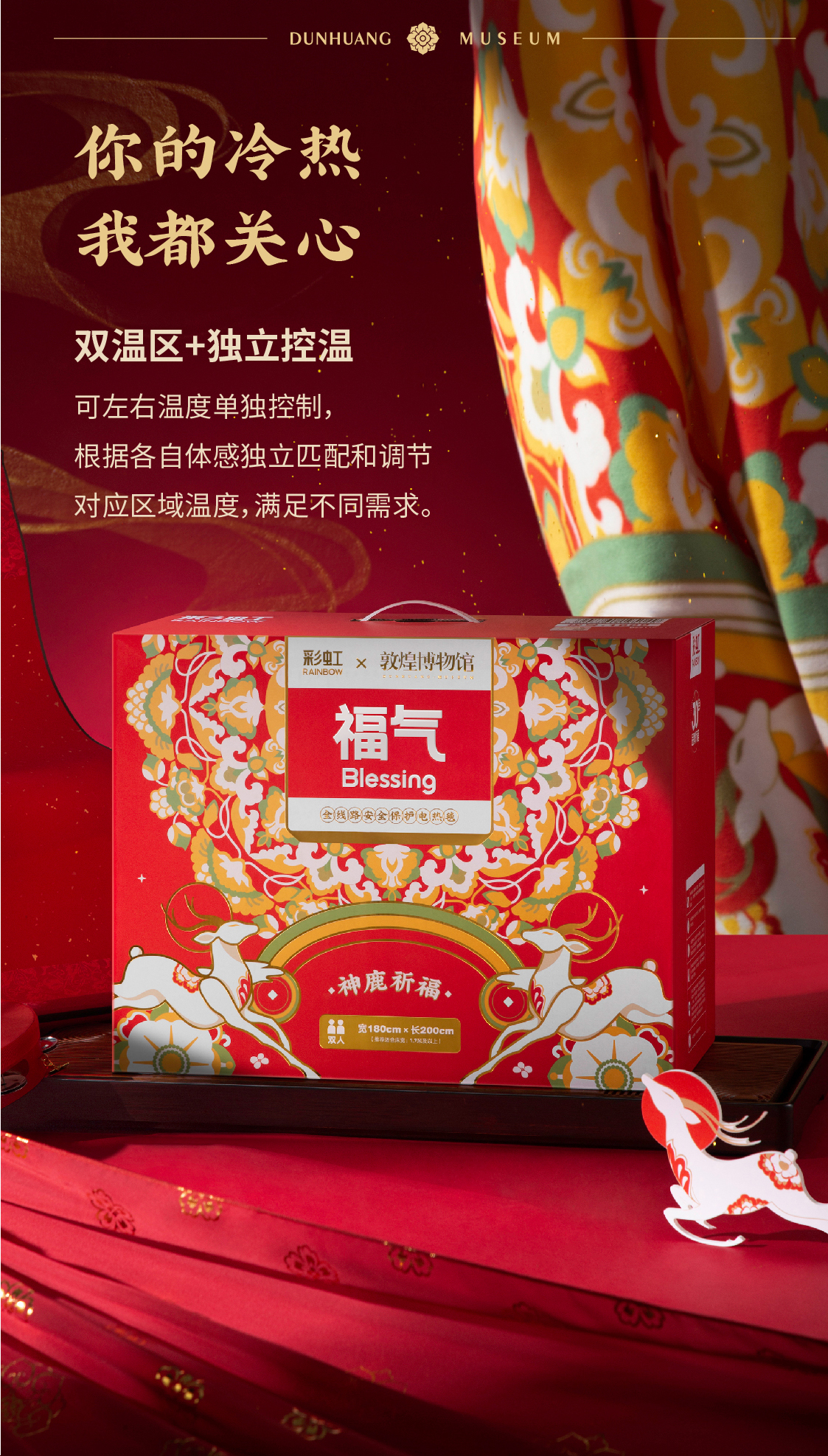 【Rainbow】彩虹(长2.0*宽1.8米)双控双温电热毯(敦煌联名宽幅款)1888【花色随机】