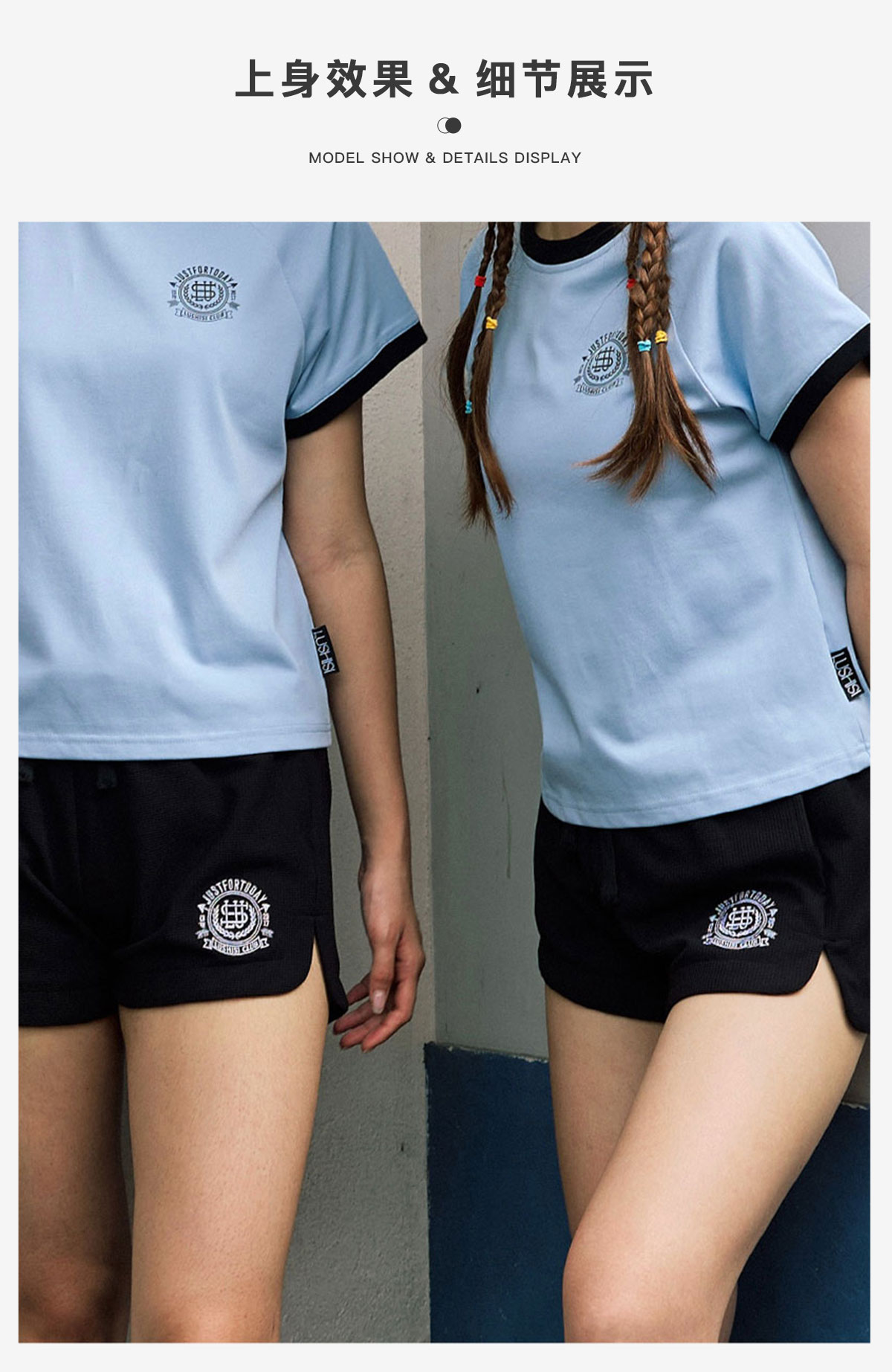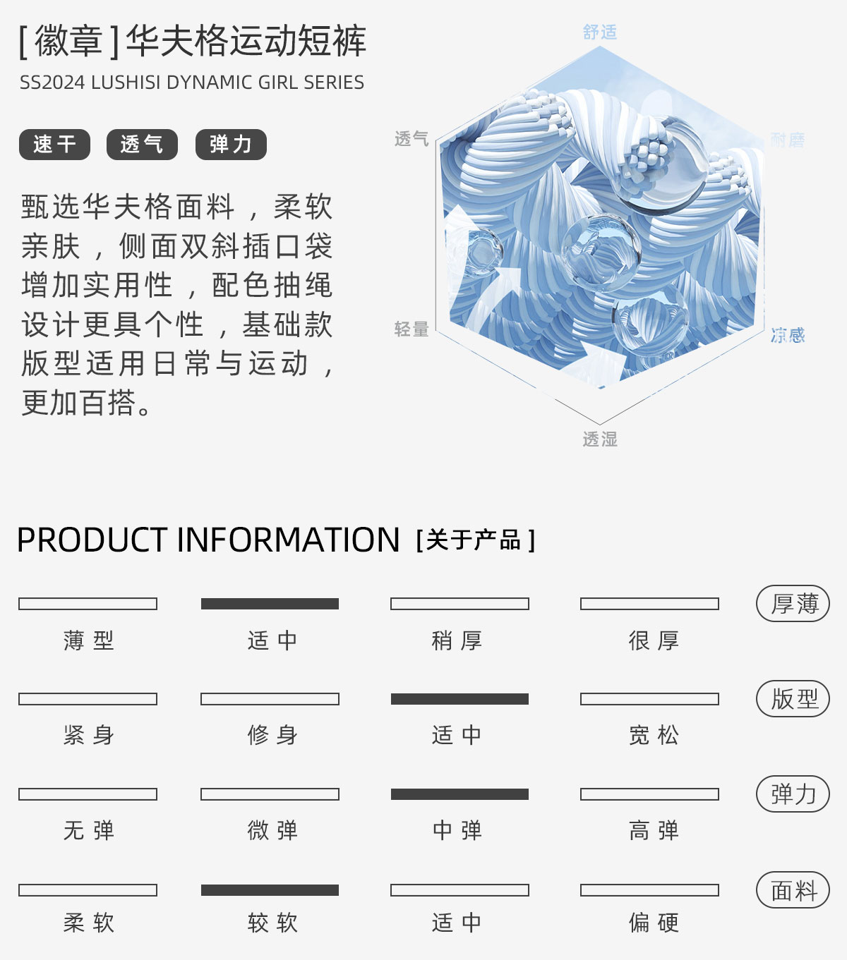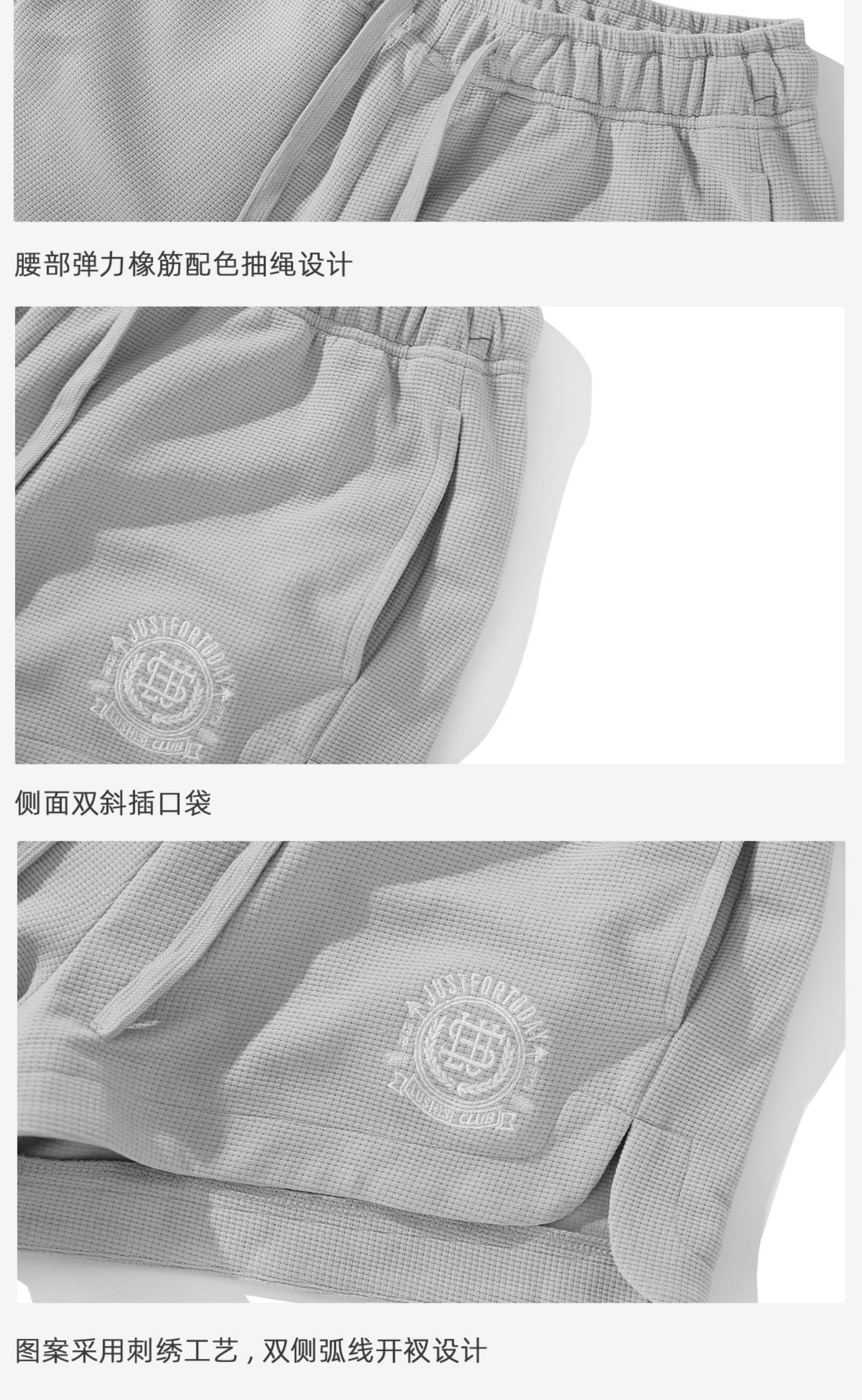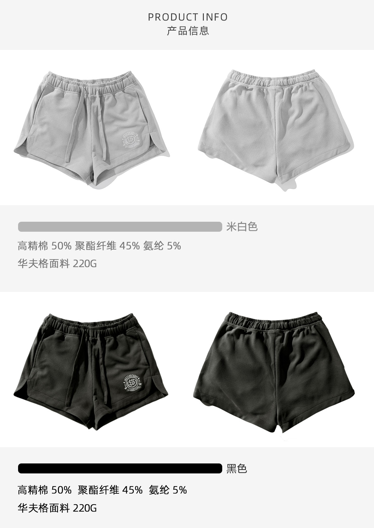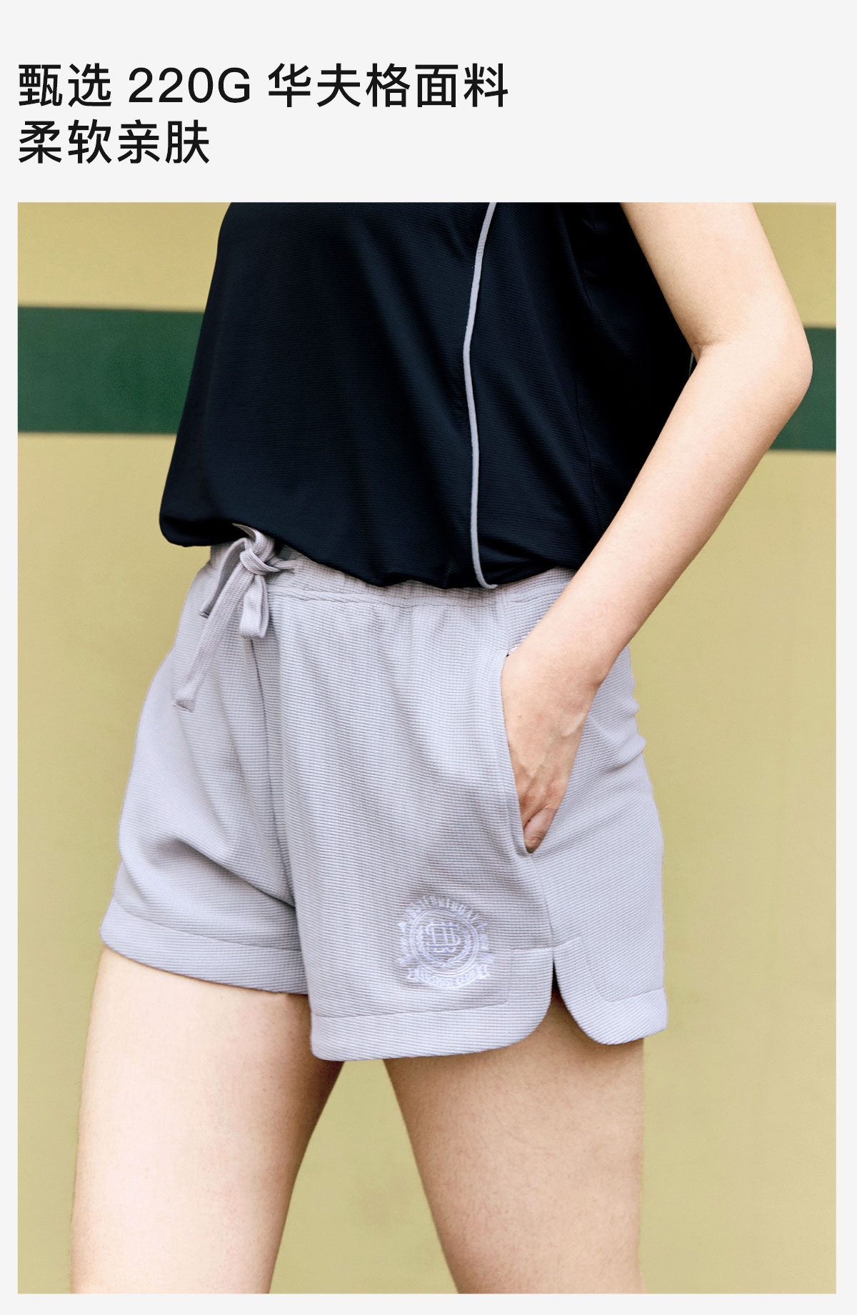 LUSHISI[徽章]女子运动短裤透气不过膝三四分美式街头华夫格裤子