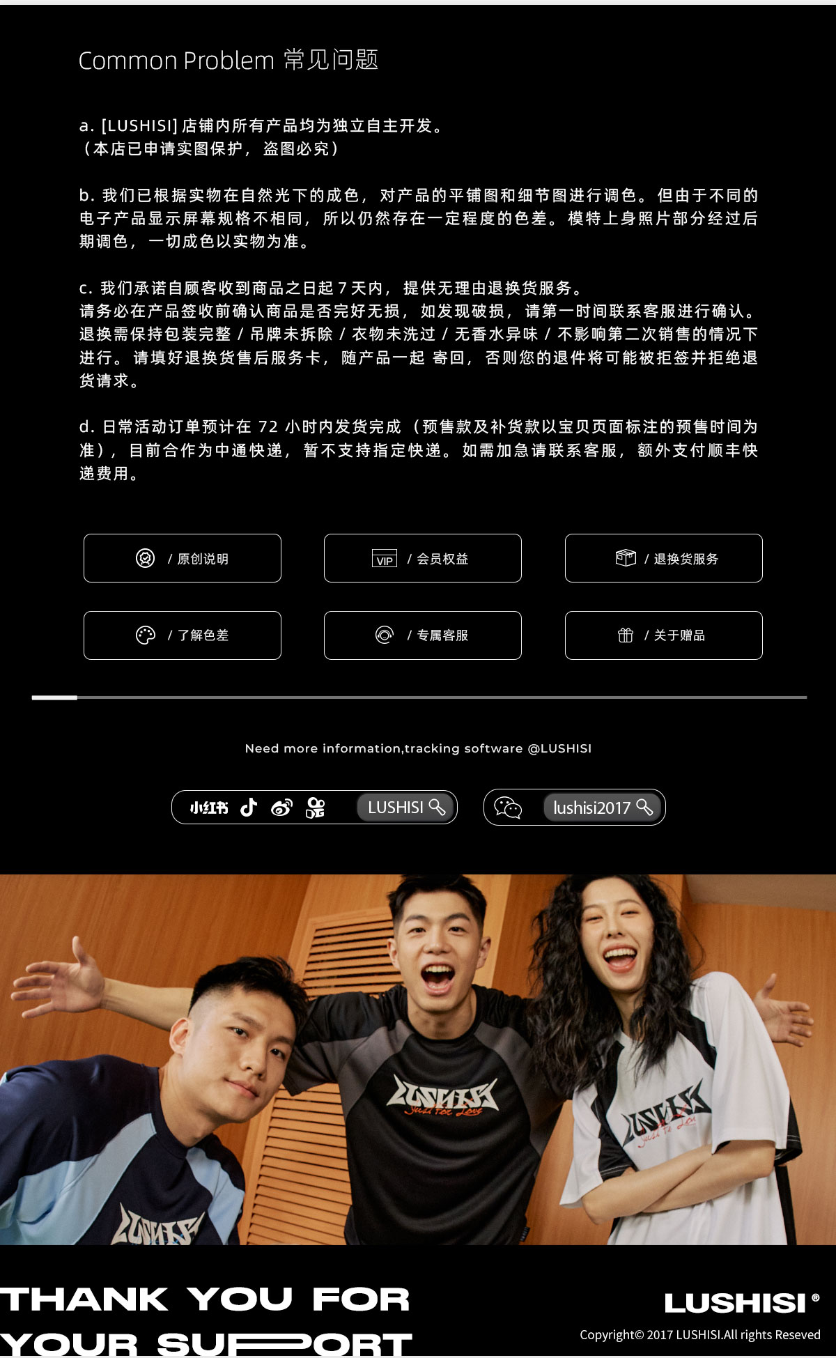 LUSHISI积分兑换自选长袖 自选码数!备注款式