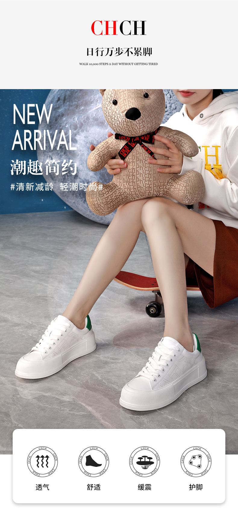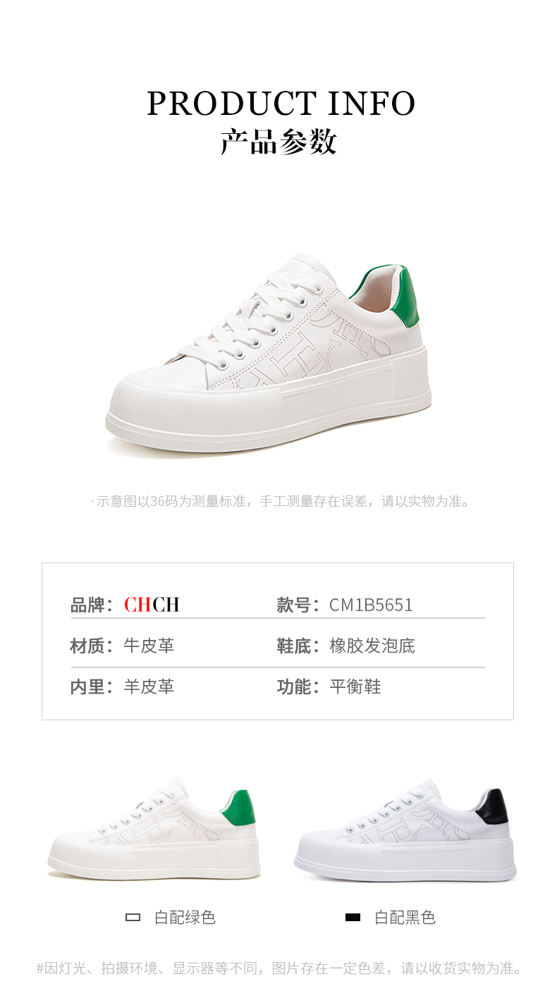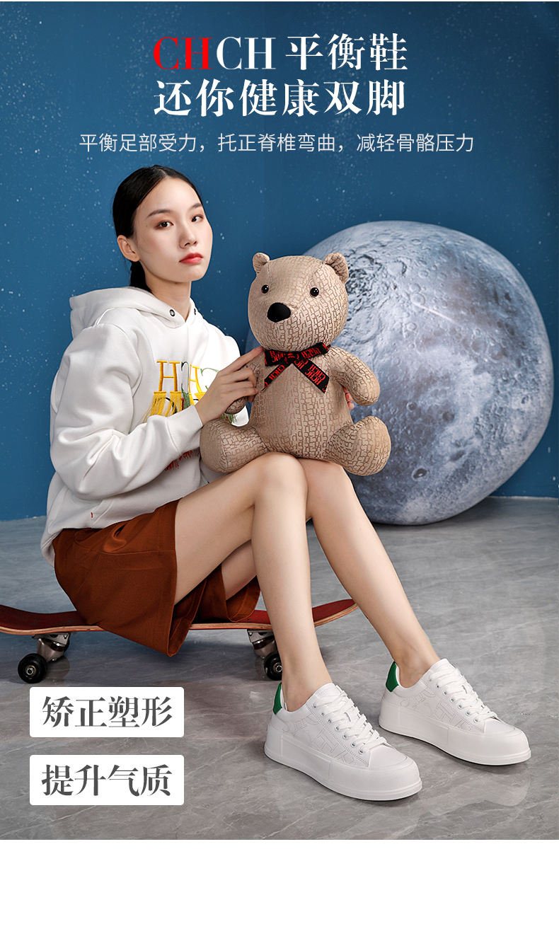 CHCH平衡鞋女鞋时尚轻便厚底增高百搭运动休闲板鞋小白鞋CN1B50H1