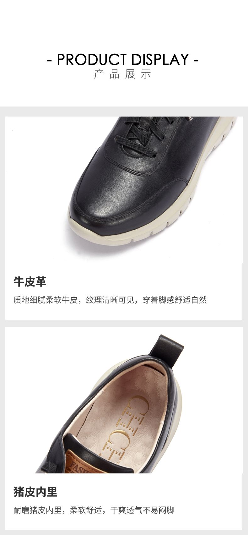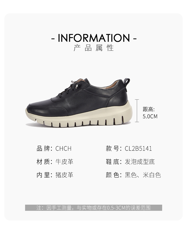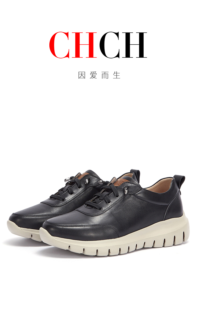 CHCH平衡鞋2025秋冬新款牛皮平跟圆头系带深口休闲单鞋女鞋CP2B5021