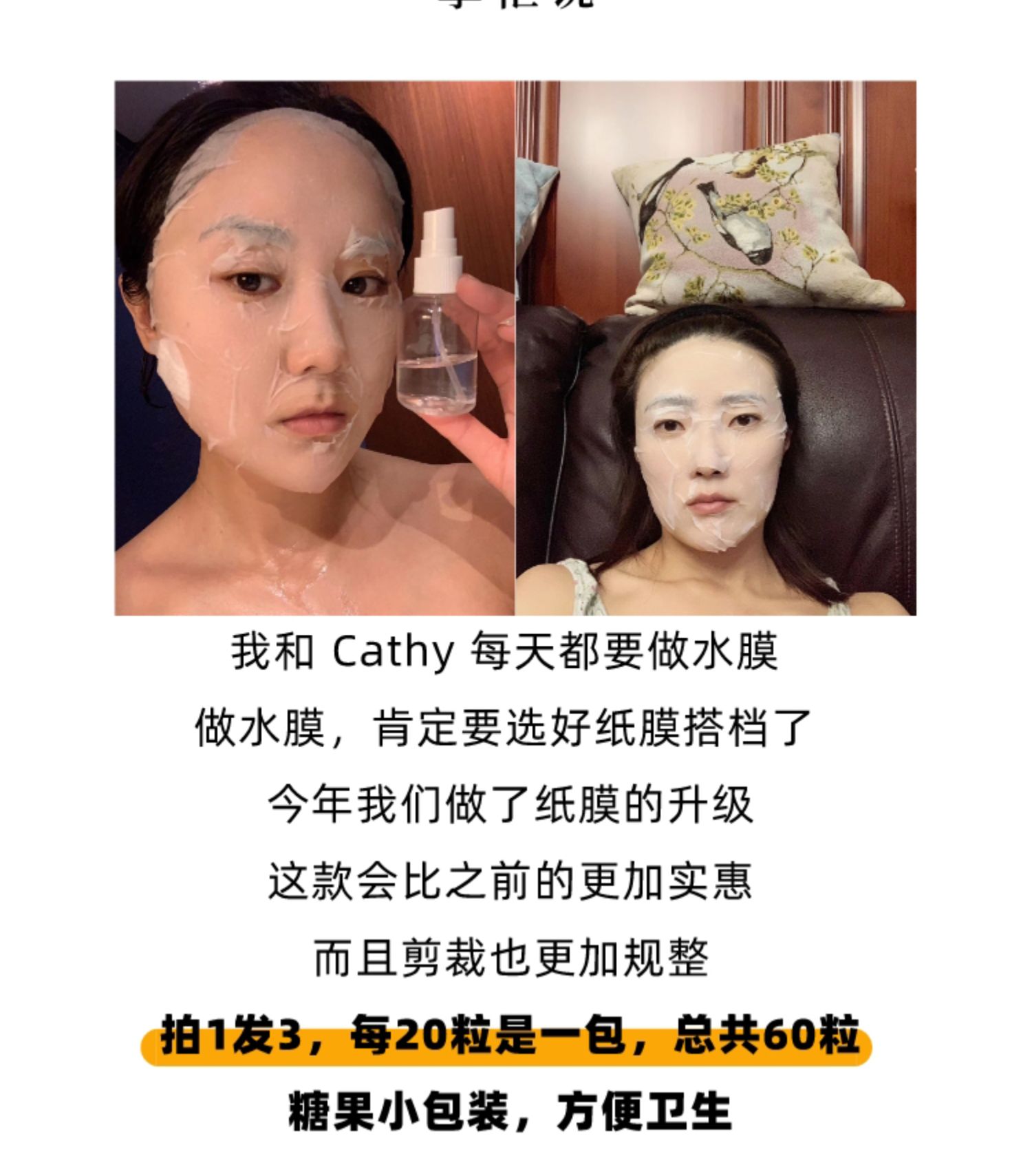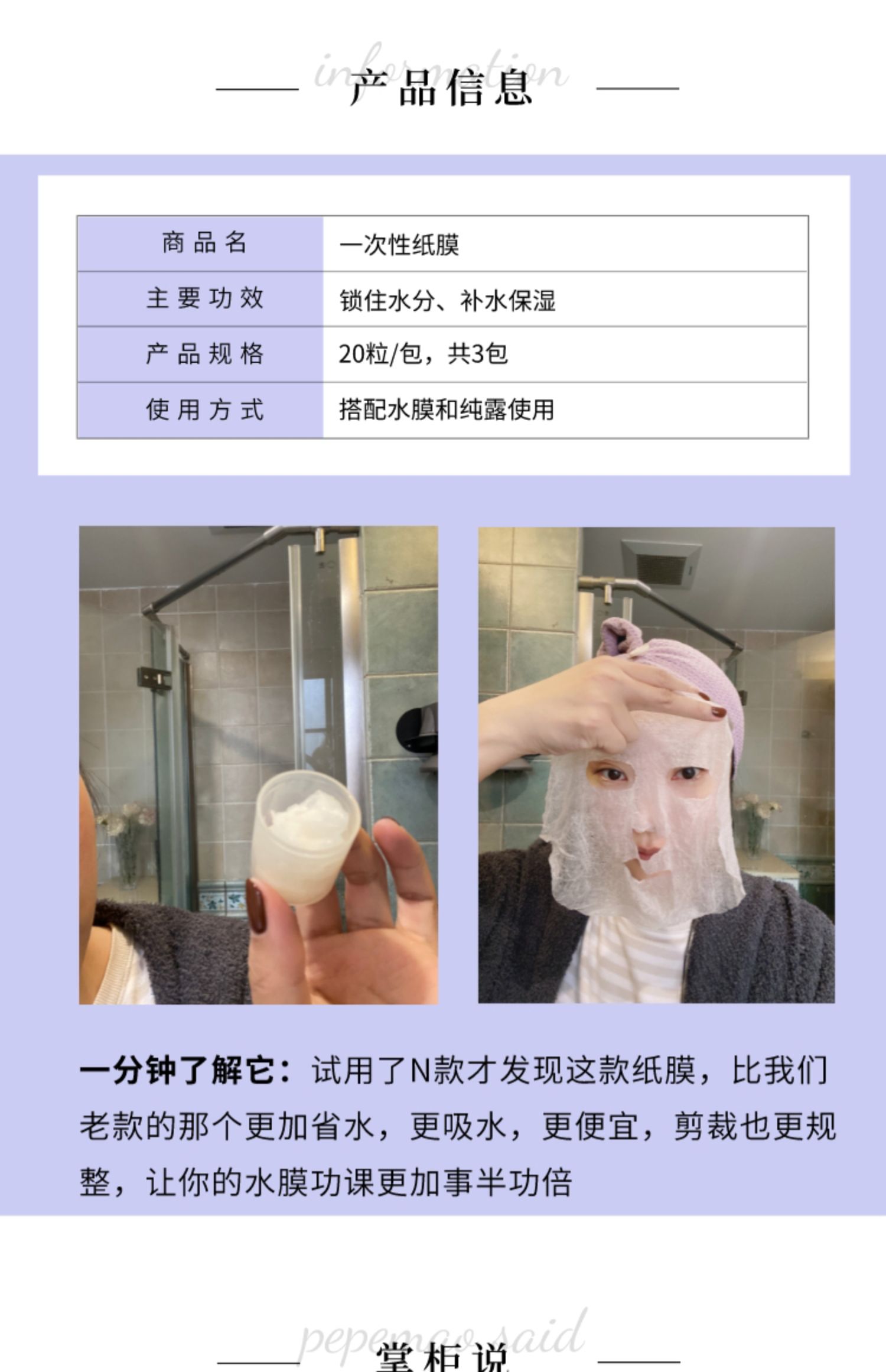 pepe猫贝心柔纸膜压缩面膜纸无荧光省水贴肤超薄 20粒*3包装