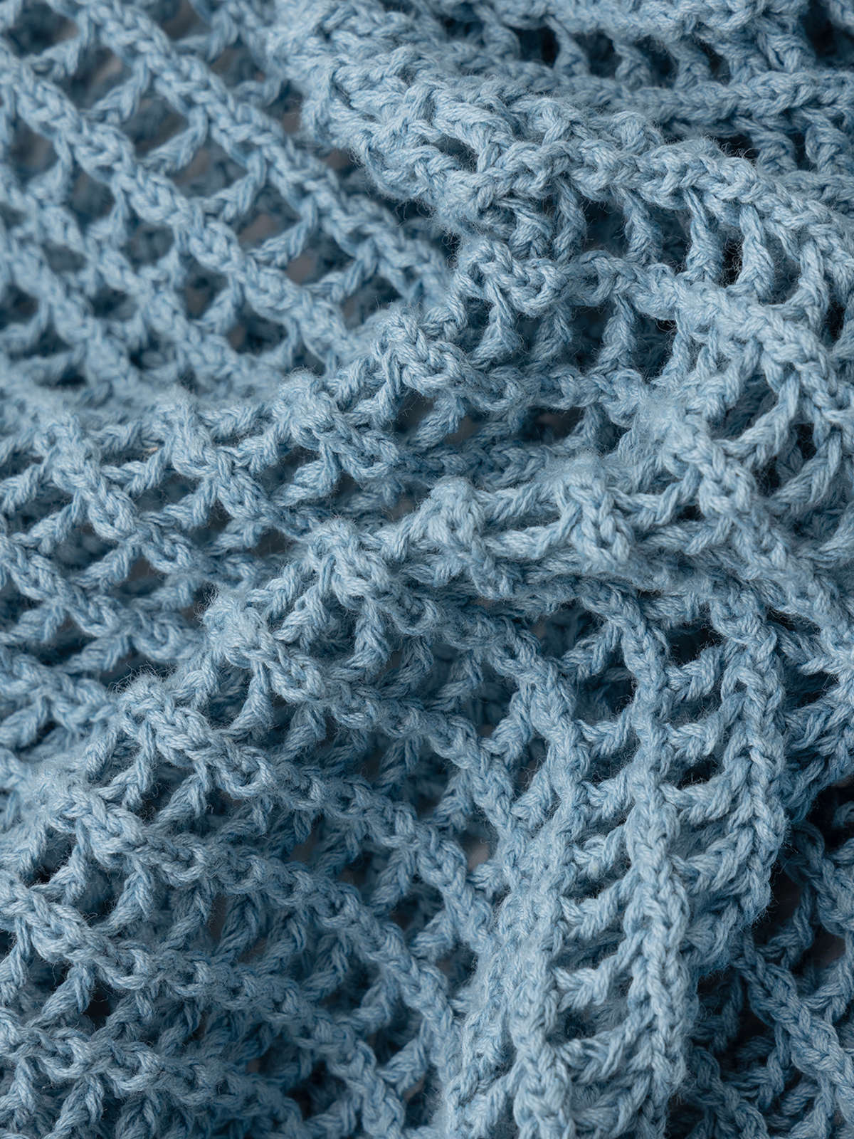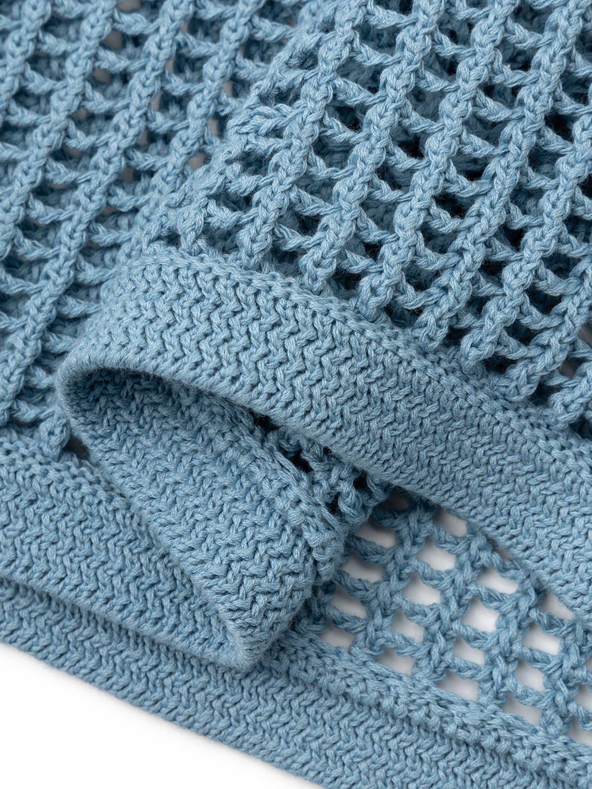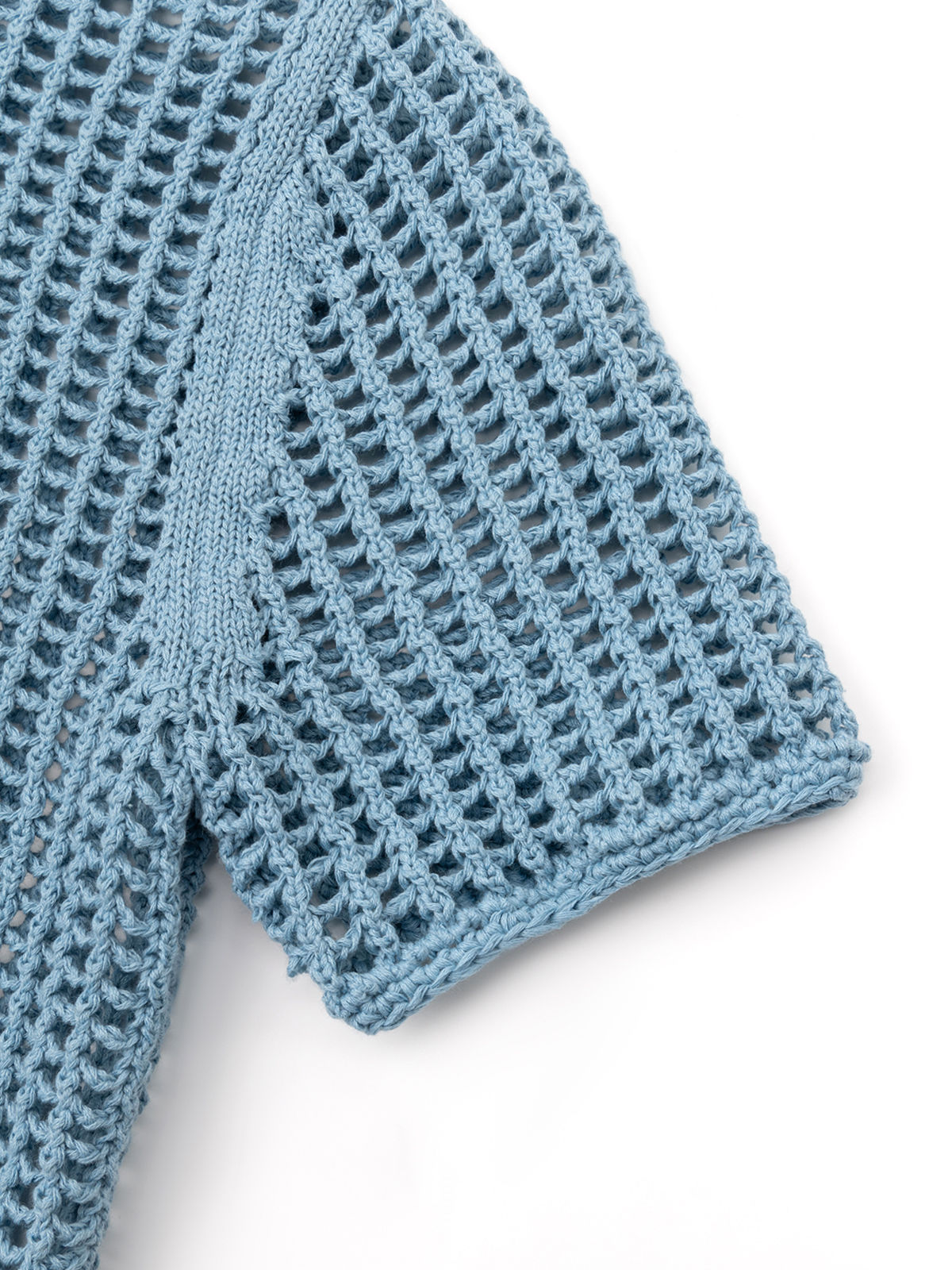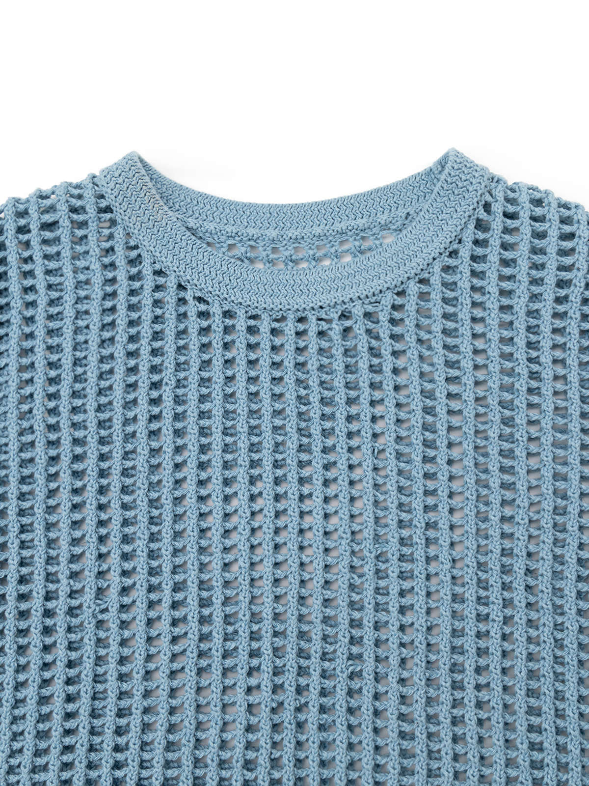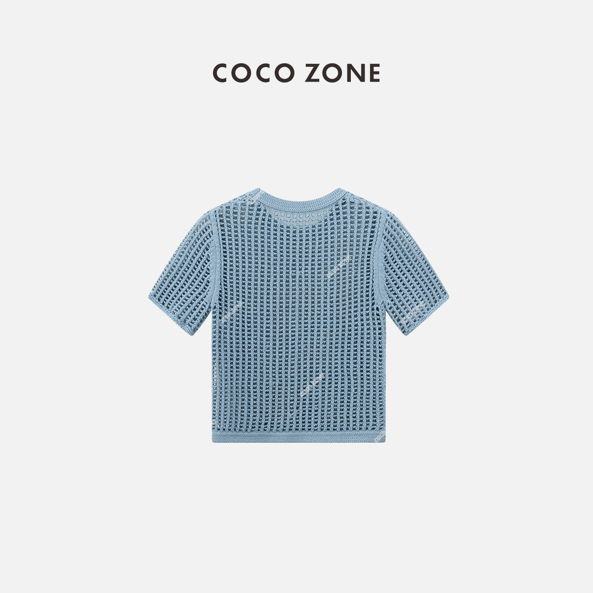 COCO ZONE“水蓝釉”夏季时尚镂空圆领针织衫简约修身短袖套头上衣CC2B0734