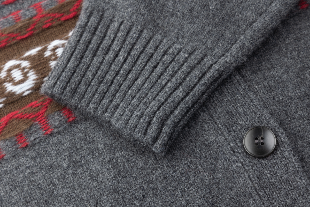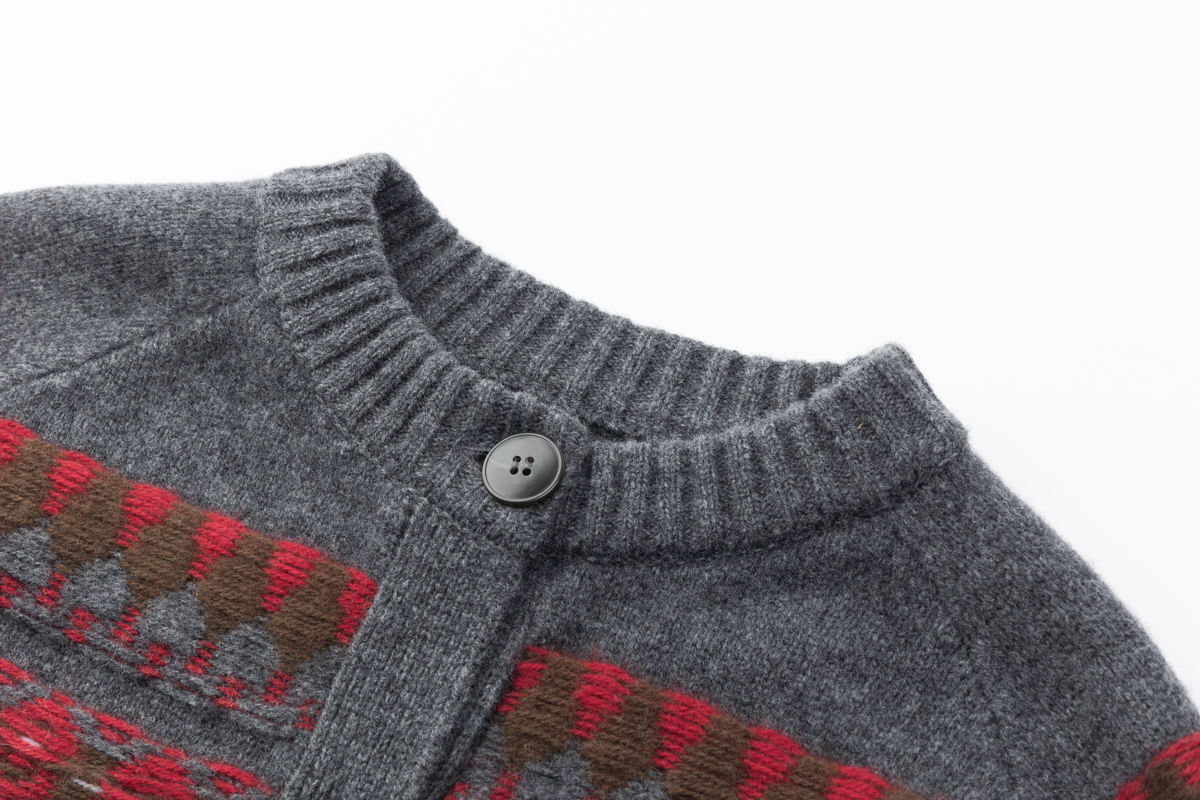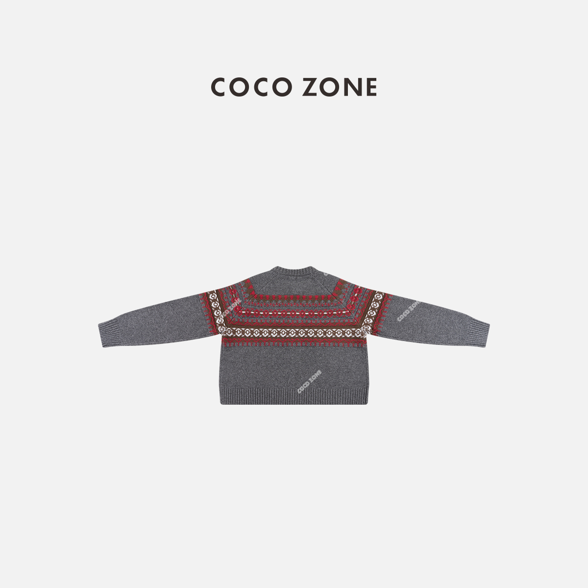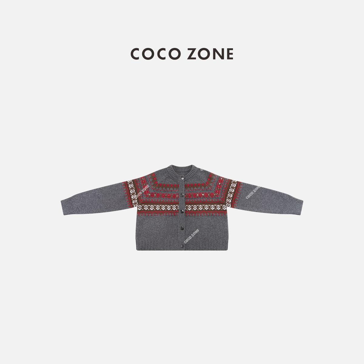 COCO ZONE 100绵羊毛慵懒风拼色圆领针织开衫CC1D2518