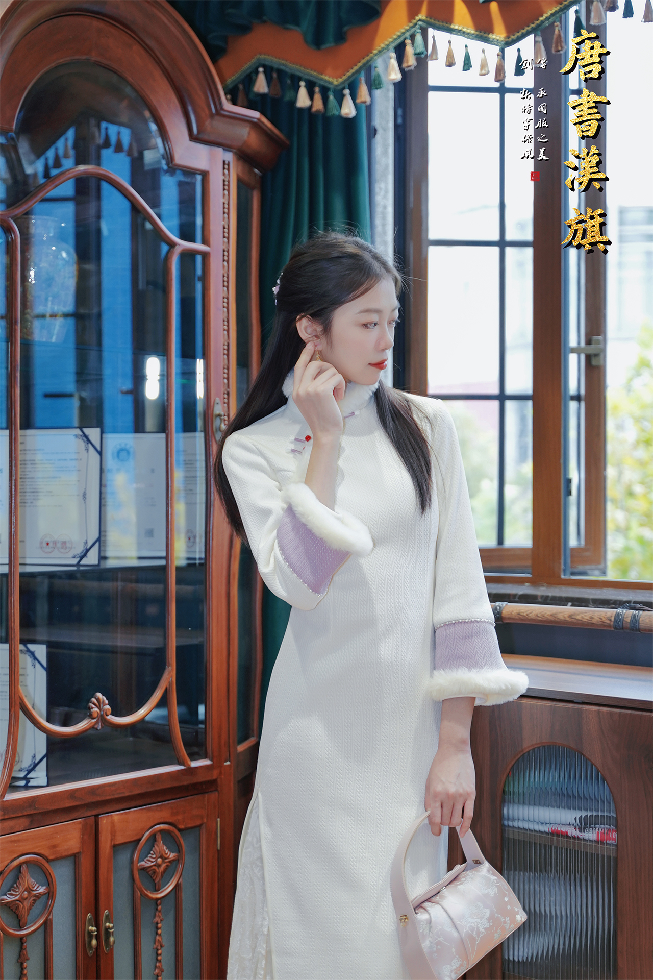 【晴雪芳踪】立领斜襟精致盘扣的中式韵味,搭配倒大袖低开衩版型领口/袖口拼接毛绒边,内里加绒加厚,兼顾温度与柔美感
