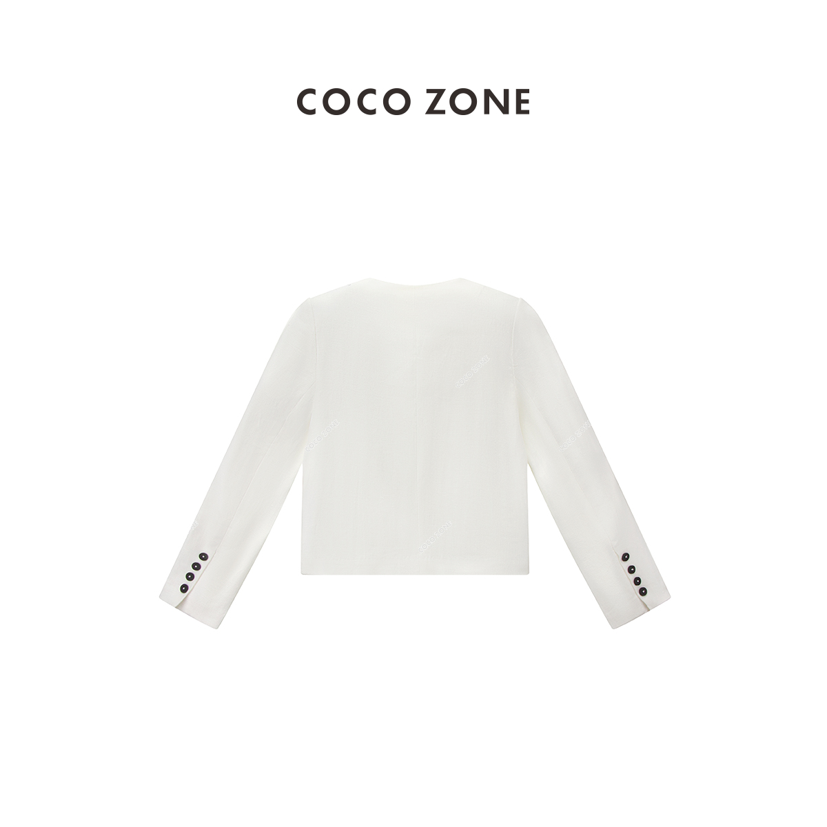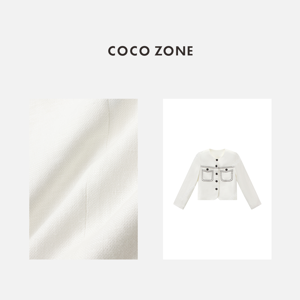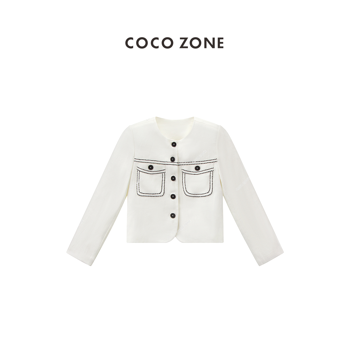 COCO ZONE2024‘白月光’高级感圆领明线装饰外套百搭长袖上衣CC1B0760