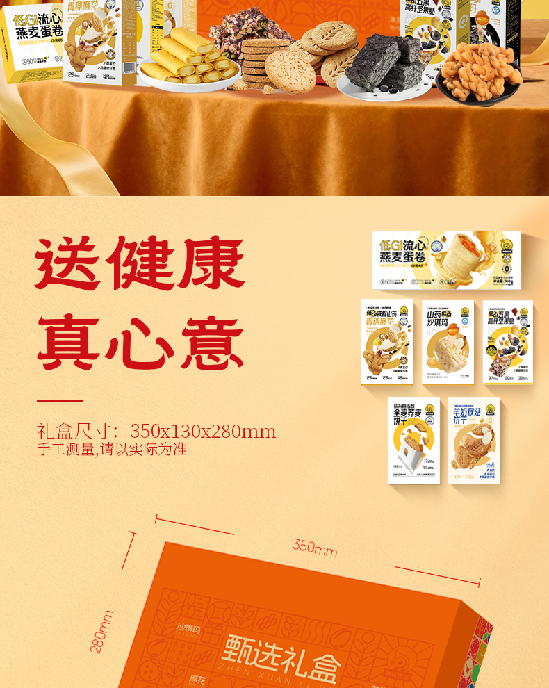 神探伍伍甄选礼盒908g(低GI全麦荞麦饼干192g 低GI流心燕麦蛋卷150g 低GI五黑高纤坚果脆104g 低GI五黑沙琪玛150g 低GI铁棍山药青稞麻花120g 羊奶猴菇饼干192g)