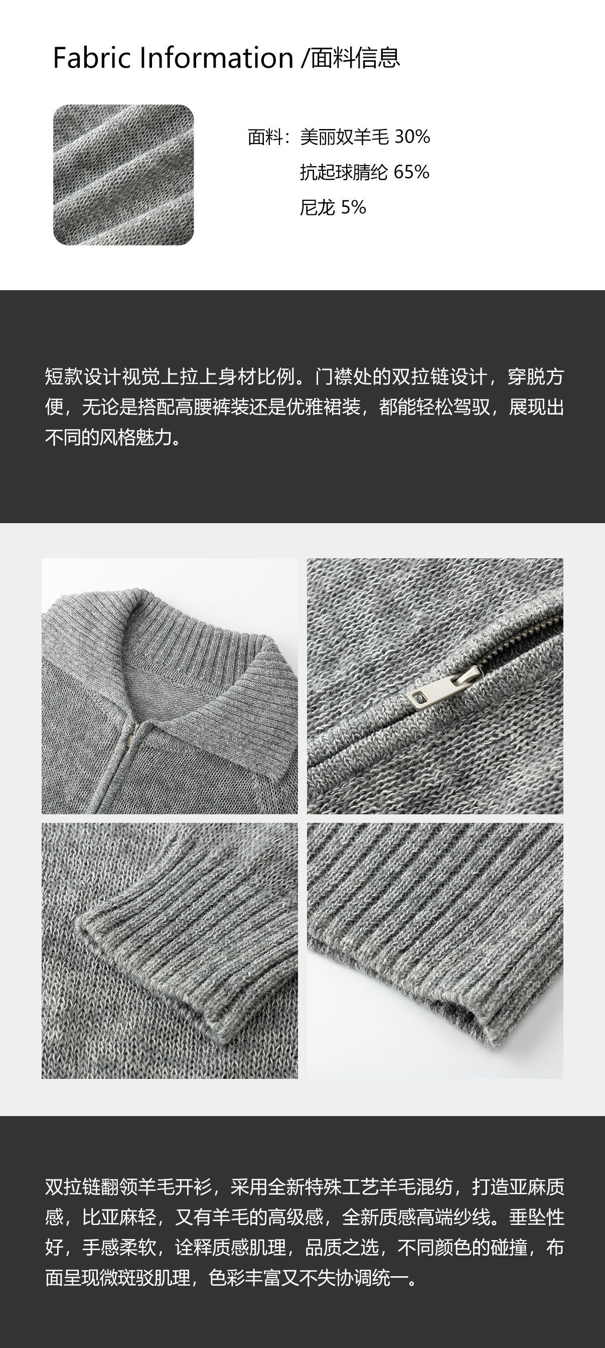 COCO ZONE 刘一一【美丽奴羊毛混纺】双拉链修身毛织上衣CD2A1466