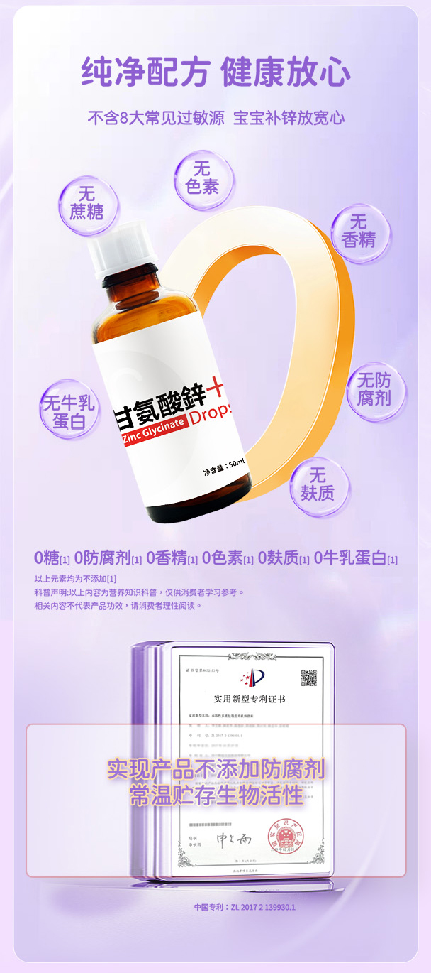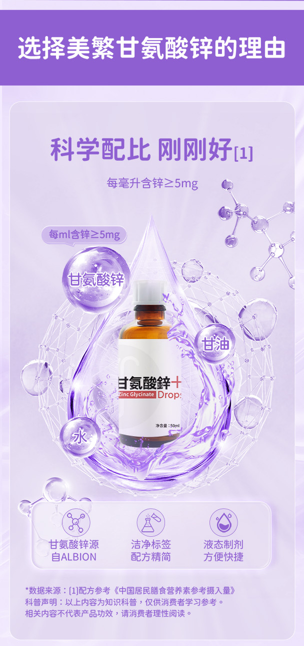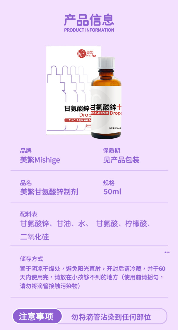 美繁甘氨酸螯合锌滴剂锌含量5mg/ml