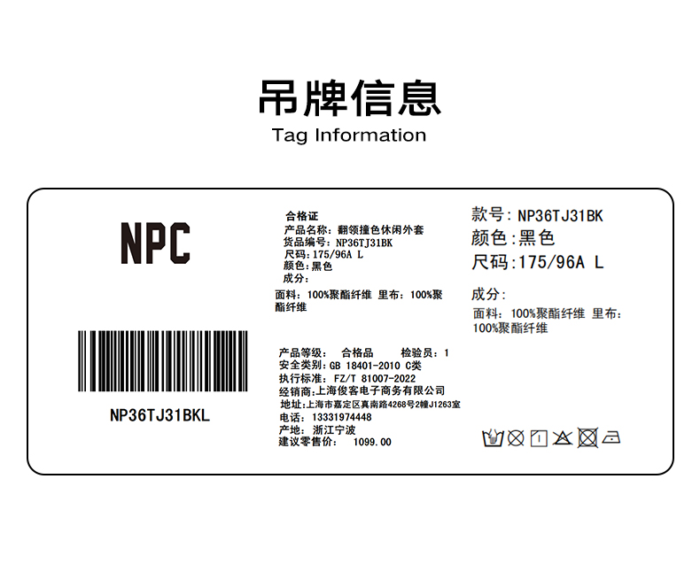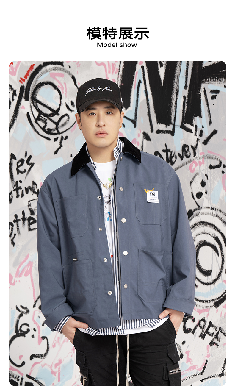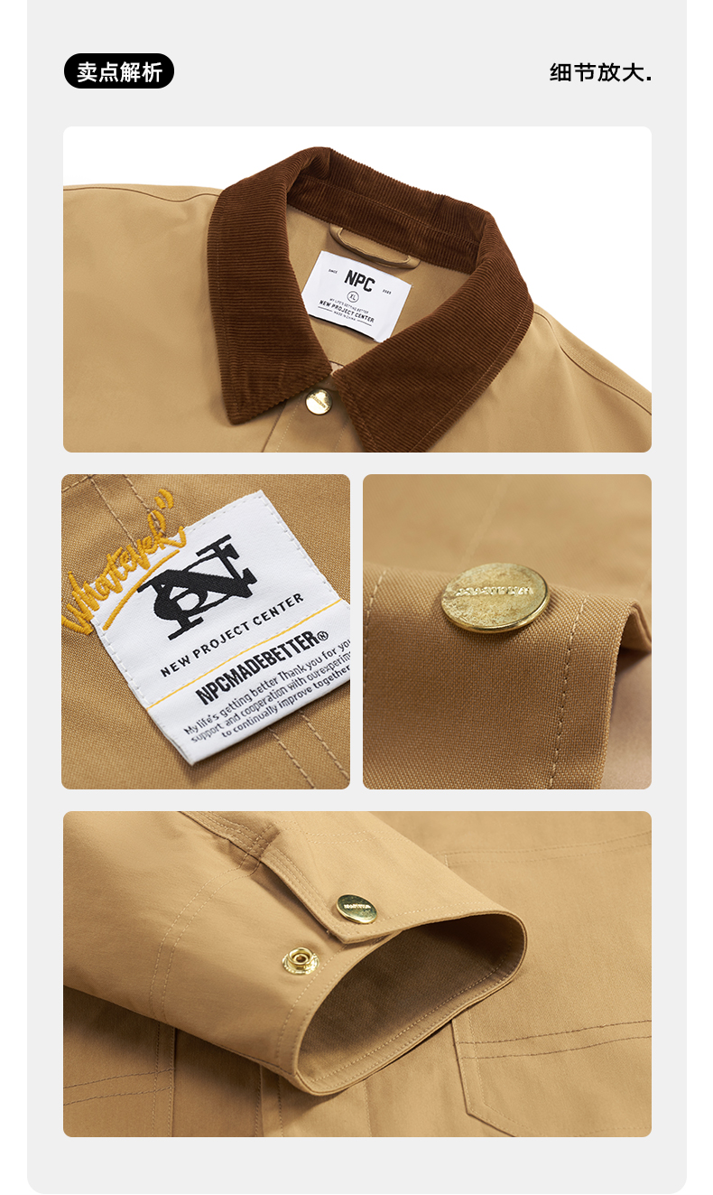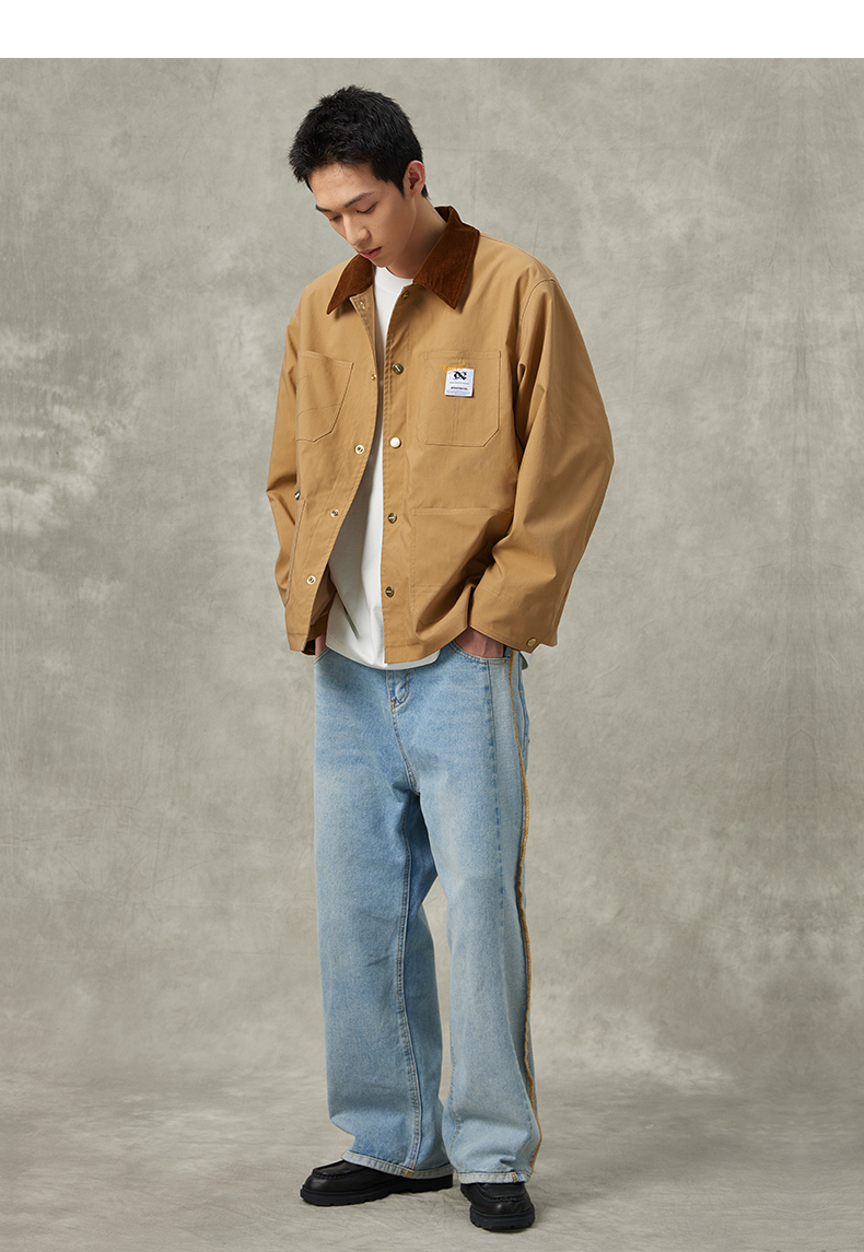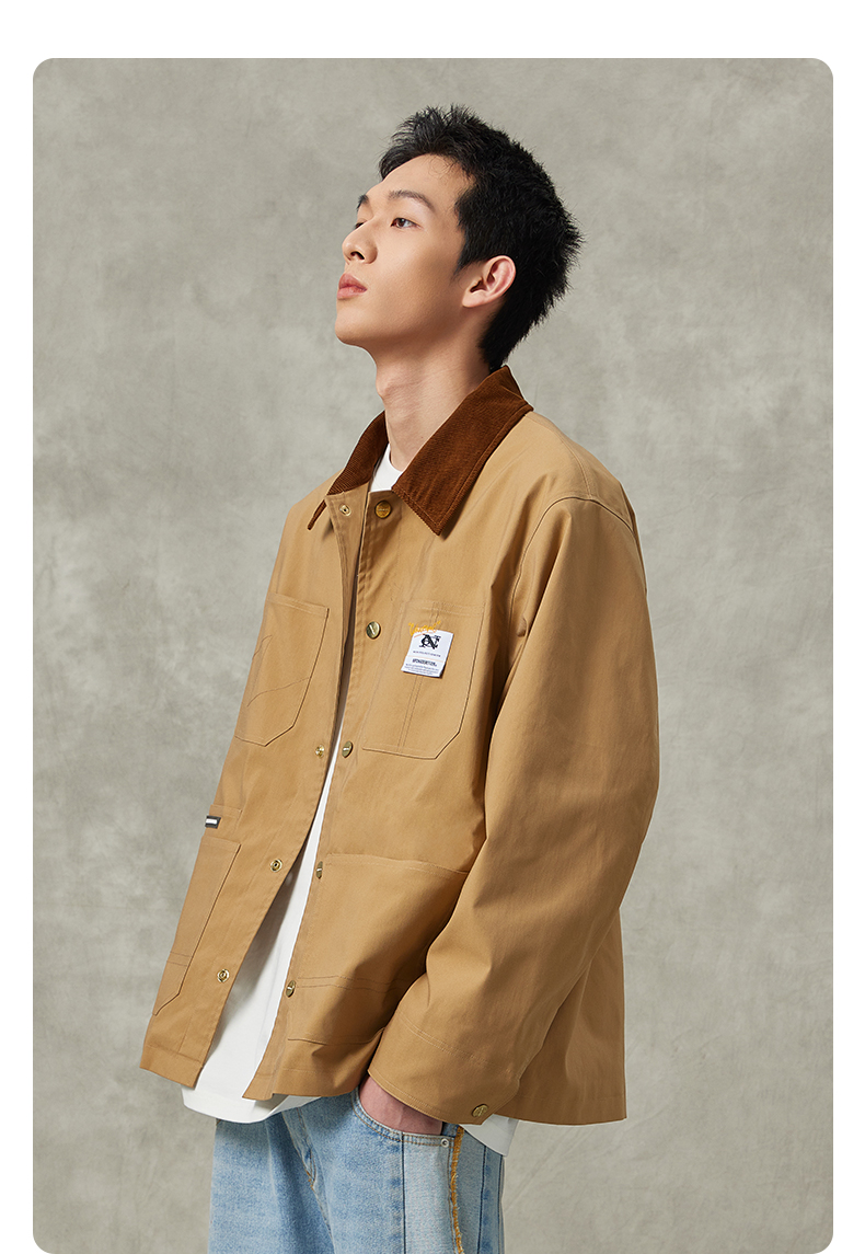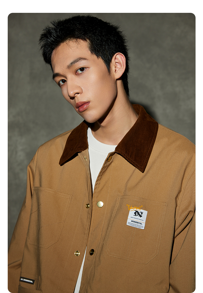 NPC潮牌灯芯绒翻领撞色外套复古工装秋季情侣夹克外套NP36TJ31